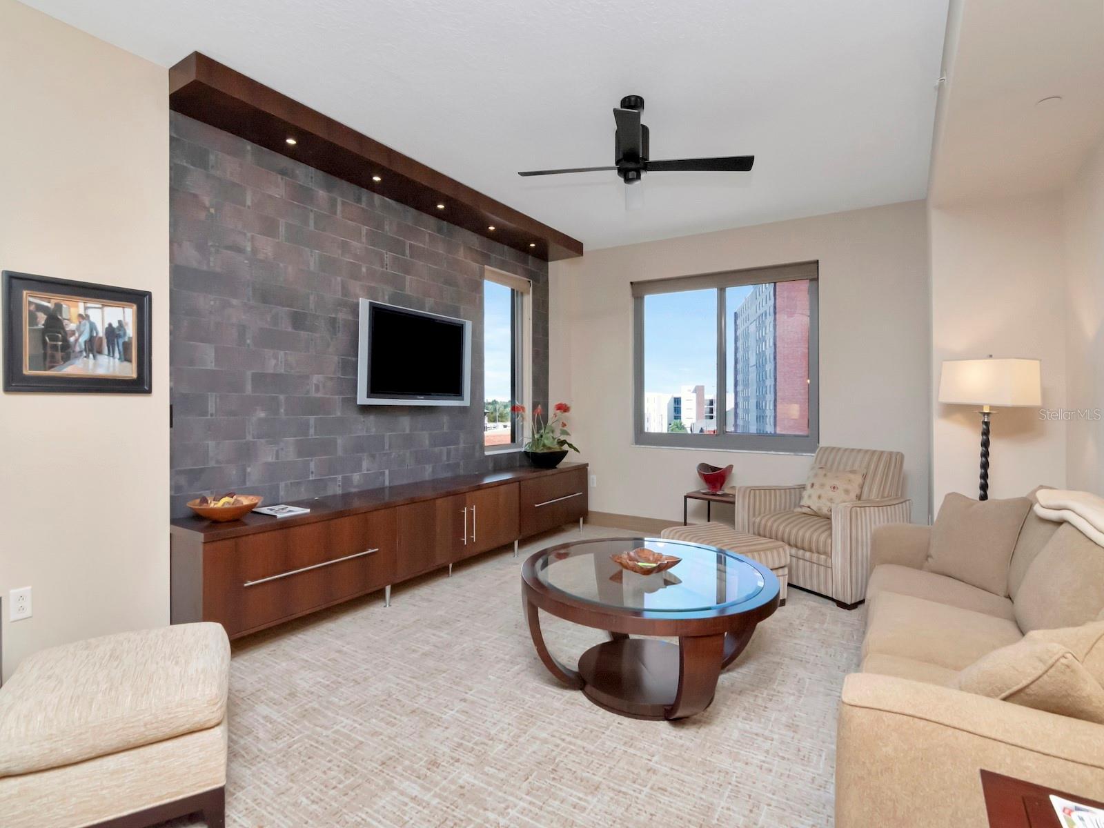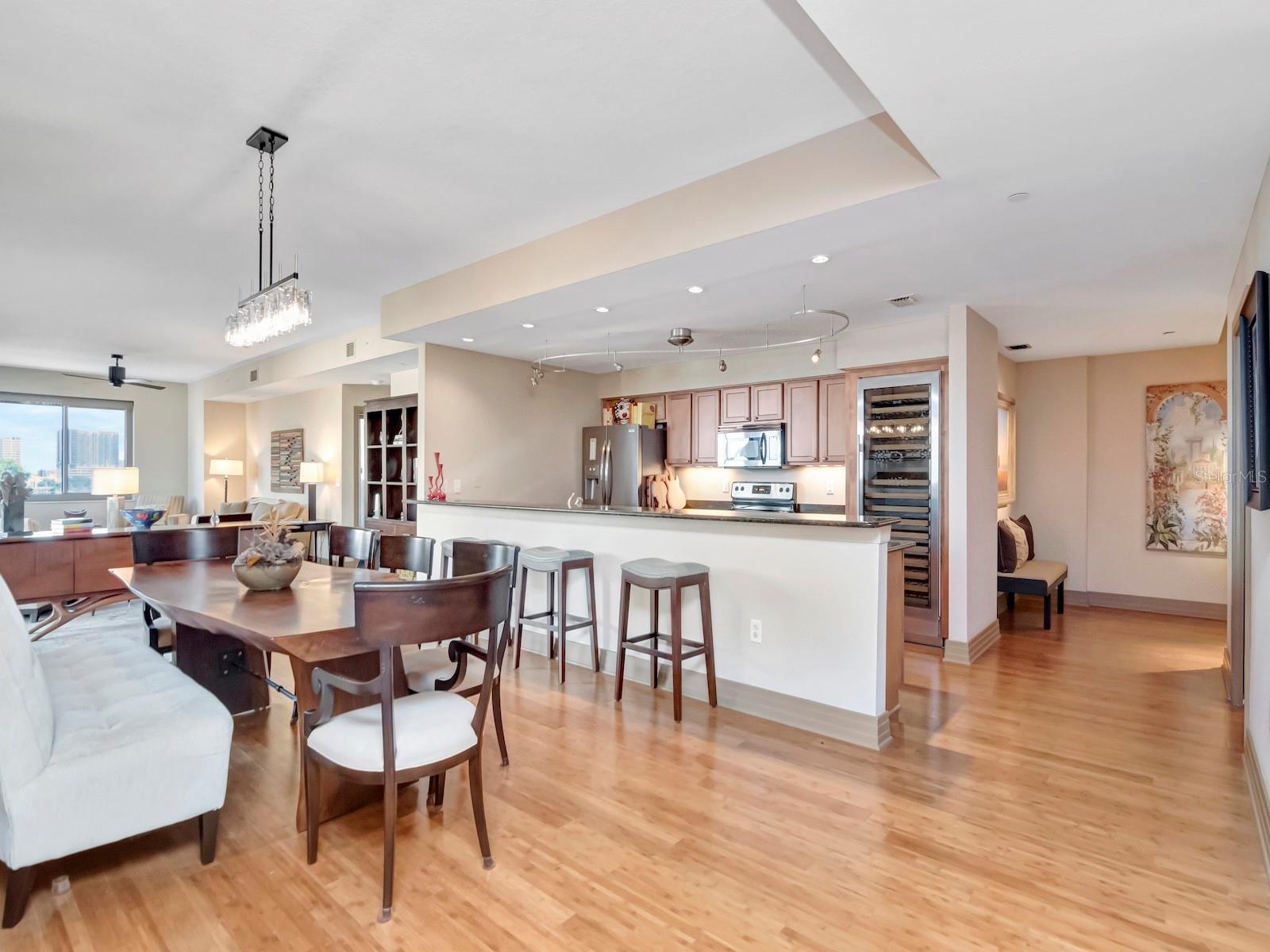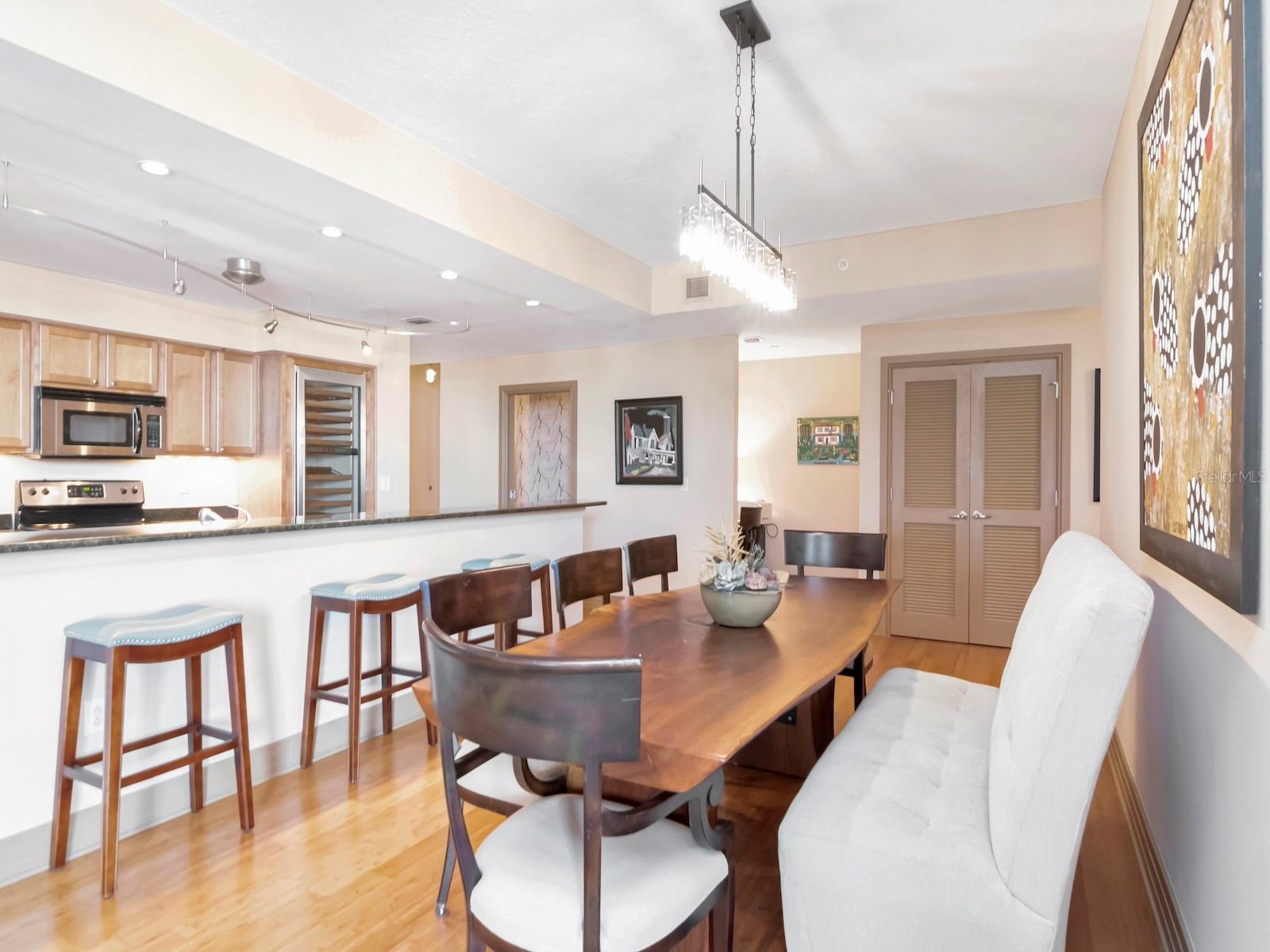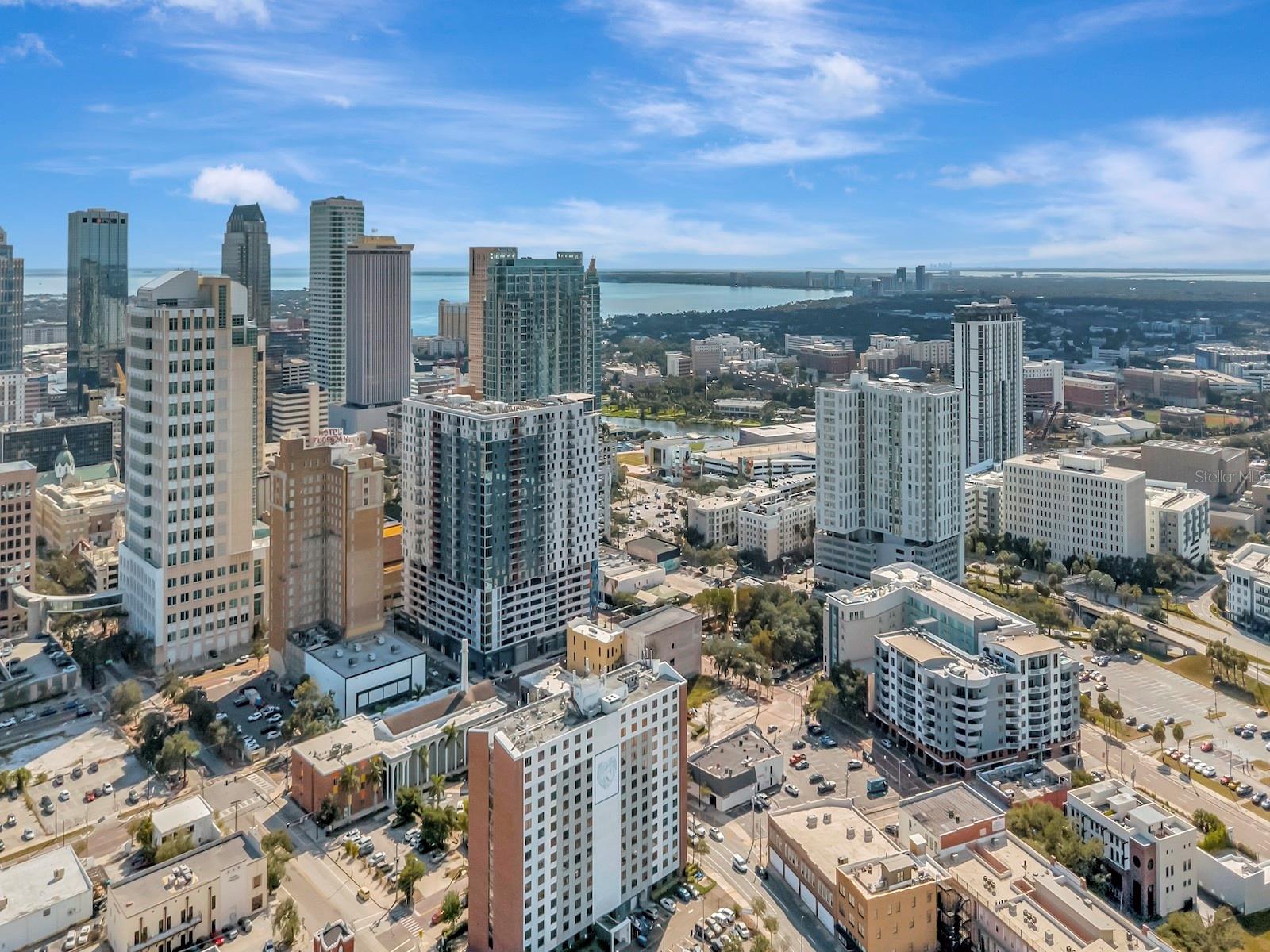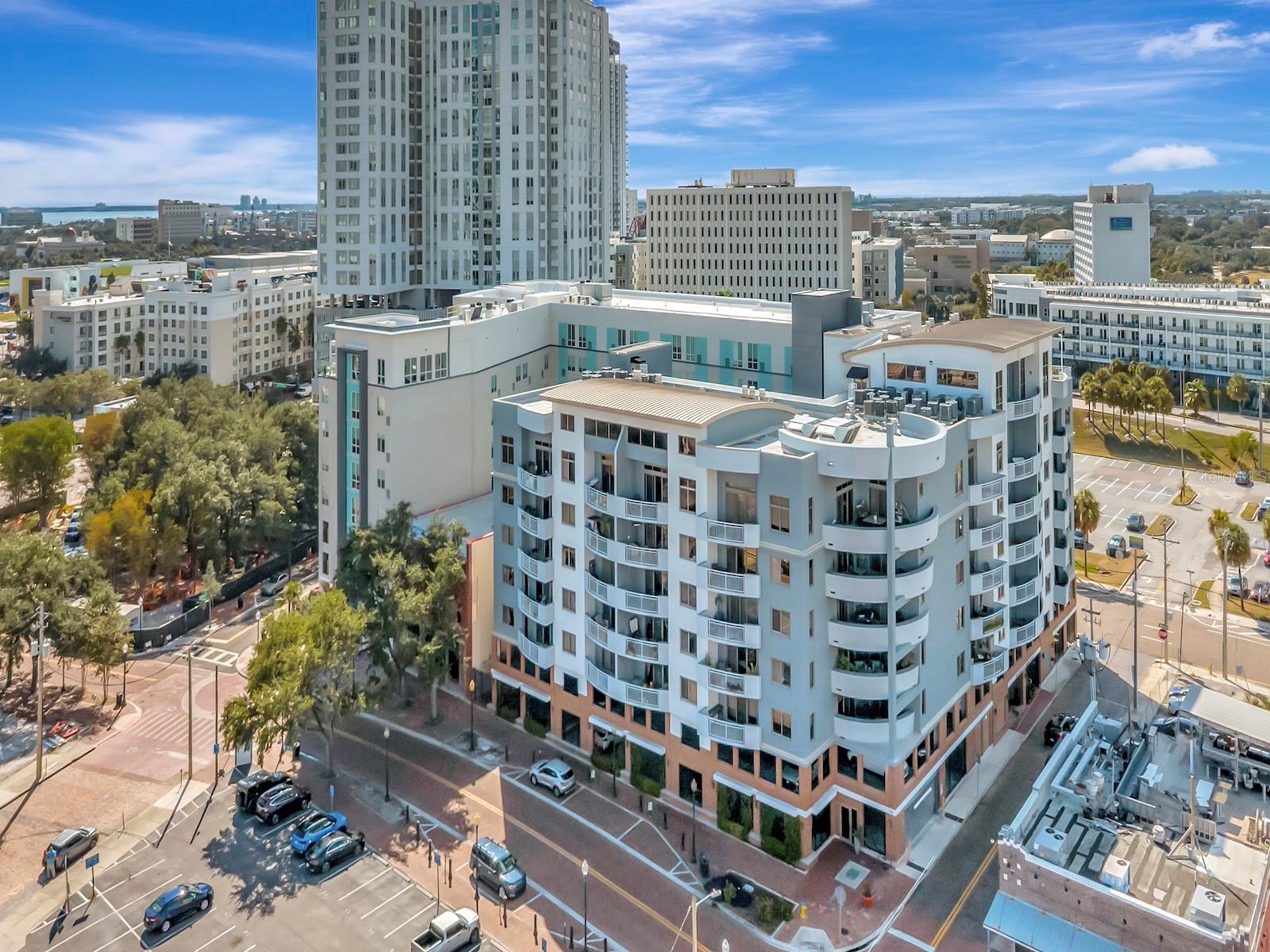 Welcome to The Residences of Franklin Street - considered one of the special gems of downtown Tampa. Experience contemporary urban living in this beautifully maintained residence with a thoughtful open floor plan and refined finishes throughout. Hardwood bamboo flooring flows through the main living areas, complemented by neutral tones and abundant natural light. The kitchen features granite counters, stainless steel appliances including a French door refrigerator, a Sub-Zero wine fridge with 78-bottle capacity, and a convenient breakfast bar—perfect for casual dining or entertaining. A sizeable foyer welcomes you into the home, where you will also find a tasteful powder room with a custom vanity and mosaic tile accent wall. The spacious living and dining areas open to a balcony with north and east views, creating an inviting space for gatherings. An office nook and in-unit laundry add to the home’s functionality. The owners’ suite provides a serene retreat with a private east-facing balcony, blackout window treatments, and an expansive walk-in closet. The primary bath features a marble double vanity, deep soaking tub, a walk-in shower tiled to the ceiling, and a separate WC. The large secondary bedroom offers an ensuite bath, linen closet, and balcony access. This gently lived-in home has been lovingly maintained by its original owners. Two premium parking spaces and a storage unit are included. Residents enjoy a newly renovated lobby, secure building access, and a full suite of amenities: an 8th-floor fitness center, rooftop pool and lounge area, and a welcoming community room with floor-to-ceiling windows and a full kitchen. Ideally located just a short distance from 3 Michelin-starred restaurants—Rocca, Ebbe, and Kosen—as well as the Arts District, Riverwalk, Straz Center, Tampa Museum of Art, Armature Works and so much more. LOW HOA FEES; IN FACT, THE MONTLY FEE DECREASED FROM 2025! Convenient guest parking is available on Franklin St (15-minute limit) and a nearby loading zone on Royal St offers up to one hour of free parking.