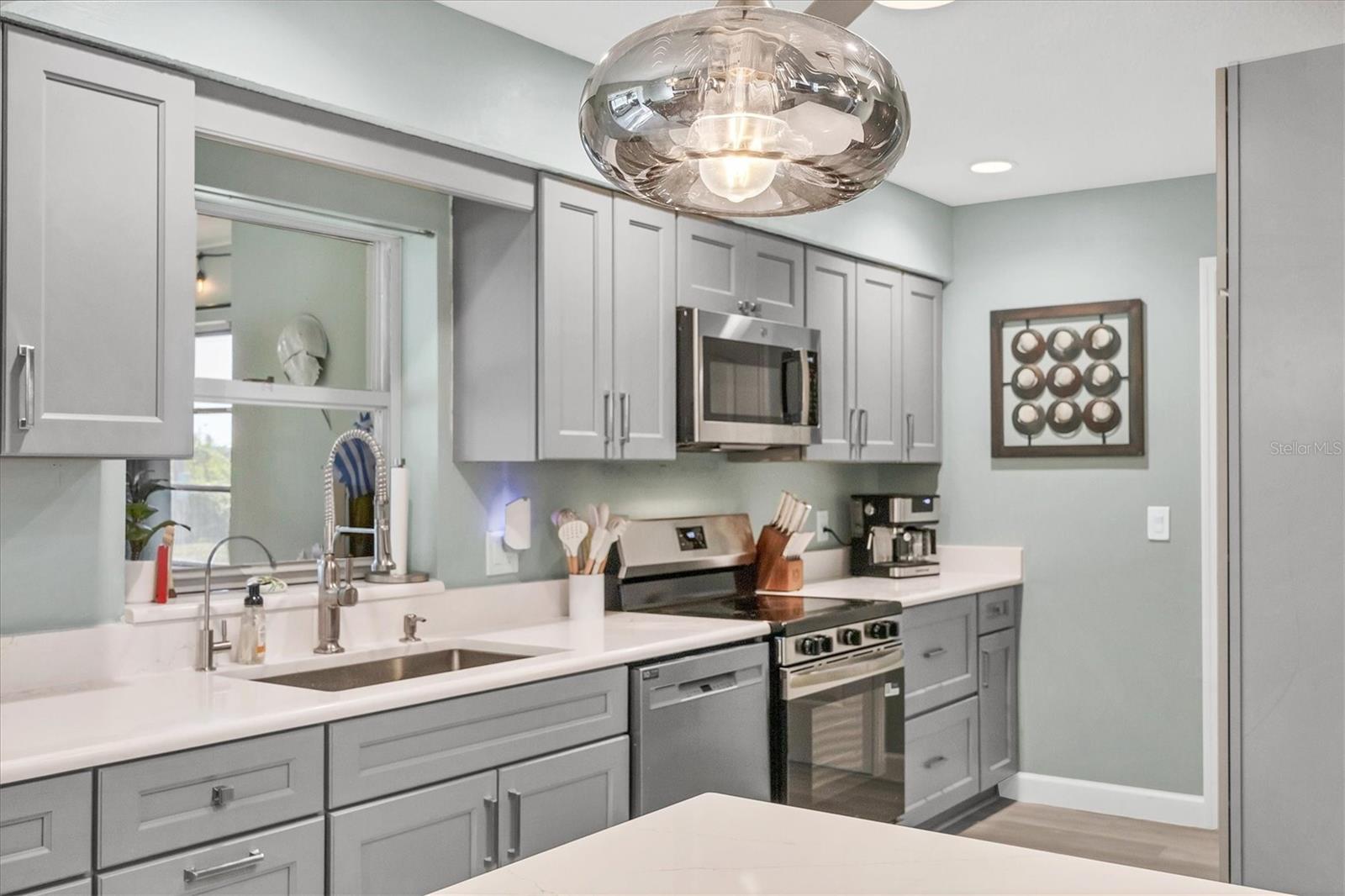 Move-in ready, 3 bedroom, 2 bath East Englewood home in the highly desired Flood Zone X — you stay high and dry!new roof, new AC, LVP floors, NO flood insurance, quartz kitchen tops, pantry, and a clean bright feel. This home is bright, clean, and loved. And here is the big bonus: the lot next door is also for sale, giving you close to a ½ acre total. Need more yard? Want room for a shop? Want a plan for the future? You can have it. A special price is offered when the lot is bought with the home. Plus, you get great privacy with no neighbors on the adjacent lots. You’ll enjoy peace of mind with new power (2023), new AC (2023), new roof (2023), hurricane-rated overhead garage door, and all new interior 2-panel doors with premium trim and casing. Fresh paint and premium LVP floors make the home feel smooth and crisp. Both baths have been updated, clean and fresh! The brand-new kitchen is a standout. You get soft-close cabinet doors and drawers, a kitchen pantry, big pull-out drawers, pull-out trash bins, deep kitchen sink, and premium quartz tops that shine. New stainless steel appliances finish it off. The eat-up bar opens to the dining and living area for a nice easy flow. The front living room has a sweet bay window. The large family room has a white shiplap ceiling, and the bright dining room has French doors you can keep open or closed. The large indoor laundry room comes with a washer and dryer. Outside features: • Outdoor shower • 1-car garage with large storage spot and enclosed storage closet • Fruit trees – lemon, olive, banana, and avocado • Clean yard with room to spread out • Side and back privacy with no homes close by Close to Gulf beaches, fun eats, golf, shops, and the Myakka State Forest, with miles of walk paths and wildlife. Notes: • Laundry room freezer does NOT convey. • Water softener/purifier does not stay. • Lot size in base home price: 10, 000 sq ft (80' x 125') • Add the lot next door for 20, 000 sq ft total (160' x 125') • Extra lot info: 11089 Euler Ave, Englewood FL 34224 — $21, 900