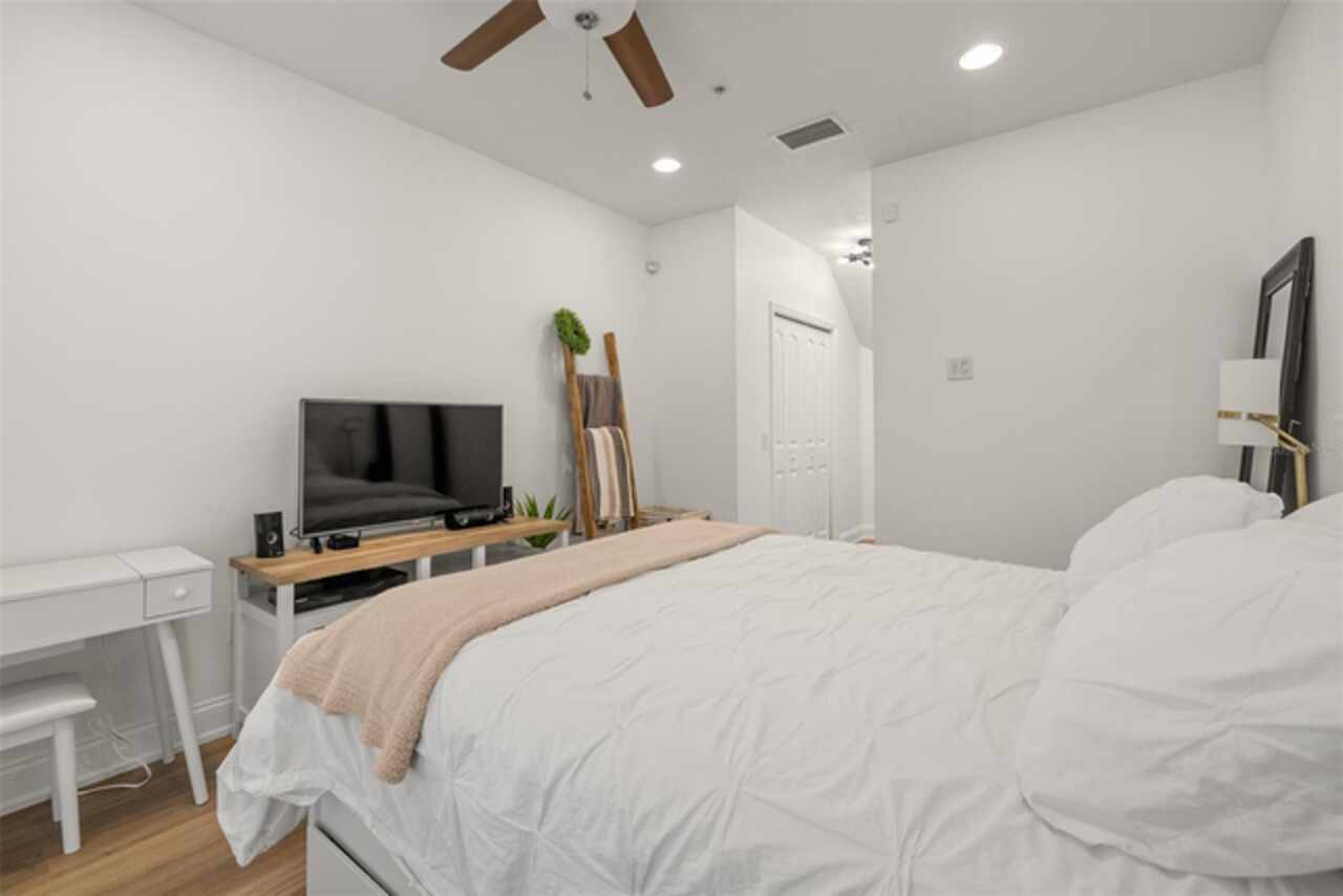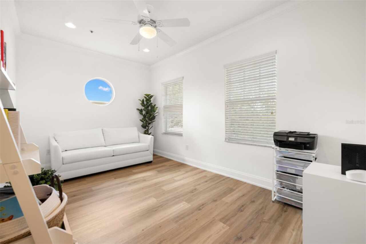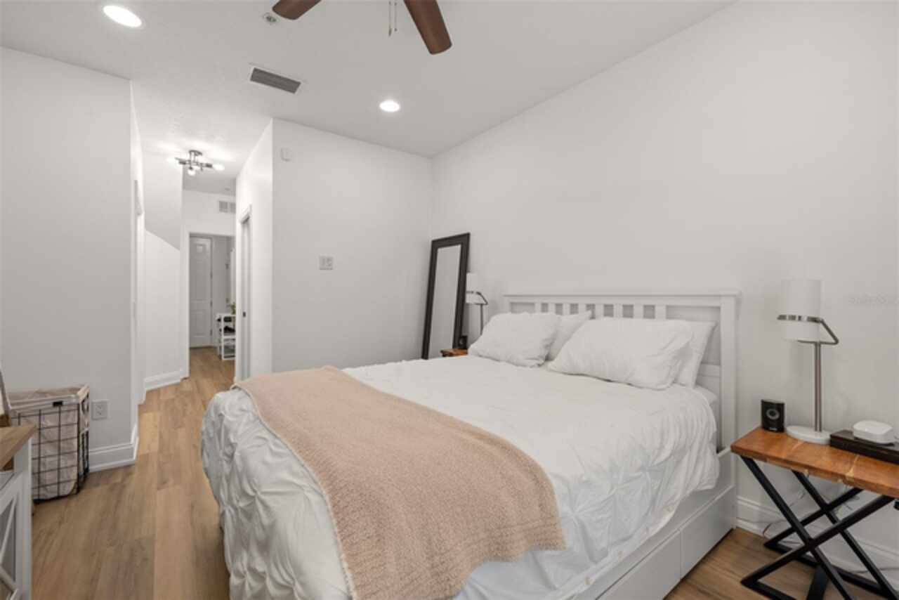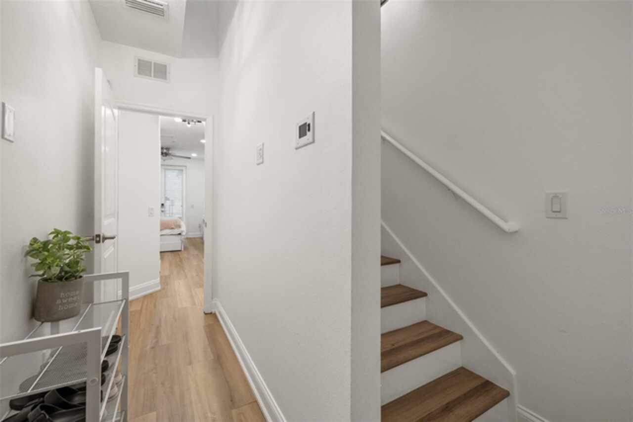 LOCATION!!! UPDATED CORNER UNIT NORTH HYDE PARK TOWNHOME near downtown Tampa and convenient to Tampa International Airport, Riverwalk and Armature Works. Enjoy close proximity to dazzling, trendy downtown Tampa while enjoying home life in a residential neighborhood close by. This 3-bedroom, 3.5-bath home features a modern interior with gorgeous luxury vinyl flooring and stainless steel appliances. The ground floor consists of a 2-car tandem garage and a guest bedroom that would also make an ideal office space, with its own bath nearby. The second floor offers an open-concept layout, combining the kitchen, dining, and living areas with a balcony for quiet time with a morning cup of coffee or an adult beverage at the end of a busy day. This large open space with high ceilings makes a very attractive area for relaxing or entertaining. A half bath is available on this floor as well as a laundry room just off the kitchen. The third floor features a spacious primary suite with a walk-in closet, dual-sink bath, tub, and private balcony. The other bedroom on this floor also has a walk-in closet and its own bathroom. The sale includes a Vivint security system with 4 cameras, providing added value. The location in Flood Zone X adds to the affordability of this well-priced property. Schedule your private showing today!