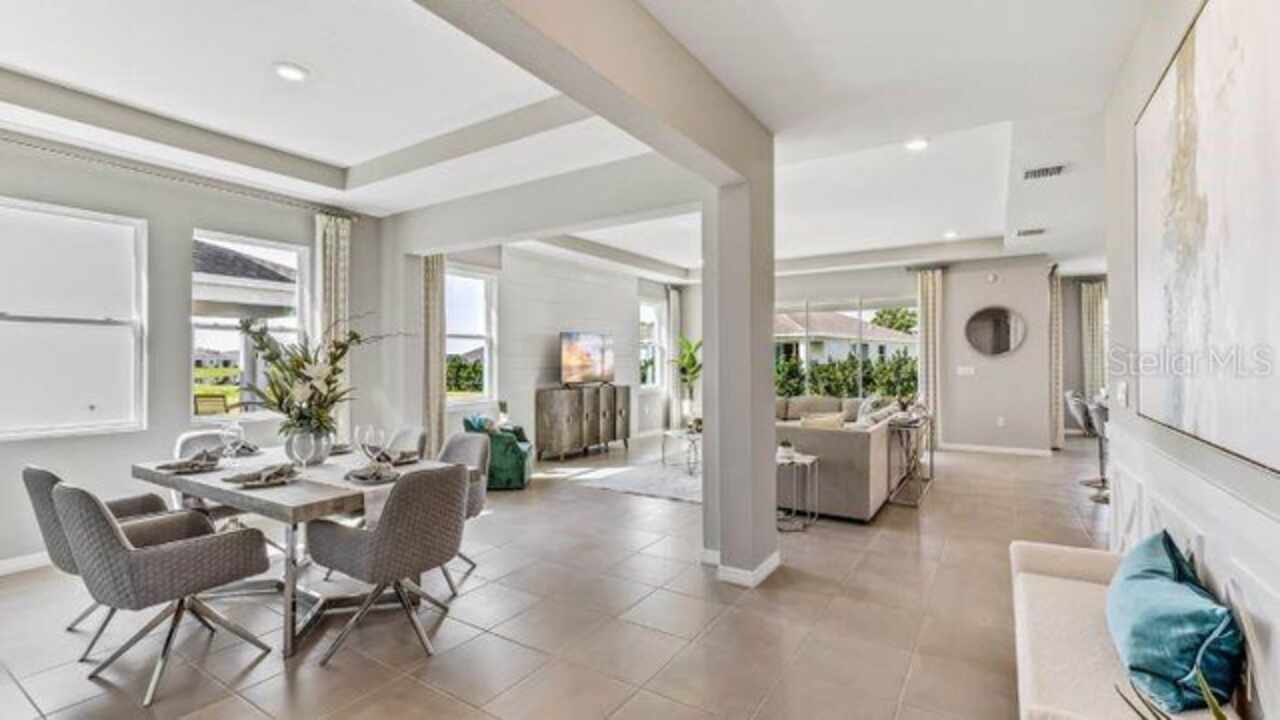 One or more photo(s) has been virtually staged. Under Construction. ALL CLOSING COSTS PAID & SPECIAL INTEREST RATES WITH OUR PREFERRED LENDER NOW UNTIL SEPTEMBER 28TH. This one-story, all concrete block constructed home has a truly open concept plan, featuring a large great room, separate dining room, and well-appointed kitchen with dining area, all overlooking a covered lanai. This single-story plan features two bedrooms at the front of the home which shares a jack-and-jill full bathroom, as well as a multi-gen living space past the powder bath and laundry room. The owner's suite is located at the back of the home for privacy, offering beautiful views of the backyard. Pictures, photographs, colors, features, and sizes are for illustration purposes only and will vary from the homes as built. Home and community information including pricing included features, terms, availability, and amenities are subject to change and prior sale at any time without notice or obligation.
