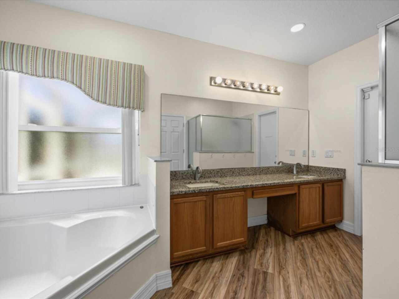 One or more photo(s) has been virtually staged. This upgraded 6-bedroom, 4-bathroom pool home in Kissimmee’s Liberty Village offers the perfect blend of luxury living, modern updates, and investment potential. With a resurfaced pool (July 2025), newer roof, impact windows, and fresh interior and exterior paint, this property is truly move-in ready. Inside, you’ll find luxury vinyl plank flooring, granite countertops throughout, and upgraded lighting and ceiling fans in every room. The kitchen has been completely reimagined with expanded cabinet storage, a custom buffet, and a Bosch dishwasher, making it both stylish and functional. Tech-savvy buyers will love the Cat 6 hardwired internet in every room, perfect for remote work, streaming, or a smart home setup. With two primary suites—one upstairs and one down—this home is ideal for multi-generational living or as a vacation rental property. Step outside to a screened-in pool with new cage screening, and enjoy peaceful water views at sunrise from the private backyard. The low HOA ($38/month), short-term rental zoning, and proximity to Disney, Universal, shopping, and dining make this a standout opportunity for homeowners and investors alike.
