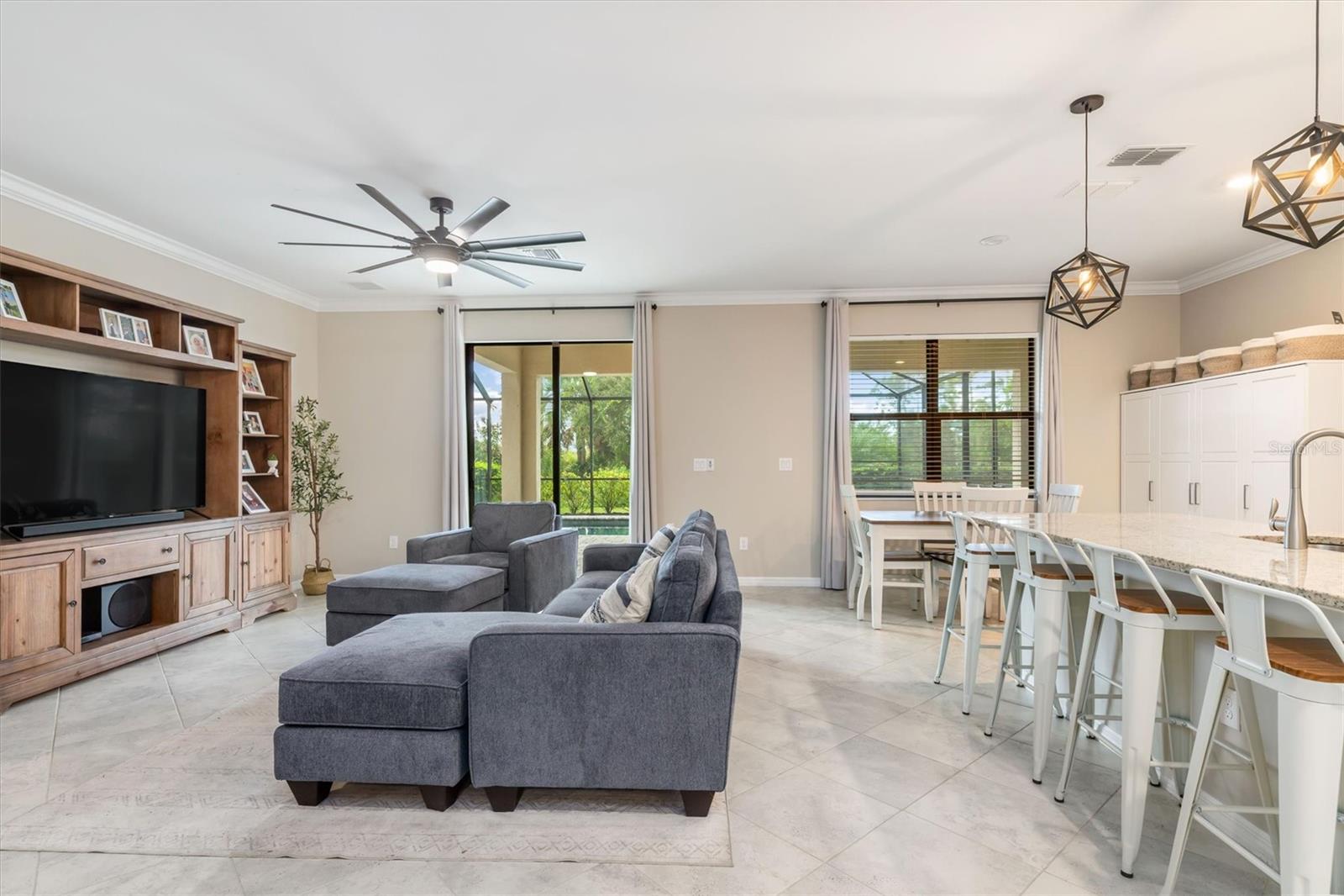 Welcome to the gated community of Tortuga in Wellen Park! Set on a prime lot with a south facing heated pool and spa, this home has a lot to offer. Spacious and roomy, this newer build has 4 bedrooms plus an office, 3 bathrooms, and a great room and upstairs bonus room. All the right spaces are here to enjoy the Florida lifestyle. Upon entering this fine home you will notice diagonally laid tile on the main living level, crown molding, and an open kitchen area with bar overlooking the living area and bright, sunny, pool. Upstairs you will find a spacious primary suite with walk-in closet and bath with dual vanities and walk-in shower. New luxury vinyl floors grace the second as well. Other notable features include storm shutters, no flood insurance required, child safety fence for the pool and solar panels to assist with your electric bill! Tortuga is a gated, maintenance free community as has a playground and park. The fees include lawn care, fertilization, irrigation water as well as internet! Located within Wellen Park, one of Southwest Florida’s fastest-growing lifestyle communities, this home offers unmatched convenience and charm. Just minutes away, Downtown Wellen features waterfront dining, boutique shopping, live entertainment, and a vibrant community atmosphere. Residents enjoy easy access to miles of biking and walking trails, golf courses, and the new Cool Today Park, spring training home of the Atlanta Braves. Blending natural beauty, modern amenities, and a true sense of neighborhood, Wellen Park is the perfect place to experience Florida living at its finest.
