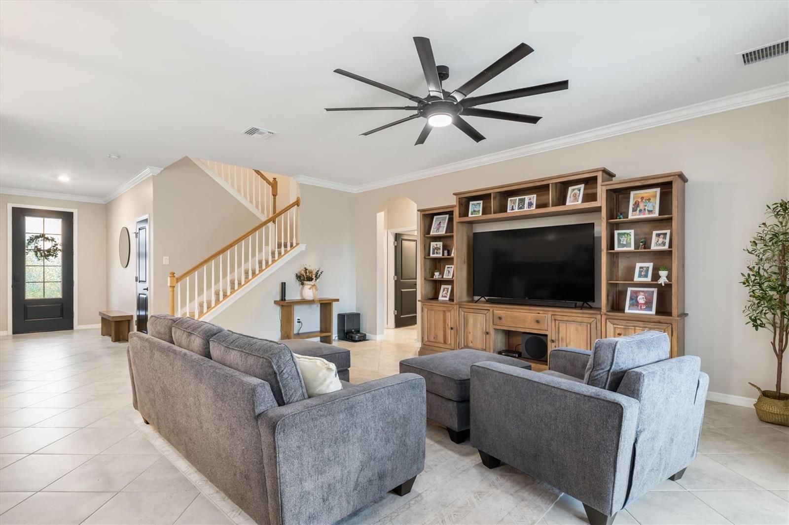 Built-in Features, Ceiling Fans(s), Crown Molding, High Ceilings, Living Room/Dining Room Combo, Thermostat, Walk-In Closet(s), Window Treatments