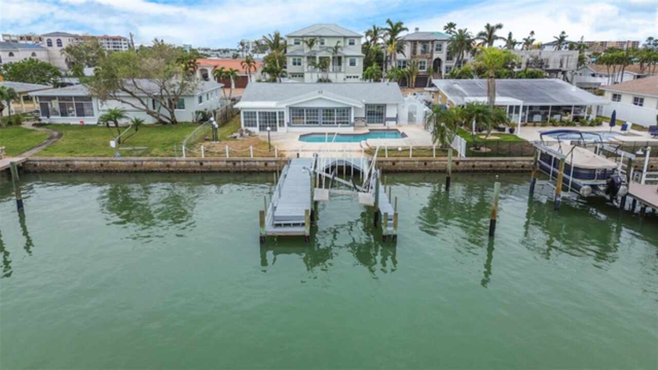 Under contract-accepting backup offers. Your Slice of Paradise Awaits! Welcome to the Isle of Palms, an idyllic Intracoastal neighborhood in Treasure Island, just steps away from the pristine sandy beaches of Treasure Island. This incredible property offers the perfect combination of location, lifestyle, and potential. Nestled on 5th St. East, the highest street in the neighborhood, this home enjoys breathtaking sunrise views over open water and sits on a deep-water lot, perfect for boating enthusiasts. The dock previously accommodated a 40-foot Scarab, offering ample space for your water toys and adventures. The home features a desirable split floor plan, presenting the option to restore its charm or start fresh by building your dream waterfront home or a perfect deep water lot to design your dream home. While the property experienced the rare 100-year storm of Hurricane Helene, its potential is undeniable. Located just minutes from restaurants, entertainment, grocery stores, and more, this property also provides convenient access to the heart of St. Petersburg, making it a perfect blend of tranquility and accessibility. Opportunities like this are rare—don’t let it slip away!