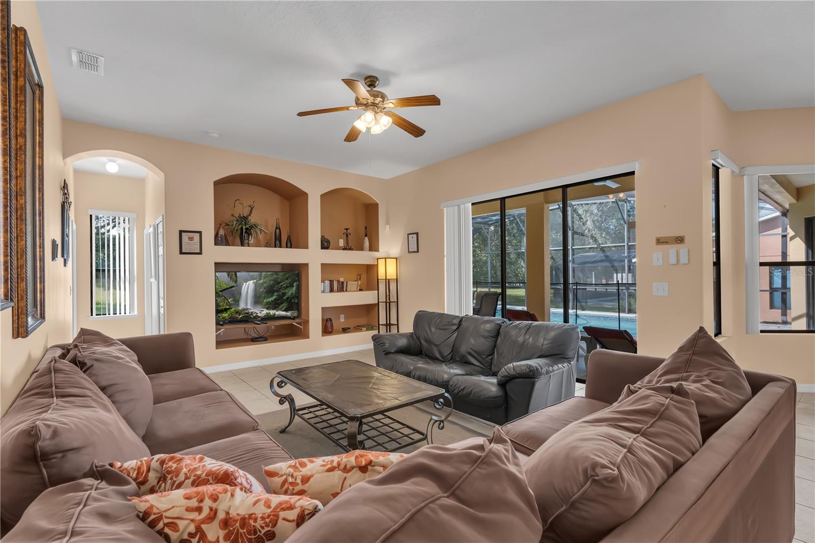 JUST REDUCED Great Property Great Condition, ideal for permanent residence or income producing for investors. Large spacious home with heated and screened pool and spa. The layout of this open floor plan is suited for the investor or making a permanent home for a resident. The location is ideal for access to all major roads and highways and the convenience of multiple shops. Just minutes away from all the major attractions. Licensed for short term rentals should that be the desire of the buyer. 4 bedrooms and a 5th room that can be an office or a bedroom. 3 car garage currently used as a games room with fuzzball and table tennis. The home is fully furnished with the option of the buyer retaining the furnishings by negotiation with seller.