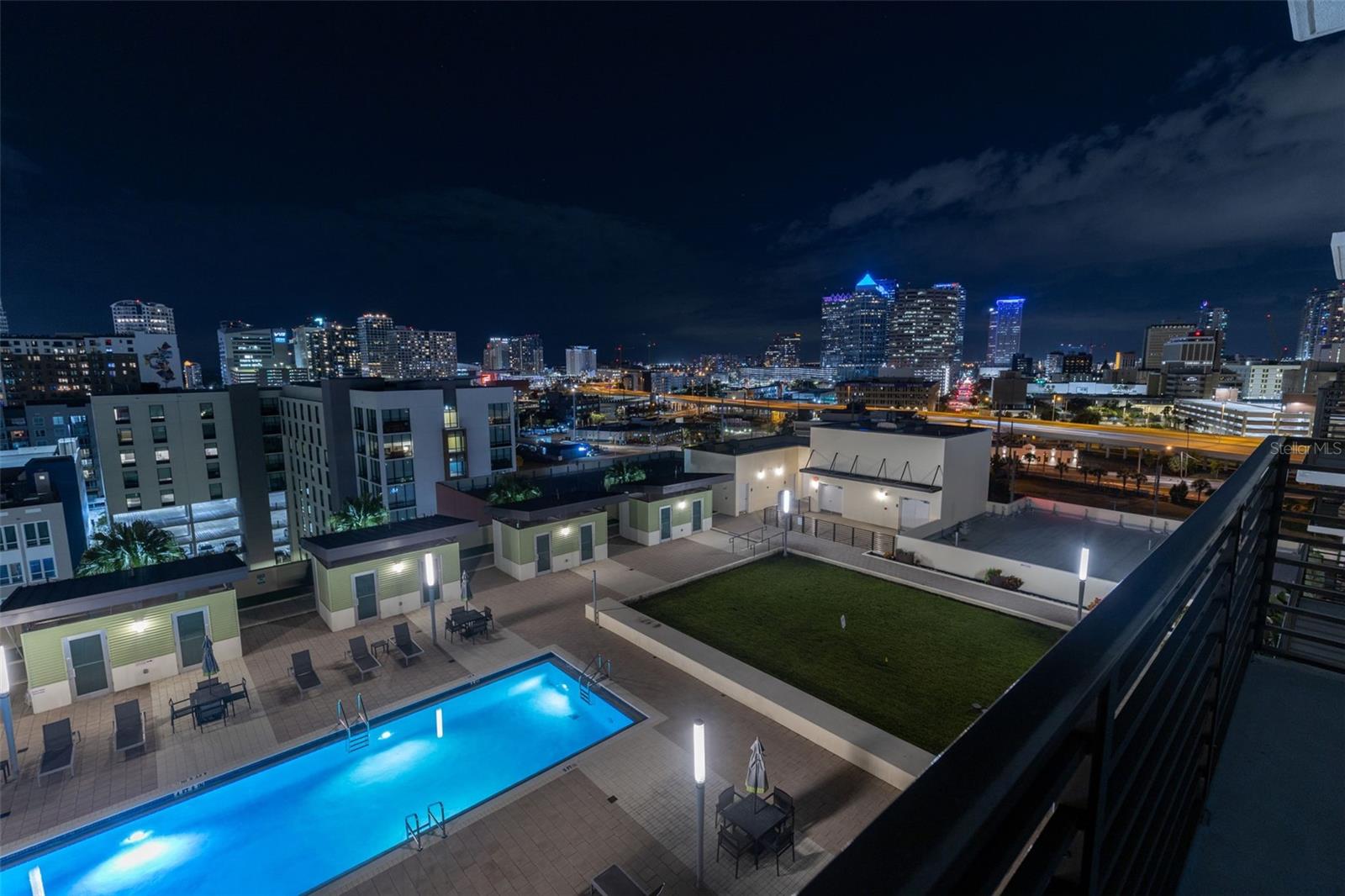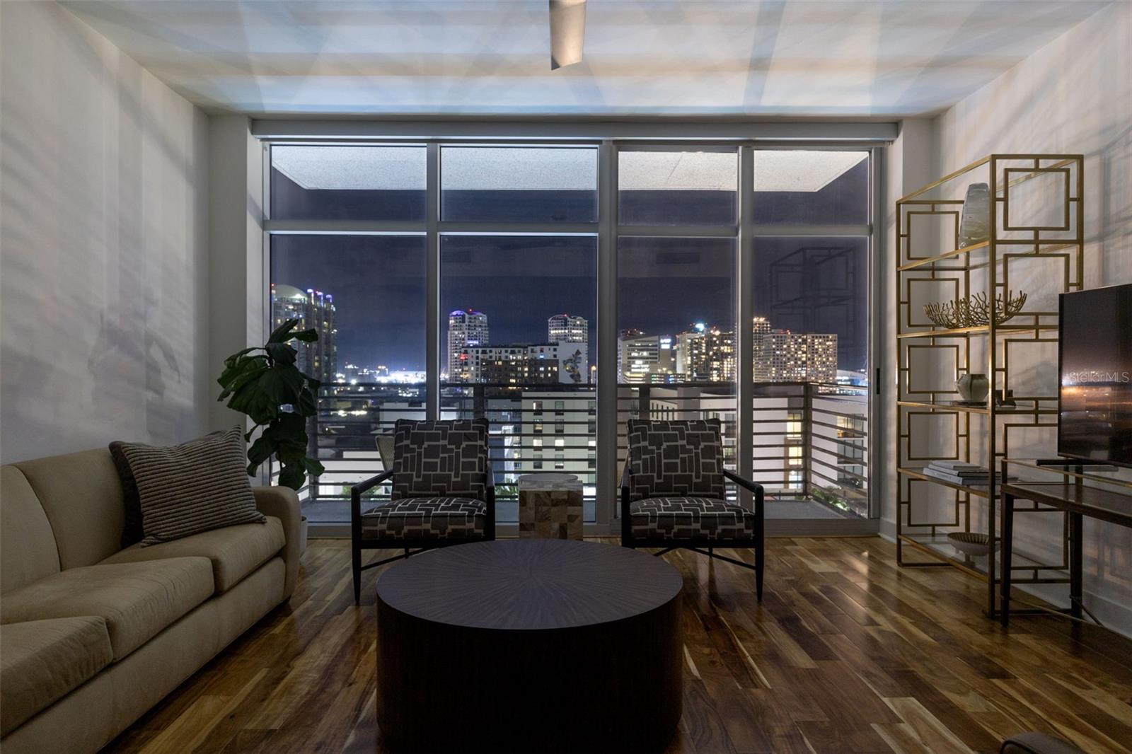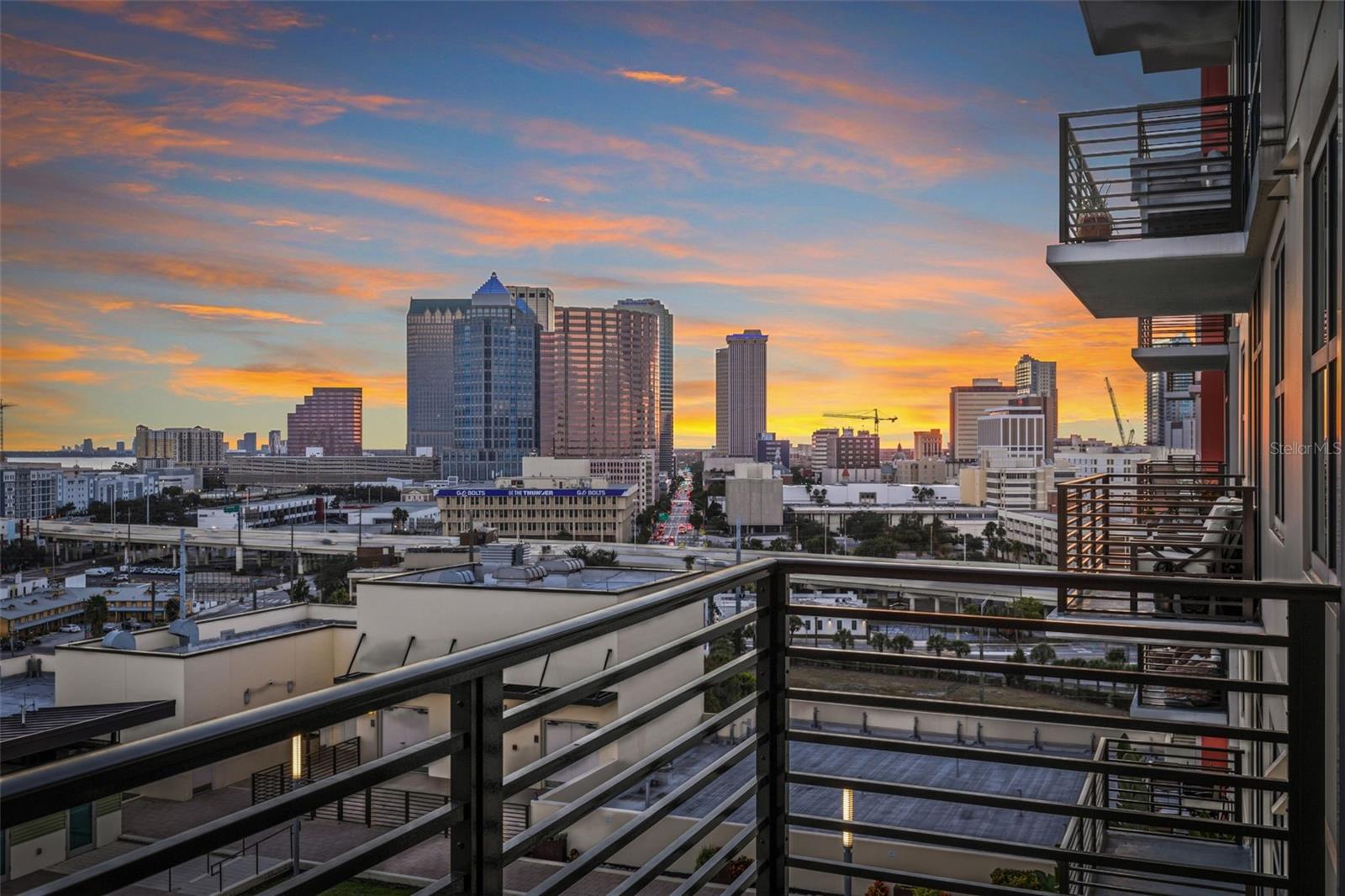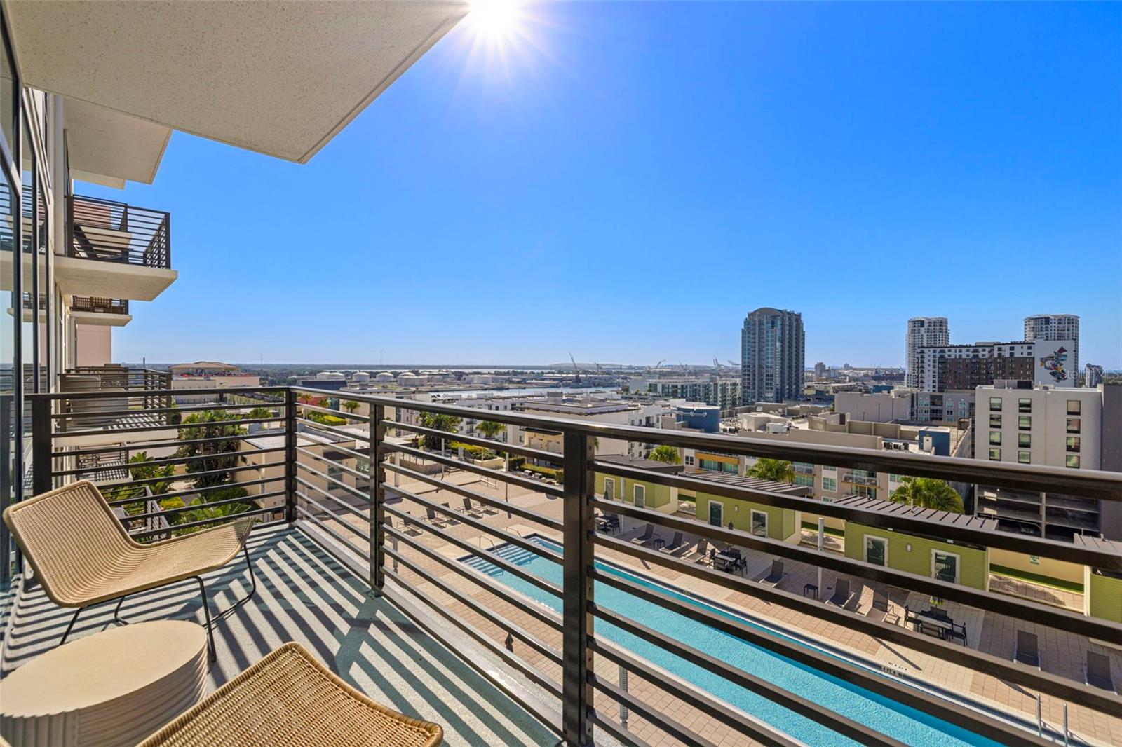 Experience breathtaking city and water views from this modern 2-bedroom, 2-bath residence on the 12th floor in Grand Central at Kennedy. The open-concept layout features a chef-inspired kitchen with Viking appliances, new kitchen pendant lighting, and ample cabinet and counter space that flow seamlessly into the dining and living areas. The Floor-to-ceiling windows fill the home with natural light, and the primary bedroom boasts a full wall of glass showcasing stunning skyline views. Recent owner upgrades include custom California-style closets, electric blackout roller shades, a built-in dresser and shelving, new ceiling fan in the living room, updated kitchen pendant lighting, and fresh interior paint throughout. Residents enjoy resort-style amenities with two rooftop pools, fitness center, clubhouse, outdoor grills, and spa. This unit also includes two side-by-side assigned parking spaces 662 & 663, and an oversized storage locker located in a climate-controlled room. Step outside to vibrant Channelside—just moments from Water Street, Sparkman Wharf, and Tampa’s top dining and entertainment. This unit shows like a model, so schedule your showing before its’ too late!