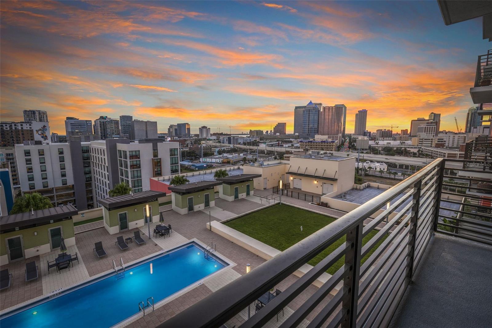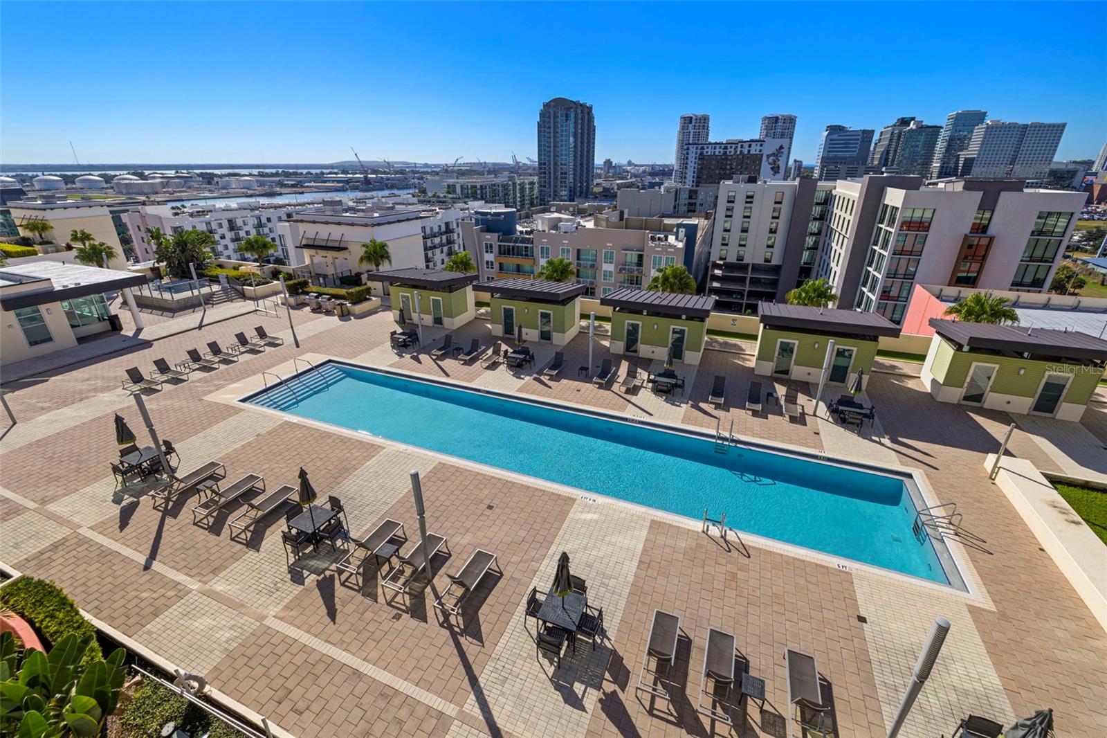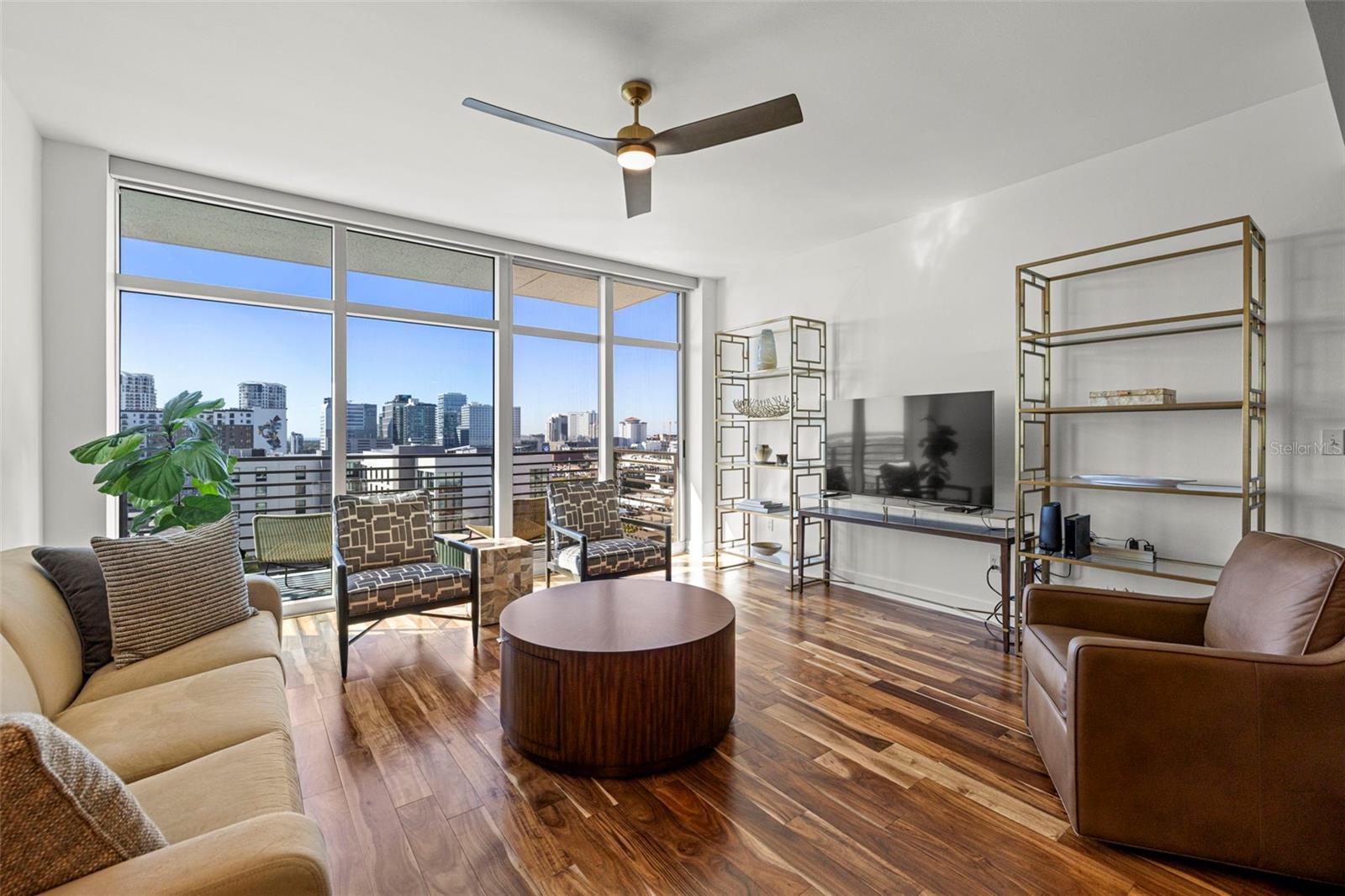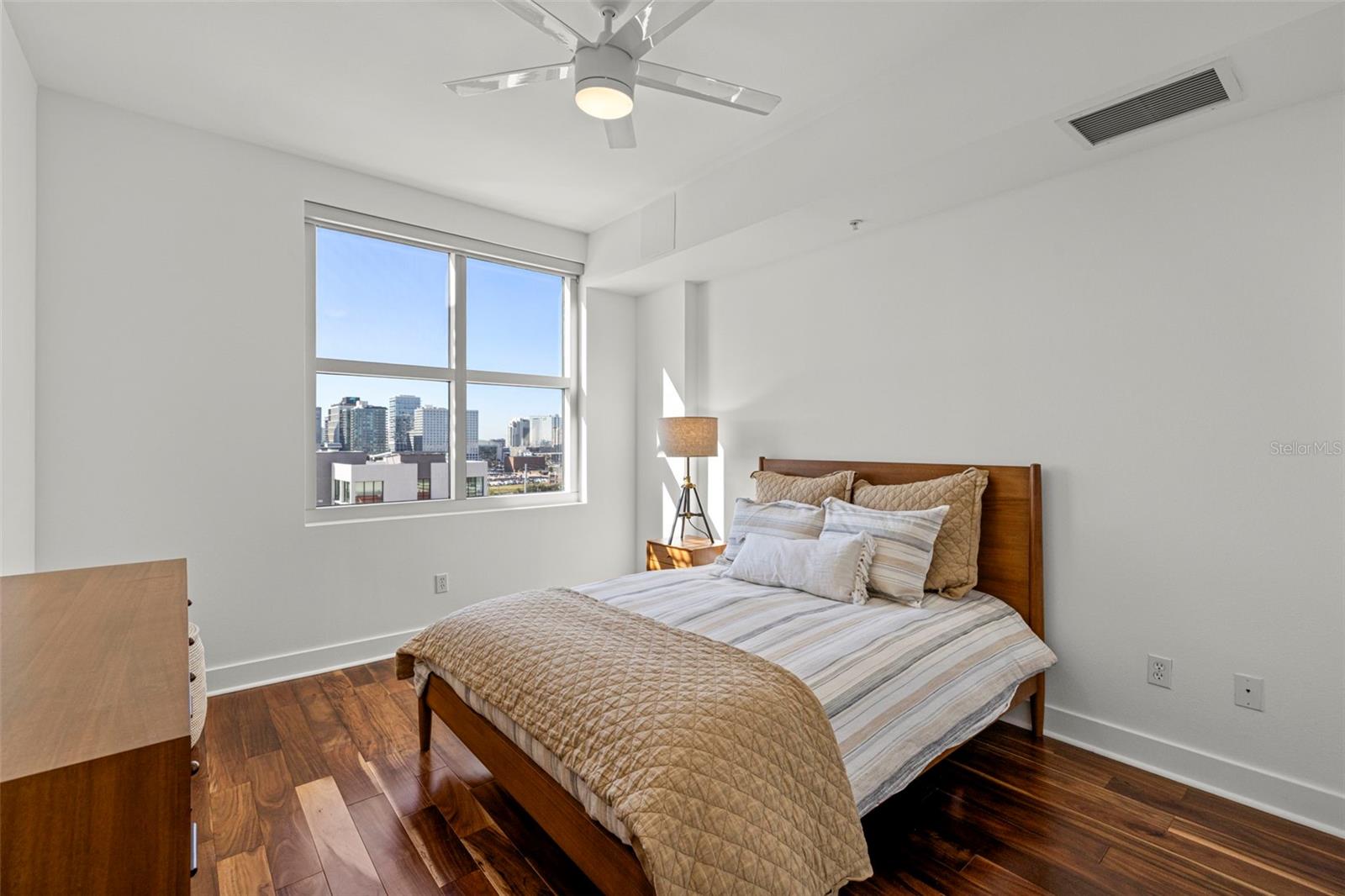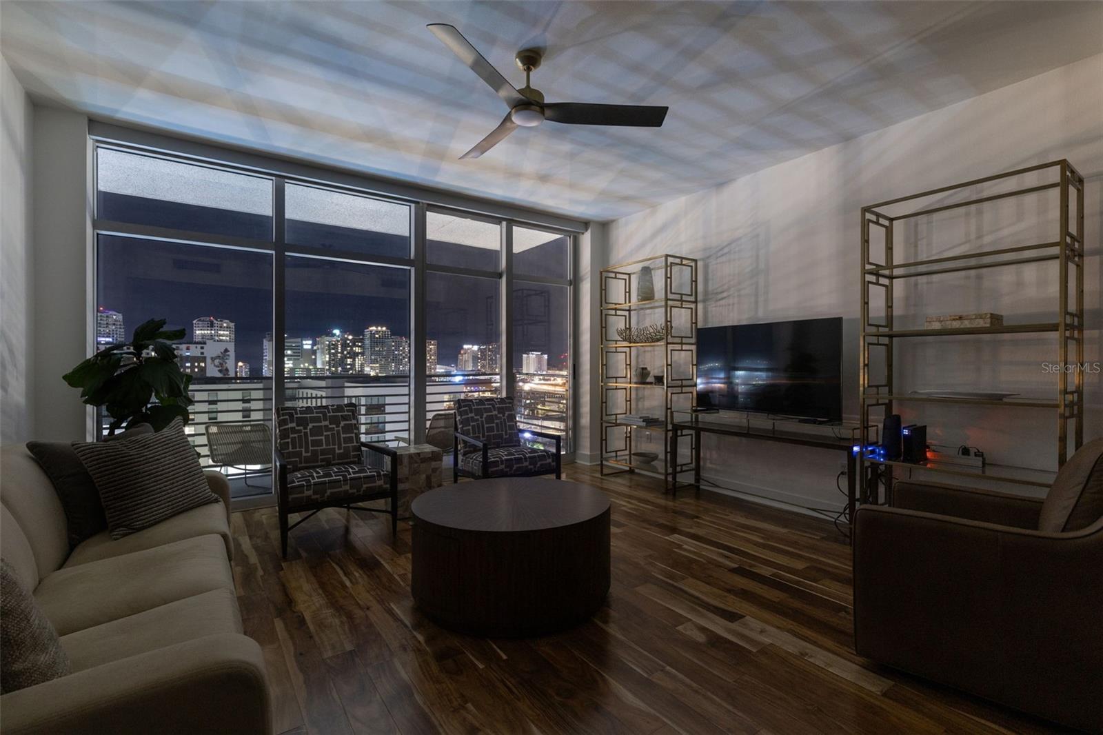 Experience breathtaking city and water views from this modern 2-bedroom, 2-bath residence on the 12th floor in Grand Central at Kennedy. The open-concept layout features a chef-inspired kitchen with Viking appliances, new kitchen pendant lighting, and ample cabinet and counter space that flow seamlessly into the dining and living areas. The Floor-to-ceiling windows fill the home with natural light, and the primary bedroom boasts a full wall of glass showcasing stunning skyline views. Recent owner upgrades include custom California-style closets, electric blackout roller shades, a built-in dresser and shelving, new ceiling fan in the living room, updated kitchen pendant lighting, and fresh interior paint throughout. Residents enjoy resort-style amenities with two rooftop pools, fitness center, clubhouse, outdoor grills, and spa. This unit also includes two side-by-side assigned parking spaces 662 & 663, and an oversized storage locker located in a climate-controlled room. Step outside to vibrant Channelside—just moments from Water Street, Sparkman Wharf, and Tampa’s top dining and entertainment. This unit shows like a model, so schedule your showing before its’ too late!