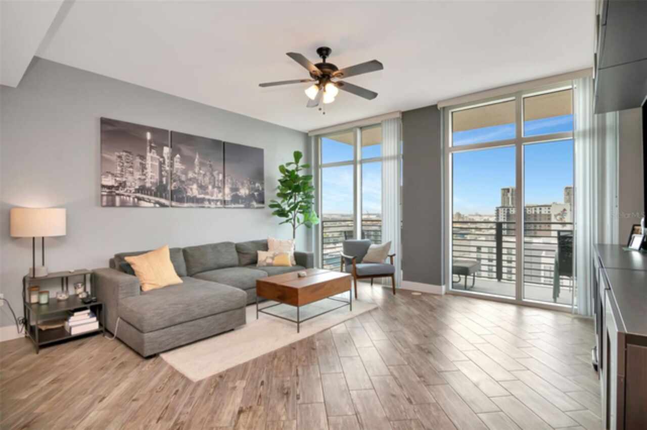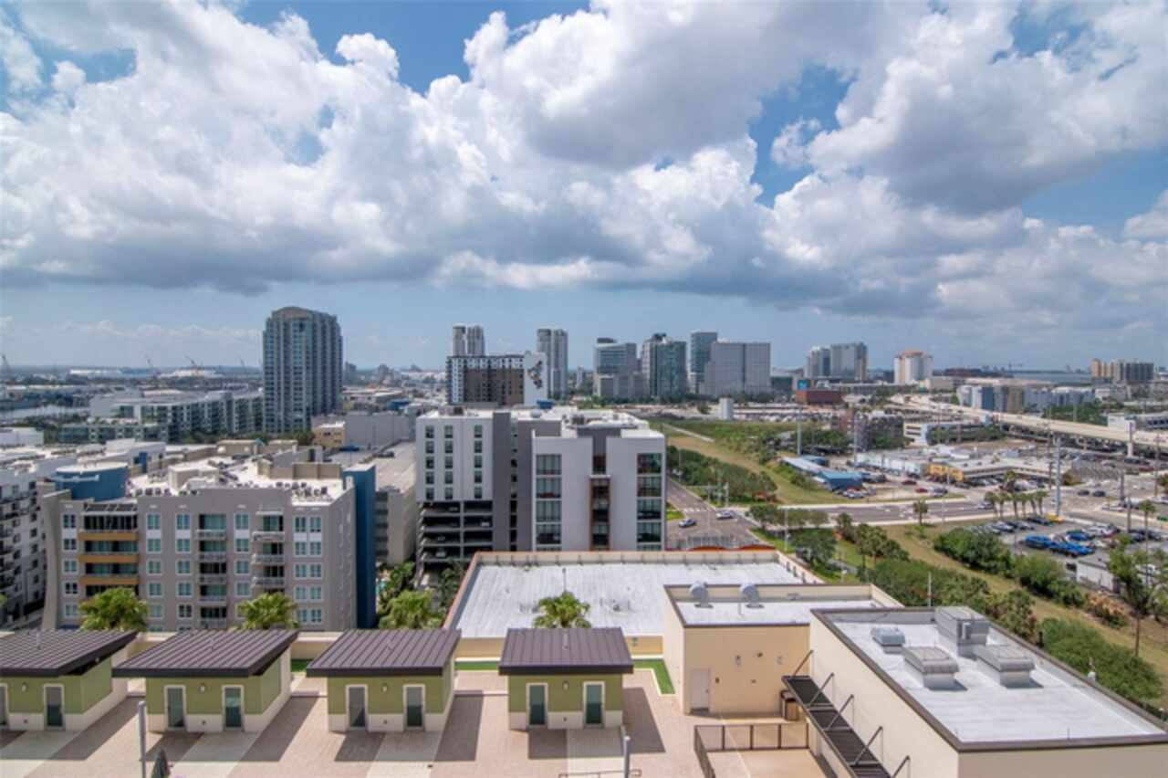 Fantastic TOP Floor Sienna home with unparalleled panoramic views of Channel District, Water Street, and Downtown Tampa Skyline with the luxurious 9th floor pool/amenity deck in the foreground. COMES WITH TWO RESERVED PARKING SPACES AND A CLIMATE CONTROLLED STORAGE UNIT. New contemporary wood-look tile floors throughout the entire home, custom closests, built-in bar with kegerator as well as wine fridge. Beautiful 2 bedroom/2 bathroom split floorplan. Equipped with gas range, oven and dryer as well as Viking stainless steel appliances. The building has 24-hour security, mailroom, and a dedicated Concierge service available. The West Building’s 9th floor has a fully stocked fitness center that rivals any professional gym, a dog-walk path, and a full-size pool with large lounging decks, and an outdoor kitchen area with gas grills, and even a heated jacuzzi. The East Building has the package delivery lockers for easy package pickup, UPS drop-off, and another pool and jacuzzi, and a Conference/Event Center on the 9th floor that can be rented inexpensively for your celebrations. The million-dollar renovation of the ground-level courtyard boasts several areas for watching your favorite sports teams while spending time with friends and neighbors. It is a hub of activity for the Channel District residents right in your building! Great retail and restaurants are right here! District Dry Cleaners includes custom tailoring services, relax at Massage Envy, homemade Italian Gelato Shop, Crunch Gym, The Poke Company, good food and drink at City Dog Cantina, and our own Pour House Brewery. But there’s more – there is a CVS, an Irish Pub, pickleball at the Madison Street Park, two dog parks, putting green, and shuffleboard. At Grand Central condominiums, the HOA fee is comprehensive and includes water, sewer, trash, hot water, cold air, gas, grounds maintenance/landscaping, building/exterior insurance, concierge, 24/7 on-site security, escrowed reserves, pool, spa, and amenities. All that's left is the electricity which is at a minimum because your big users of energy (oven, range, and dryer) are powered by gas, hot water is provided by a boiler room (so no electricity for the water heater), and cold air is provided by a water chiller system on the roof, all you pay for is the interior blower. All of these were part of Green Design philosophy for Grand Central, with Pre-Cast Concrete Panel Exterior supports a Green Design philosophy and is good for the environment. It is easier to maintain over time in comparison to wood or block and stucco construction. It is good for sound absorption, as well as fire resistance, and structures with pre-cast concrete are subject to lower insurance because of strength and the ability to withstand fire and wind. Pre-cast panels are great at energy insulation. Grand Central is the only condominium community in Channelside built with pre-cast concrete. Double Pane, UV Resistant, High Efficiency Windows further prevent noise and enhance temperature control.