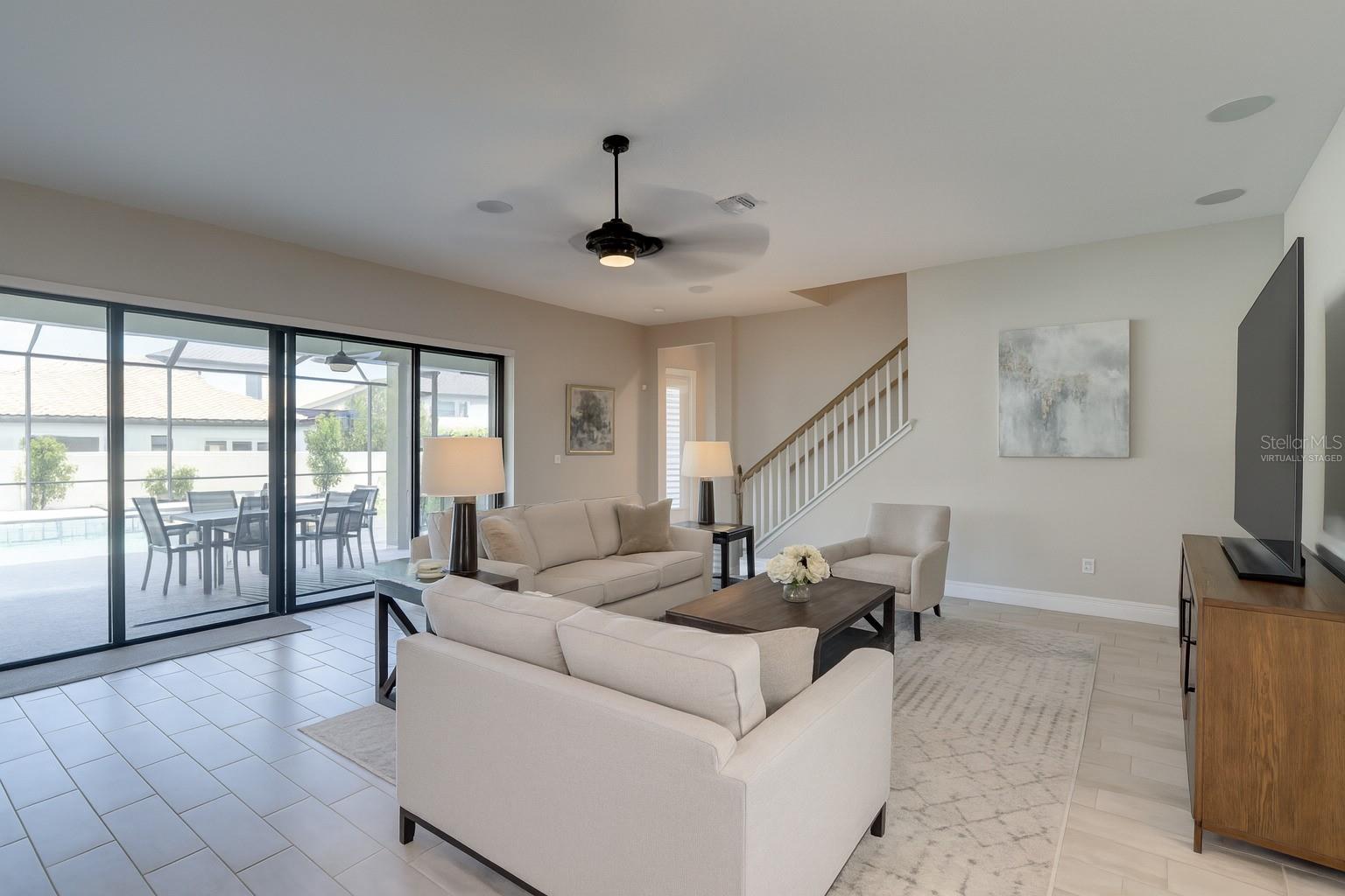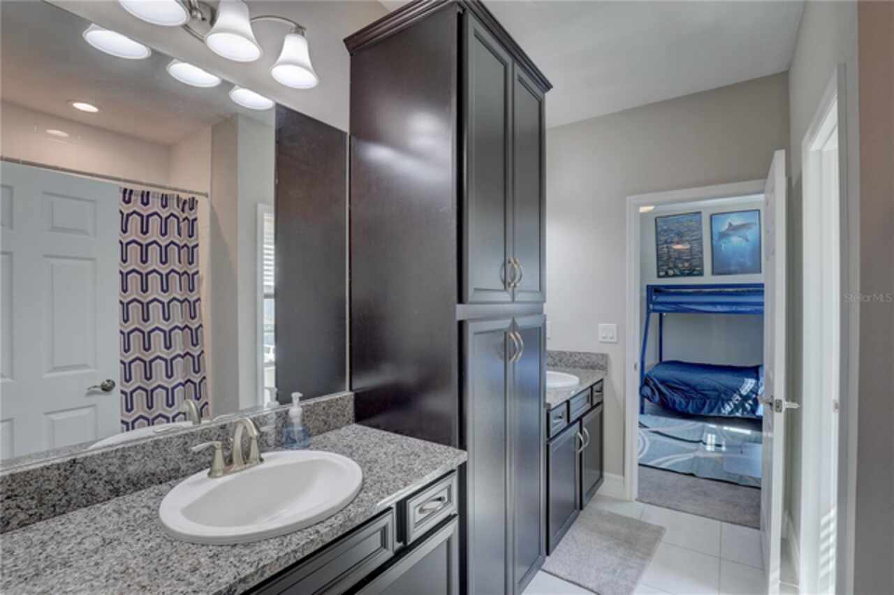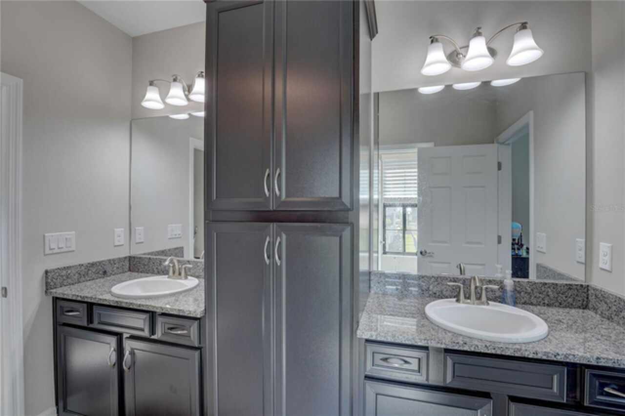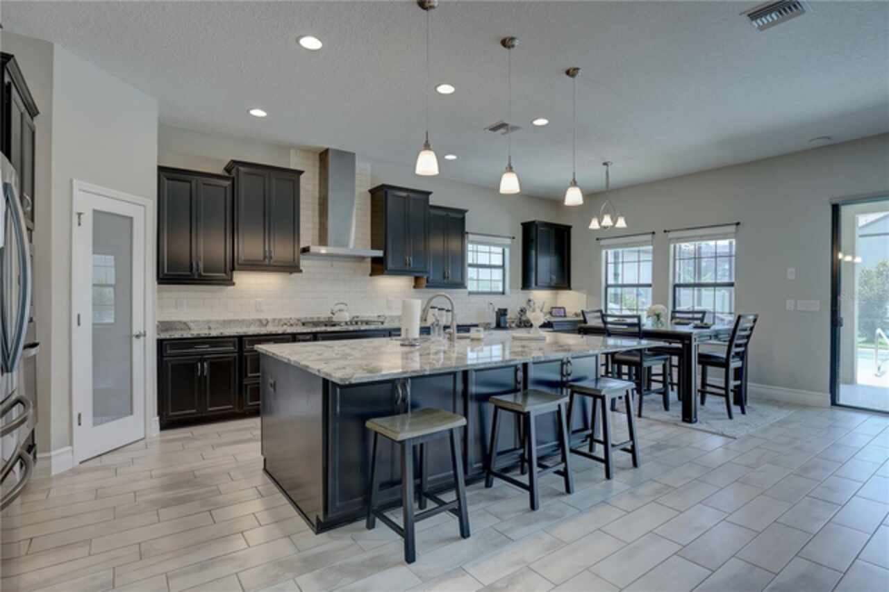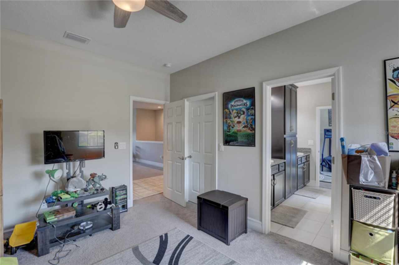 One or more photo(s) has been virtually staged. No overpricing here—this 5-bedroom WestBay Verona is listed at its recent appraised value and features a heated saltwater pool, loft, and luxury upgrades throughout. Offering over 3, 500 sq ft of thoughtfully designed living space, this stunning Verona model blends elegance, comfort, and everyday functionality inside a quiet gated community. Curb appeal shines with a stone-and-stucco exterior, wood accents, and a classic tile roof. Inside, soaring ceilings and an open-concept layout bring in beautiful natural light and highlight the home’s upscale finishes. The extended chef’s kitchen is a standout feature, complete with solid wood cabinetry (including added storage beneath the oversized island), stone countertops, built-in oven, gas cooktop, and premium stainless-steel appliances. The kitchen opens seamlessly into the spacious family room, enhanced with ceiling-mounted surround sound—perfect for entertaining or relaxing at home. A full bedroom and bathroom on the main floor create an ideal setup for guests or multi-generational living. Upstairs, the luxurious primary suite offers a large walk-in closet and spa-inspired bath featuring a soaking tub, walk-in shower, and floor-to-ceiling tile. Additional upstairs bedrooms are generously sized, and each bathroom reflects high-quality finishes and thoughtful design. The large upstairs loft provides a flexible space—ideal for a game room, second living area, home gym, or creative studio. Upstairs laundry adds convenience to daily life. Step outside to true Florida living. The screened, heated saltwater pool, tile deck, and covered patio create a private retreat designed for both relaxation and entertainment. Outdoor surround sound extends the experience, making this the perfect spot for gatherings, BBQs, and weekend pool days. The fully fenced backyard adds privacy and peace of mind. Additional Features Include: Laminate, ceramic tile, and plush carpet flooring Ceiling fans throughout Energy-efficient climate control In-wall pest control system Smart home security features Natural gas utilities 3-car garage Fully fenced backyard Located in a well-maintained gated community close to top-rated schools, shopping, dining, and commuter routes, this home offers the ideal blend of luxury, practicality, and location. Homes with this size, layout, and pool package rarely come available—schedule your private showing today.