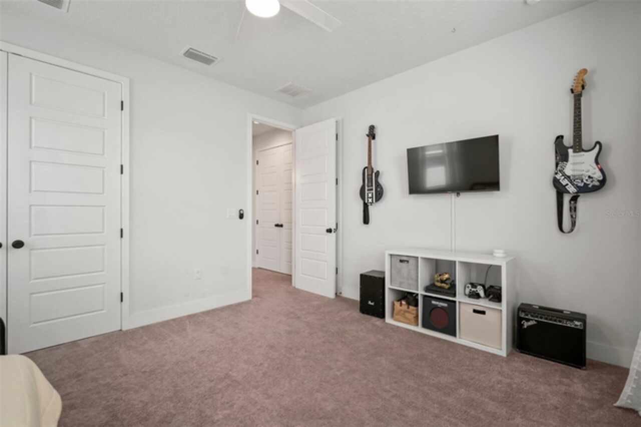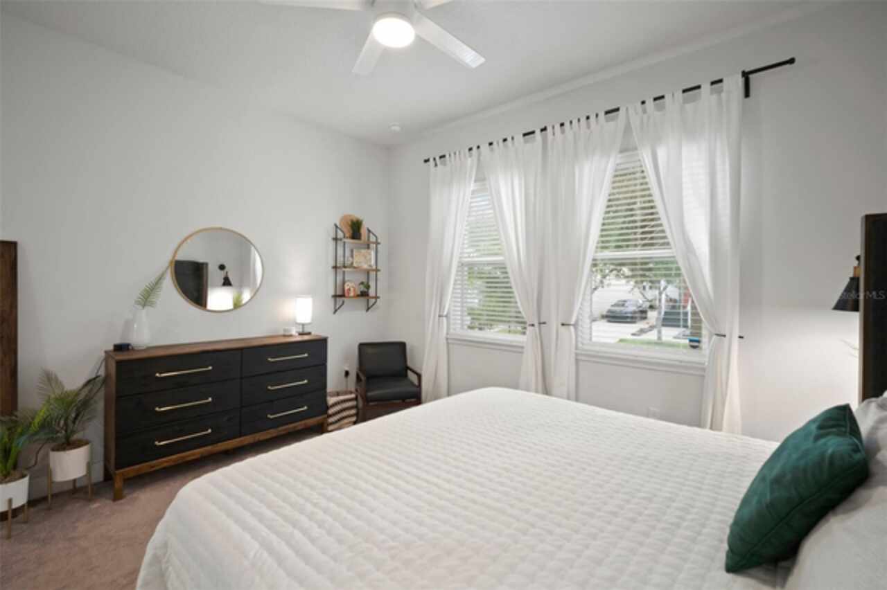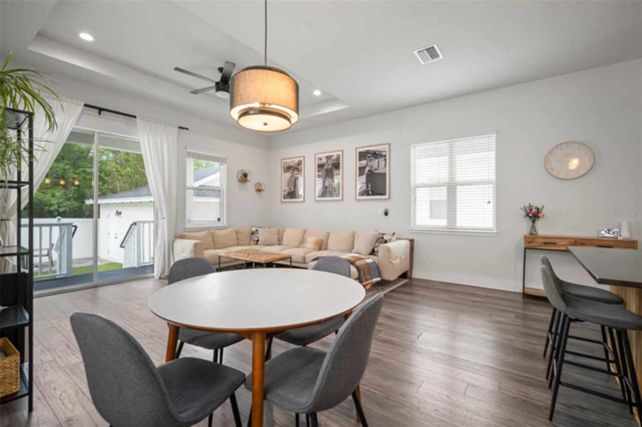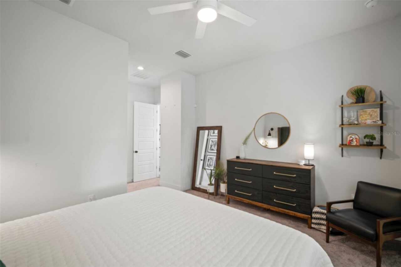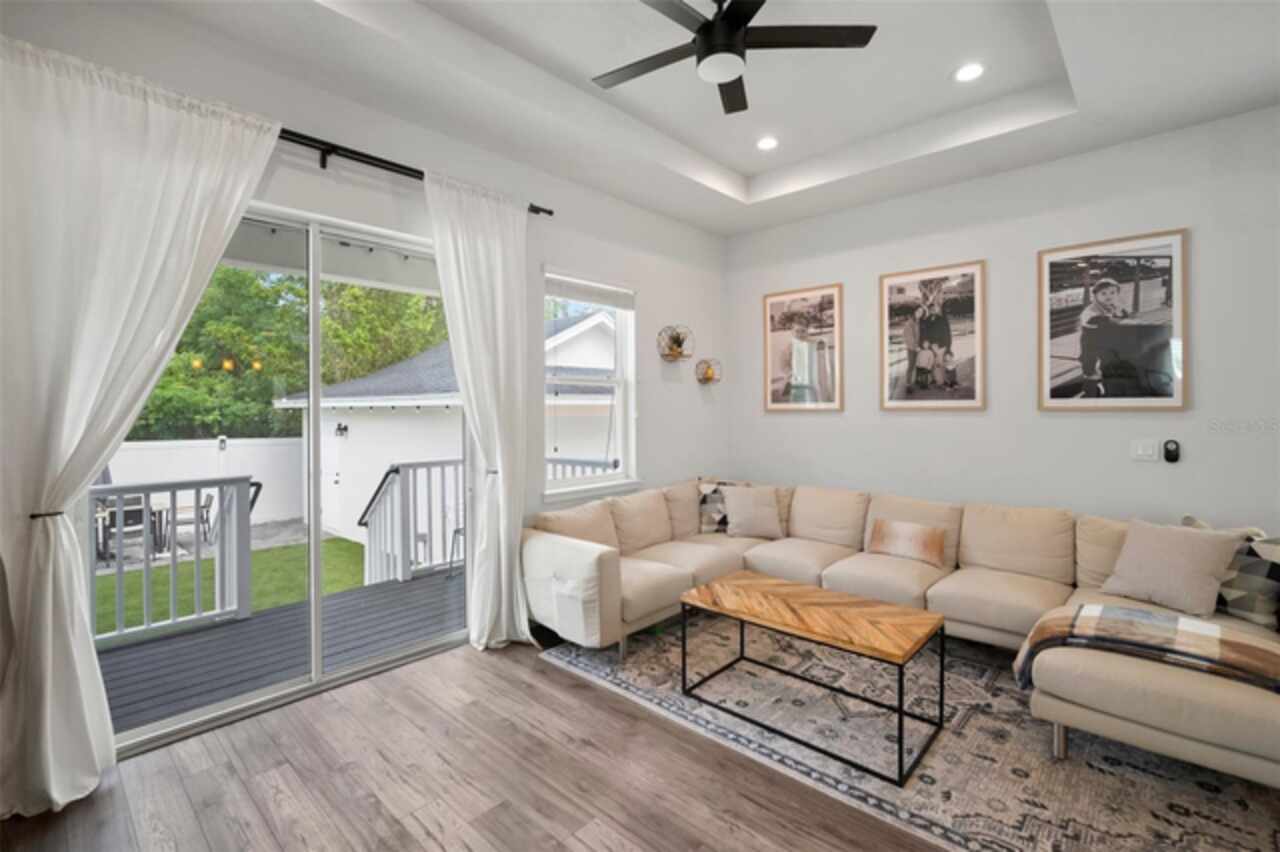 This is Tiverton—a thoughtfully crafted, one-of-a-kind community that breaks away from the ordinary. Tucked away in the heart of Citrus Park and Carrollwood, Tiverton offers a refreshing departure from the ordinary, blending Southern charm with thoughtful architecture in a private, tree-lined cul-de-sac of just 30 distinctive homes. This beautifully crafted two-story residence embodies the spirit of the neighborhood with its elegant proportions and custom finishes. Featuring three oversized bedrooms, two and a half impeccably designed bathrooms, and a detached two-car garage, the home invites you to experience both comfort and sophistication. As you approach the welcoming front steps, you will immediately feel the sense of arrival that only a truly special home can offer. Inside, natural light pours into the open-concept living areas, where tray ceilings, custom trim work, and designer lighting elevate every moment. The living space flows effortlessly into the gourmet kitchen, the heart of the home—appointed with rich cabinetry, a dramatic wraparound tile backsplash, and a large center island that seamlessly blends function with beauty, perfect for entertaining or everyday gathering. Positioned on a peaceful, low-traffic street and nestled against protected conservation land, this home offers unmatched privacy and lush, natural views. Step outside to a professionally designed outdoor retreat, complete with a split paved patio and turf lawn — an idyllic setting for al fresco dining, weekend lounging, or tranquil evenings under the stars. The home is enhanced with hurricane shutters for added protection, an extended driveway that accommodates multiple vehicles with ease, and a versatile upstairs loft that can serve as a home office, play space, or reading nook—a flexible bonus that adapts to your lifestyle. Tiverton itself is a rare gem. This intimate community offers residents access to a private playground, a picturesque central lake, and a true sense of neighborly connection. With low HOA fees that include front and side yard maintenance and a prime location just minutes from the Veterans Expressway, Citrus Park Town Center, Tampa International Airport, downtown Tampa, and Florida’s world-famous Gulf Coast beaches — every convenience is within easy reach. This is more than a home—it’s a statement of style, a sanctuary of comfort, and a gateway to the very best of Tampa living. Come experience the unparalleled charm and distinction of this home for yourself, schedule your private tour today!