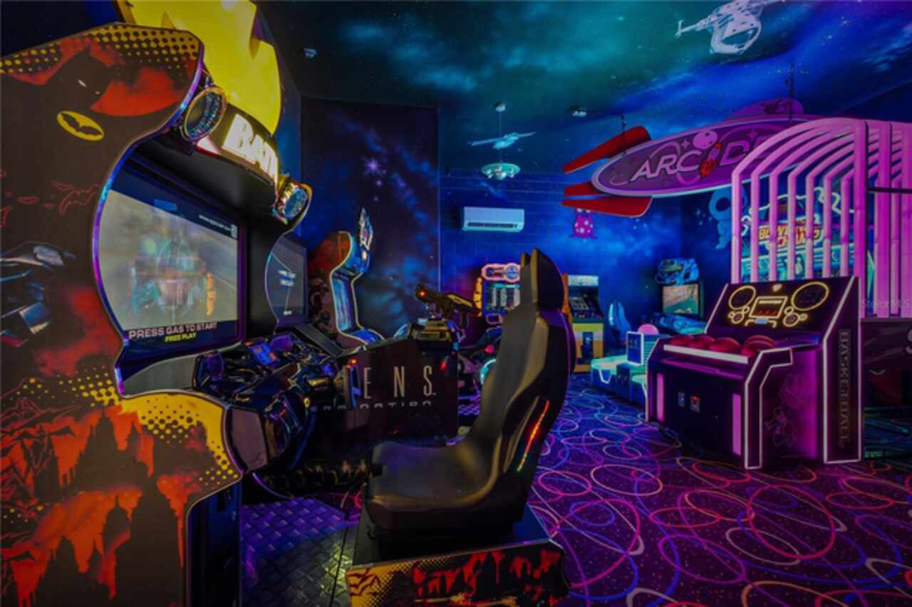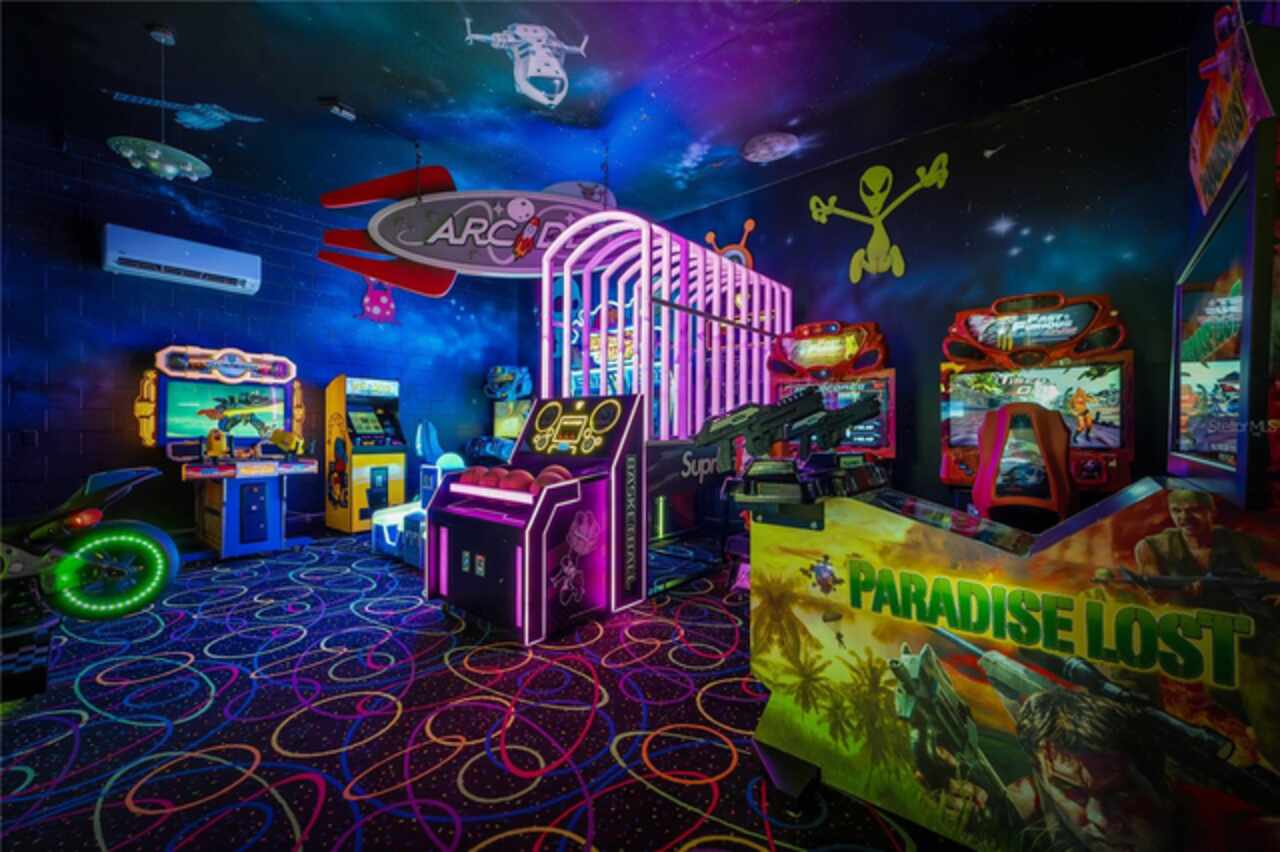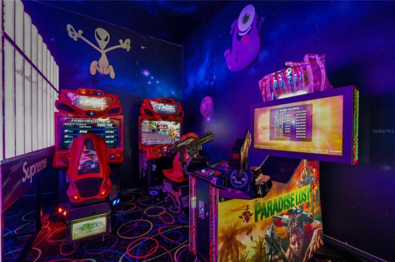 Ideally located in the award-winning REUNION RESORT and overlooking the 6th hole of the Jack Nicklaus designed Tradition golf course, presenting this spectacular FULLY FURNISHED custom ESTATE HOME boasting a lifestyle of pure LUXURY! Upon arrival, an impressive double-heighted ceiling entryway opens to the foyer and huge living/great room areas with large sliding doors framing PICTURE PERFECT VIEWS. Designed to accommodate large gatherings, experience the true Florida lifestyle, seamlessly blending the indoor & outdoor lounge and dining areas featuring automatic retractable screens as well as multiple entertainment spaces. Perfect for both family & guest entertaining and/or to use as a REVENUE/INCOME GENERATING INVESTMENT property (with the added available opportunity to transfer future bookings!). At the heart of the residence is a magnificent CUSTOM high gloss gourmet kitchen with quartz countertops, stainless steel appliances, oversize central island and hidden spacious walk-in pantry. Design features are a bound and include contemporary flooring, MODERN BESPOKE CABINETRY, tray ceilings and DESIGNER fittings. Enjoy the vast array of AMENITIES this residence has to offer including an ARCADE room jam packed with a wide variety of electronic games, a CASINO themed room decked out with cutting edge digital slot machines, a unique open-concept living entertainment space with secondary kitchen/bar area and countertop seating, lounge area as well as a luxury HOME THEATER (with seating for 12). Additional features include a fully equipped fitness GYM and a private SPA with sauna & steam shower. For your added convenience, there is also a residential elevator! Each of the 11 luxurious bedrooms have ensuite bathrooms and are well appointed in size with two PROFESSIONALLY THEMED MASTERPIECES sure to impress – the Jurassic Park room sleeps 5 and showcases a life-size dinosaur head and jeep vehicle-bed whilst the Steamboat Willie Mickey Mouse room has bunkbeds which sleep 8. The PANORAMIC FAIRWAY VIEWS can be especially appreciated from the upper balcony area as well as from under the covered lanai and open patio areas with heated sparkling POOL featuring a beach entry point, spa and fountain. Make the most of the outdoor full BBQ kitchen with plentiful dining space, casual countertop seating together with an inviting lounge area with two-sided fireplace watching early morning sunrises and late evening sunsets! An ACTIVE TRANSFERRABLE MEMBERSHIP grants access to the many amenities of the Reunion Resort with its three world class golf courses (designed by Arnold Palmer, Tom Watson and Jack Nicklaus), a golf academy, Clubhouse at The Bear’s Den, six onsite restaurants, twelve community swimming pools, a multimillion-dollar water park, six Har-True tennis courts, pickleball, bocce ball, volleyball, crazy golf, a playground, and full-service salon & spa. Reunion is only a couple of miles away from Walt Disney World Resort, Seaworld and Universal Studios. VIRTUAL TOUR, VIDEO and FLOORPLAN are available. Book your private showing today and make this dream home your reality!