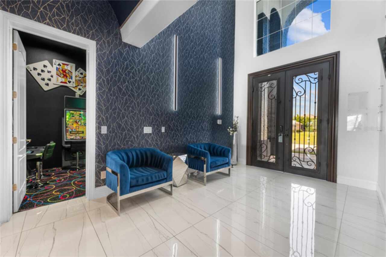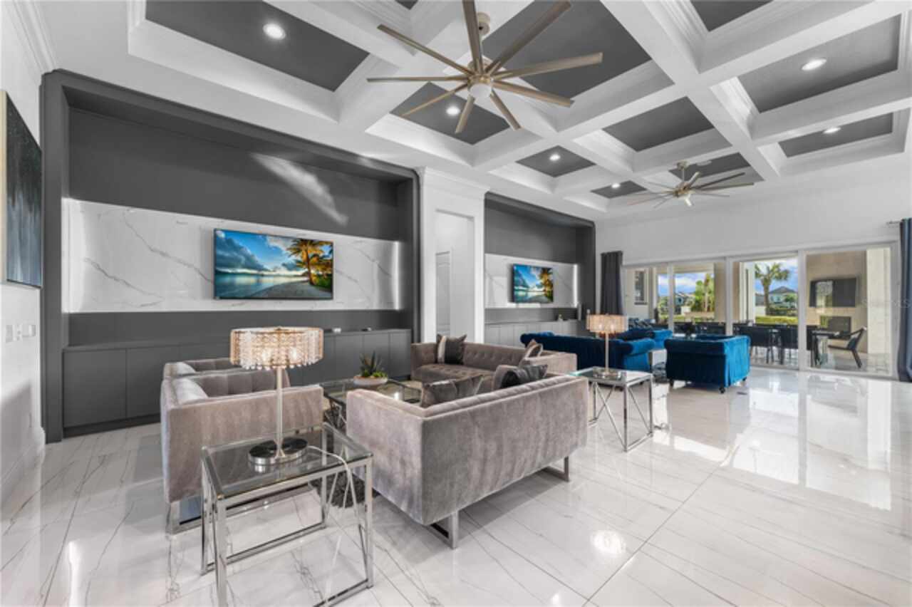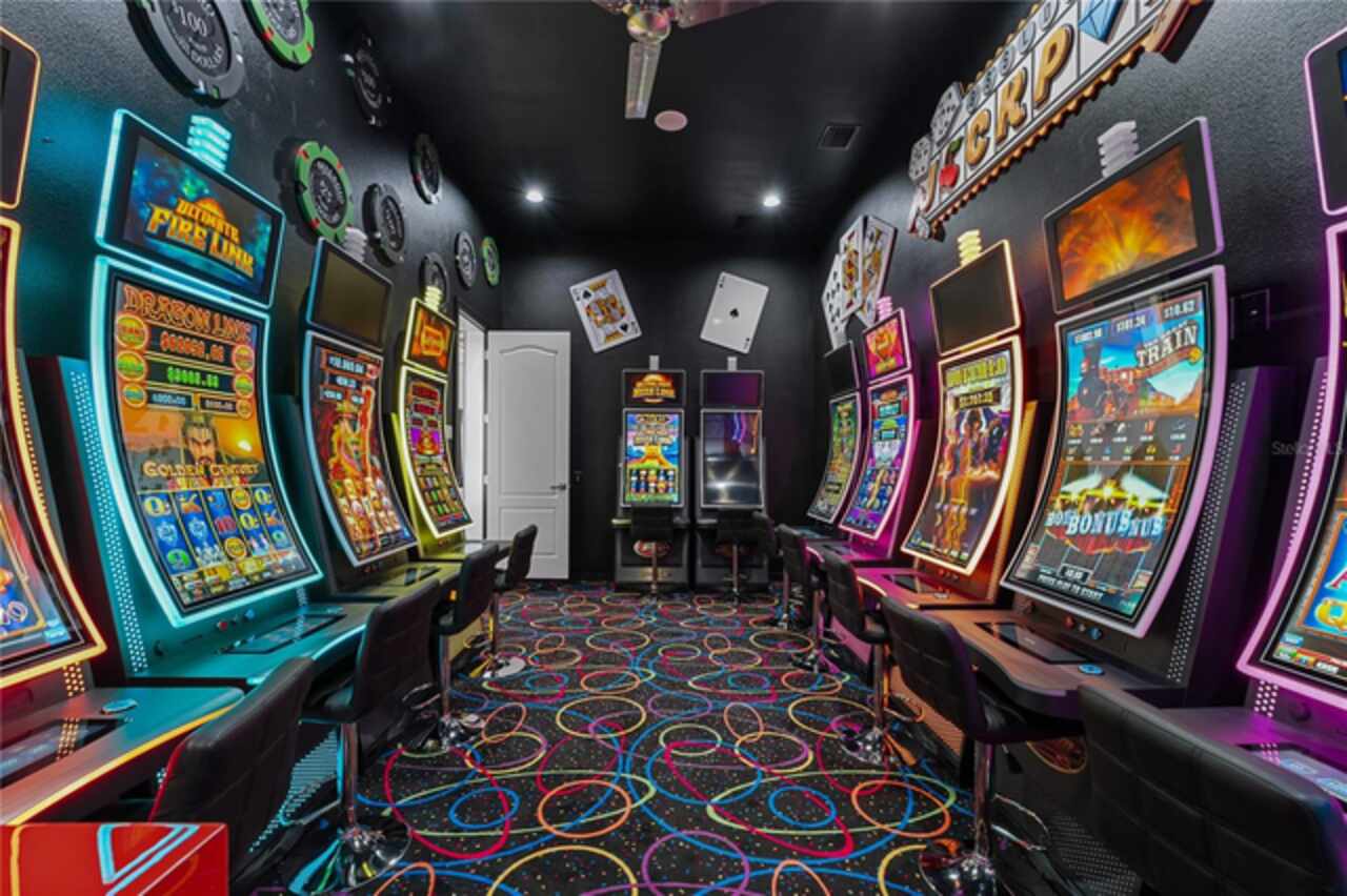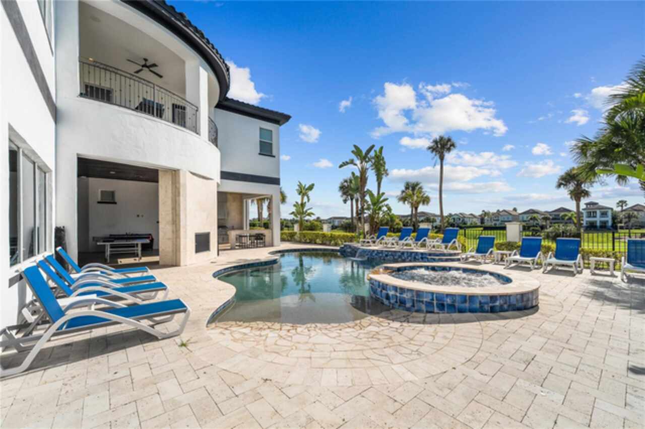 Ideally located in the award-winning REUNION RESORT and overlooking the 6th hole of the Jack Nicklaus designed Tradition golf course, presenting this spectacular FULLY FURNISHED custom ESTATE HOME boasting a lifestyle of pure LUXURY! Upon arrival, an impressive double-heighted ceiling entryway opens to the foyer and huge living/great room areas with large sliding doors framing PICTURE PERFECT VIEWS. Designed to accommodate large gatherings, experience the true Florida lifestyle, seamlessly blending the indoor & outdoor lounge and dining areas featuring automatic retractable screens as well as multiple entertainment spaces. Perfect for both family & guest entertaining and/or to use as a REVENUE/INCOME GENERATING INVESTMENT property (with the added available opportunity to transfer future bookings!). At the heart of the residence is a magnificent CUSTOM high gloss gourmet kitchen with quartz countertops, stainless steel appliances, oversize central island and hidden spacious walk-in pantry. Design features are a bound and include contemporary flooring, MODERN BESPOKE CABINETRY, tray ceilings and DESIGNER fittings. Enjoy the vast array of AMENITIES this residence has to offer including an ARCADE room jam packed with a wide variety of electronic games, a CASINO themed room decked out with cutting edge digital slot machines, a unique open-concept living entertainment space with secondary kitchen/bar area and countertop seating, lounge area as well as a luxury HOME THEATER (with seating for 12). Additional features include a fully equipped fitness GYM and a private SPA with sauna & steam shower. For your added convenience, there is also a residential elevator! Each of the 11 luxurious bedrooms have ensuite bathrooms and are well appointed in size with two PROFESSIONALLY THEMED MASTERPIECES sure to impress – the Jurassic Park room sleeps 5 and showcases a life-size dinosaur head and jeep vehicle-bed whilst the Steamboat Willie Mickey Mouse room has bunkbeds which sleep 8. The PANORAMIC FAIRWAY VIEWS can be especially appreciated from the upper balcony area as well as from under the covered lanai and open patio areas with heated sparkling POOL featuring a beach entry point, spa and fountain. Make the most of the outdoor full BBQ kitchen with plentiful dining space, casual countertop seating together with an inviting lounge area with two-sided fireplace watching early morning sunrises and late evening sunsets! An ACTIVE TRANSFERRABLE MEMBERSHIP grants access to the many amenities of the Reunion Resort with its three world class golf courses (designed by Arnold Palmer, Tom Watson and Jack Nicklaus), a golf academy, Clubhouse at The Bear’s Den, six onsite restaurants, twelve community swimming pools, a multimillion-dollar water park, six Har-True tennis courts, pickleball, bocce ball, volleyball, crazy golf, a playground, and full-service salon & spa. Reunion is only a couple of miles away from Walt Disney World Resort, Seaworld and Universal Studios. VIRTUAL TOUR, VIDEO and FLOORPLAN are available. Book your private showing today and make this dream home your reality!