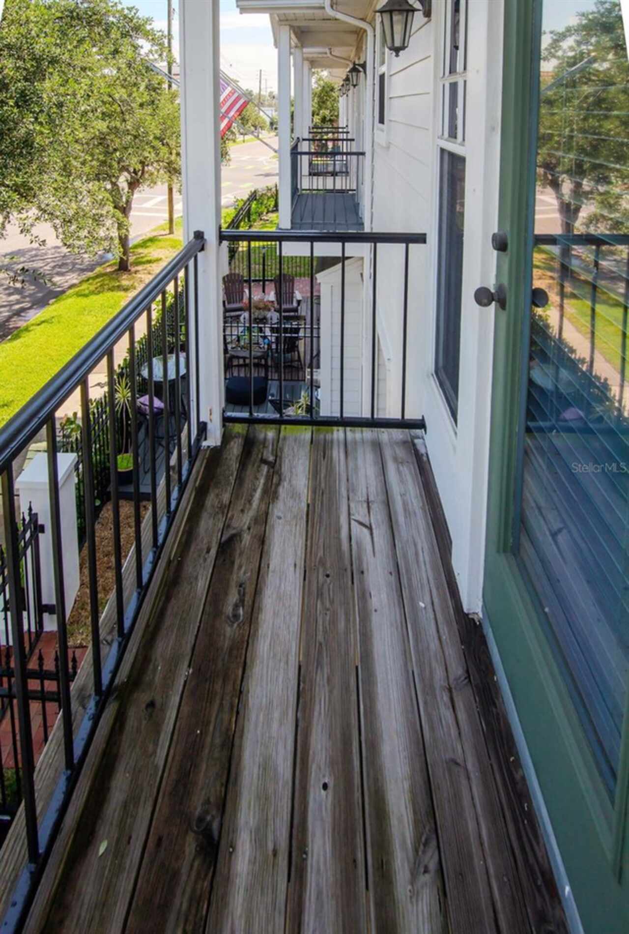 Balcony, French Doors, Lighting, Rain Gutters, Sidewalk