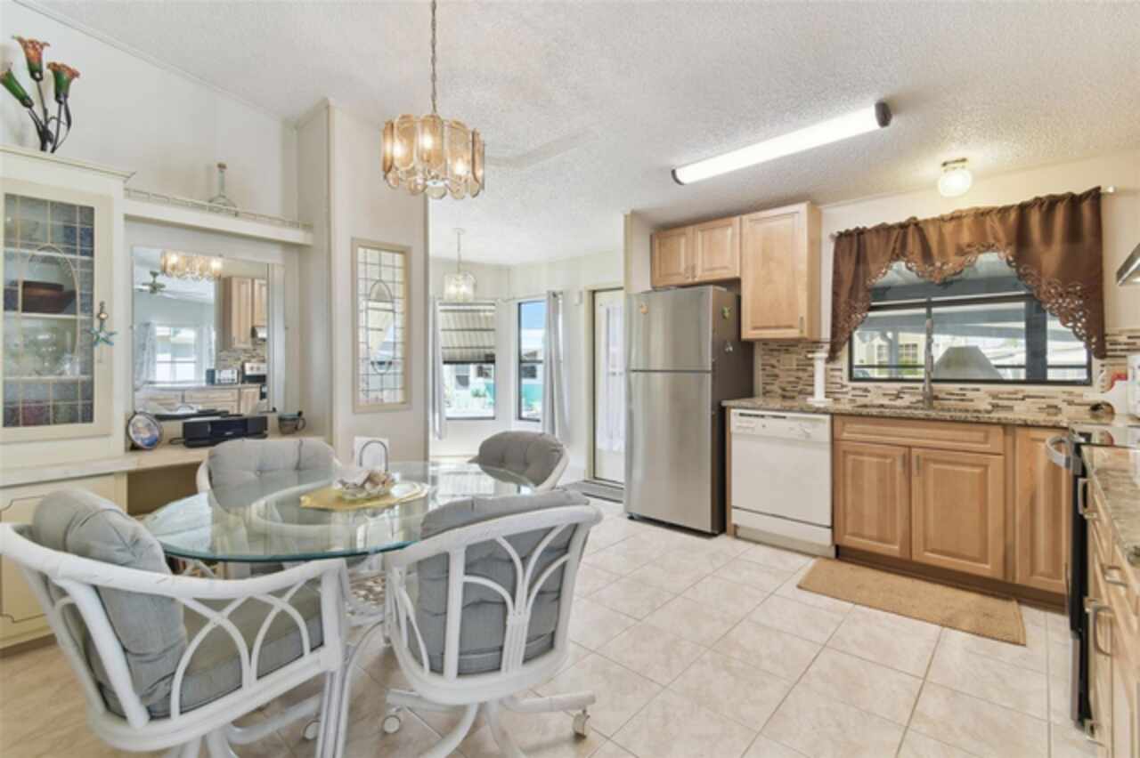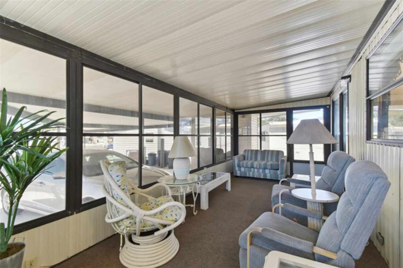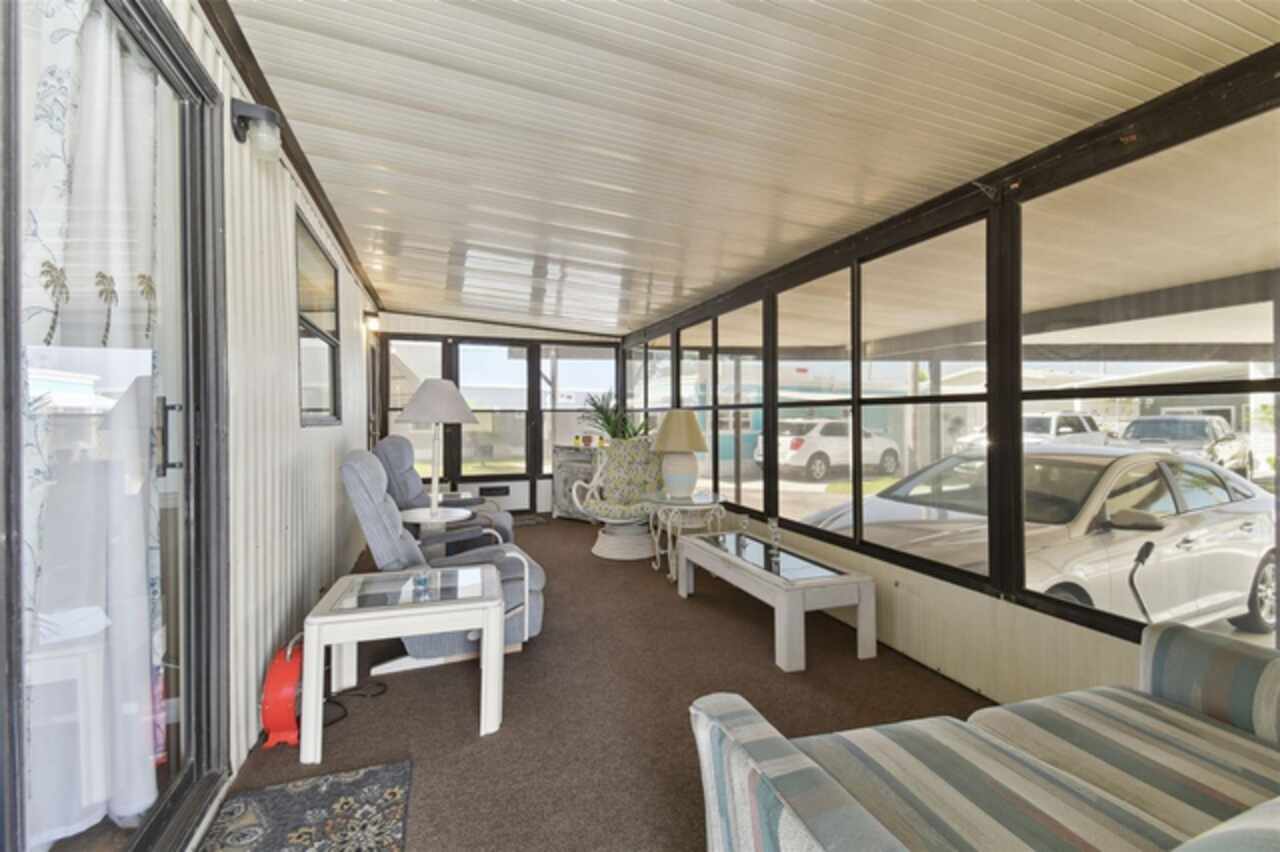 Discover comfortable living in this delightful mobile home nestled within Southwinds 55+ mobile home community, just minutes from Siesta Key! This two-bedroom, two-bathroom home features a thoughtfully designed layout that fills the living spaces with natural light. The kitchen, complete with appliances, seamlessly connects to the living area and features a bar area perfect for entertaining. The practical layout extends to the exterior, where a large screened in patio awaits for enjoying fresh air and outdoor moments. The home also includes convenient outdoor storage with a washer and dryer. This home offers comfort and convenience in a well sought after and welcoming neighborhood. The Southwinds community includes a community pool, shuffleboard, pickleball, bocce ball, and horseshoe courts, a putting green, picnic area, pool room, library, and a recreation hall. Book your tour today to experience all that this wonderful community has to offer!