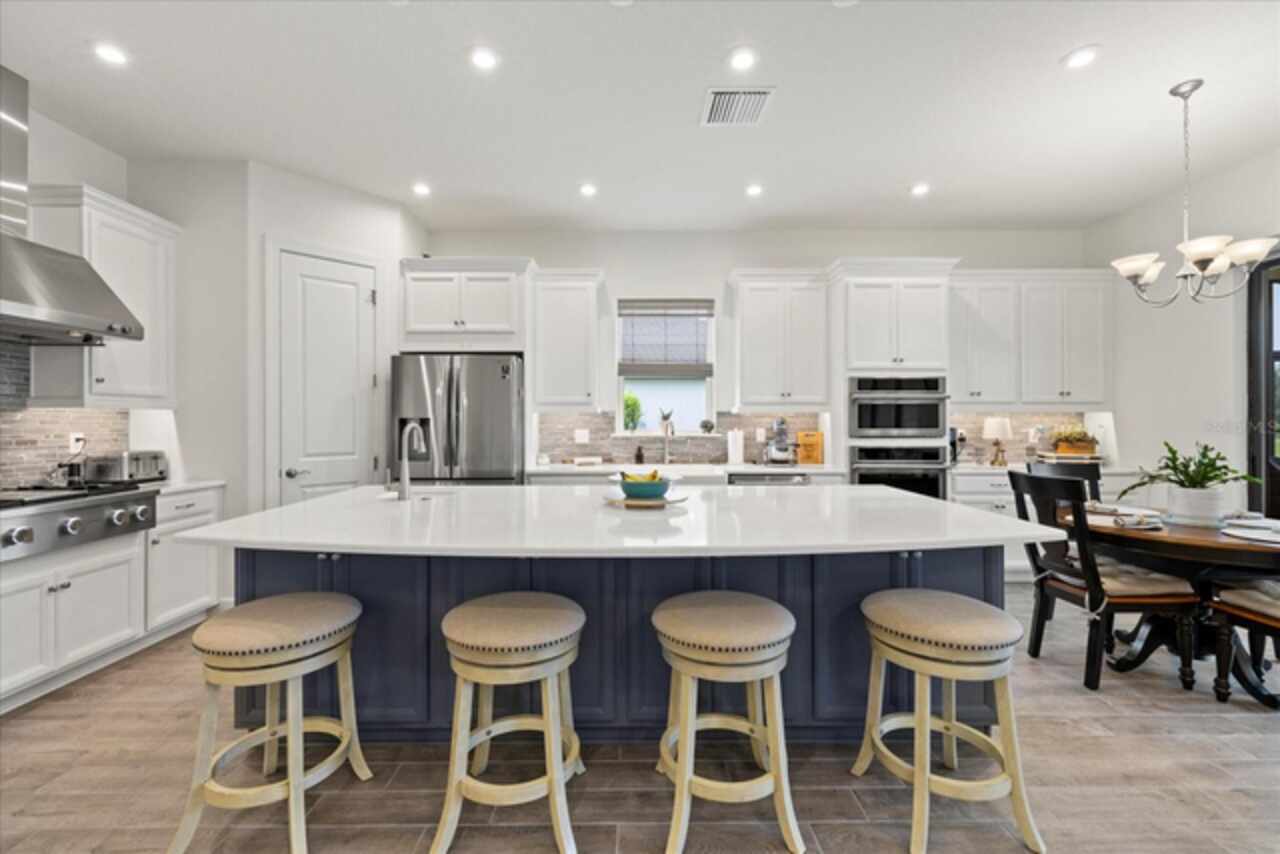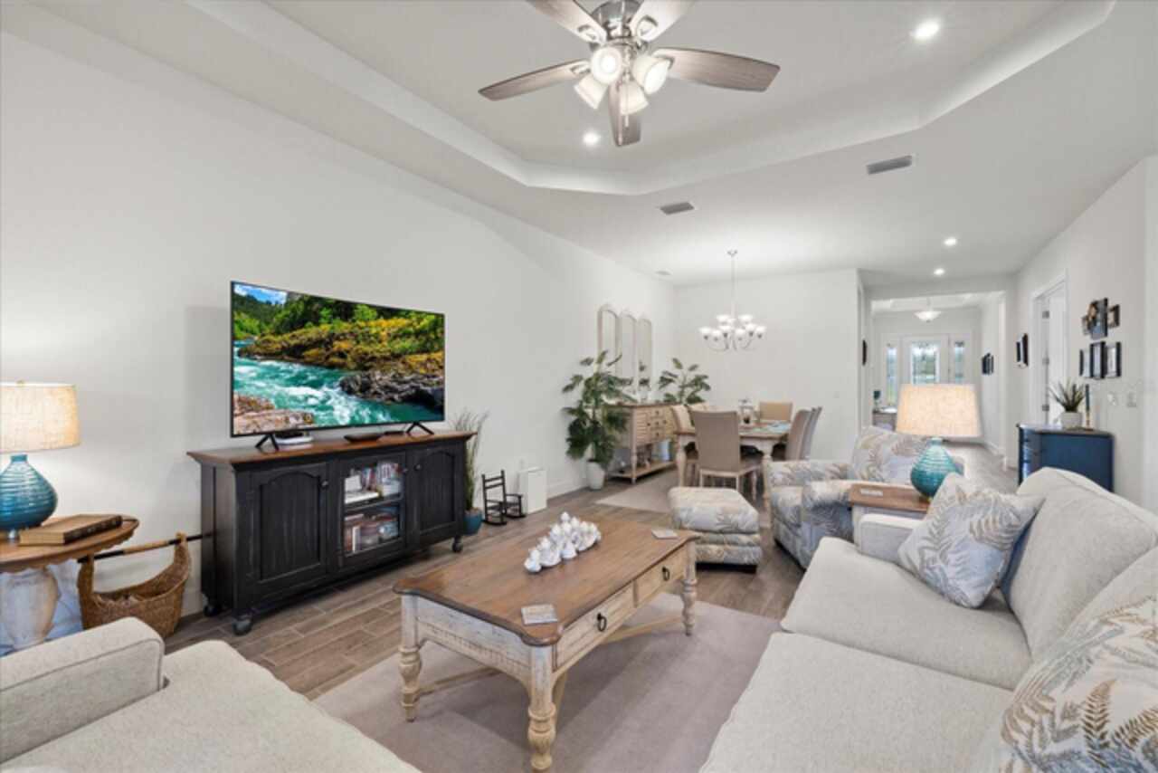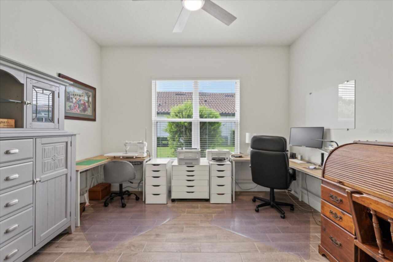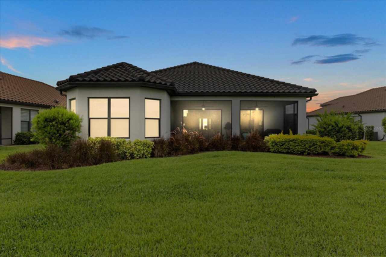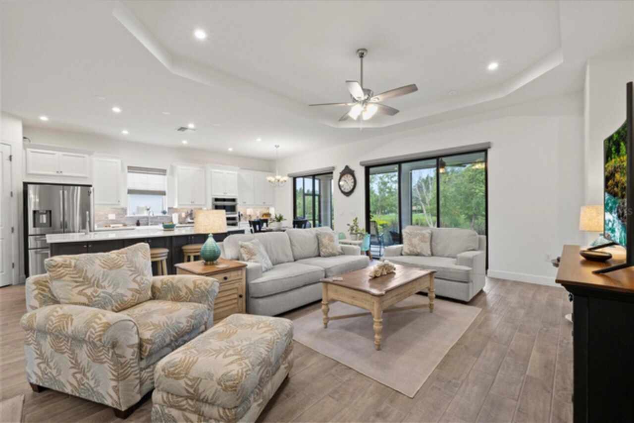 Welcome to this stunning custom-built 3BR/3BA + office home in the highly sought-after Esplanade at Starkey Ranch! Built in 2021, this immaculate residence offers a spacious open floor plan with 10’ ceilings, 8’ solid wood doors, upgraded tile flooring, and designer lighting throughout. The gourmet kitchen boasts quartz countertops, a Monogram appliance package ($10, 000 upgrade), microwave/convection oven combo, farmhouse sink, large island with prep sink and knee wall cabinetry—ideal for entertaining. Enjoy flexibility with a dedicated office/craft room that can easily function as a 4th bedroom, and unwind in the luxurious primary suite featuring a sitting area with water views of the pond, custom closet shelving, and spa-style bath with dual rain shower heads. Smart-home ready with pre-wired internet, cable, central floor outlets, and pendant lighting options. Step outside to your screened lanai overlooking a premium water view lot—already pre-plumbed and pre-wired for a future pool. Additional upgrades include motorized with remote control shades on sliding doors out to lanai, hurricane shutters, a hurricane-rated front door and window, aluminum gutters, tandem garage, and a pre-wired smart-home package. Located in a vibrant, amenity-rich gated community close to parks, trails, and top-rated schools—this home truly has it all! Monthly HOA fee covers: Plant and tree replacement, landscaping, lawn care, sprinkler system, trash pickup, PLUS common areas, pool and amenity center.
