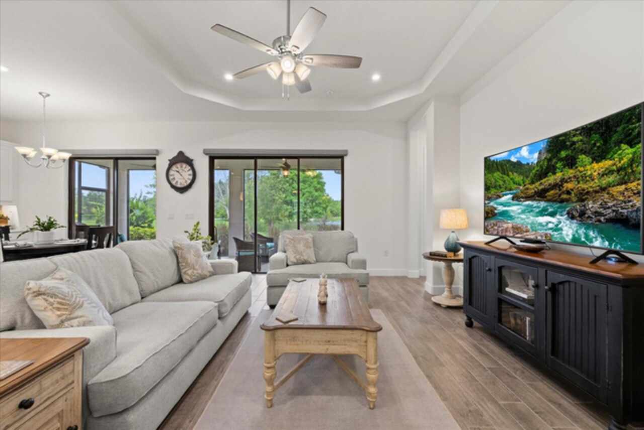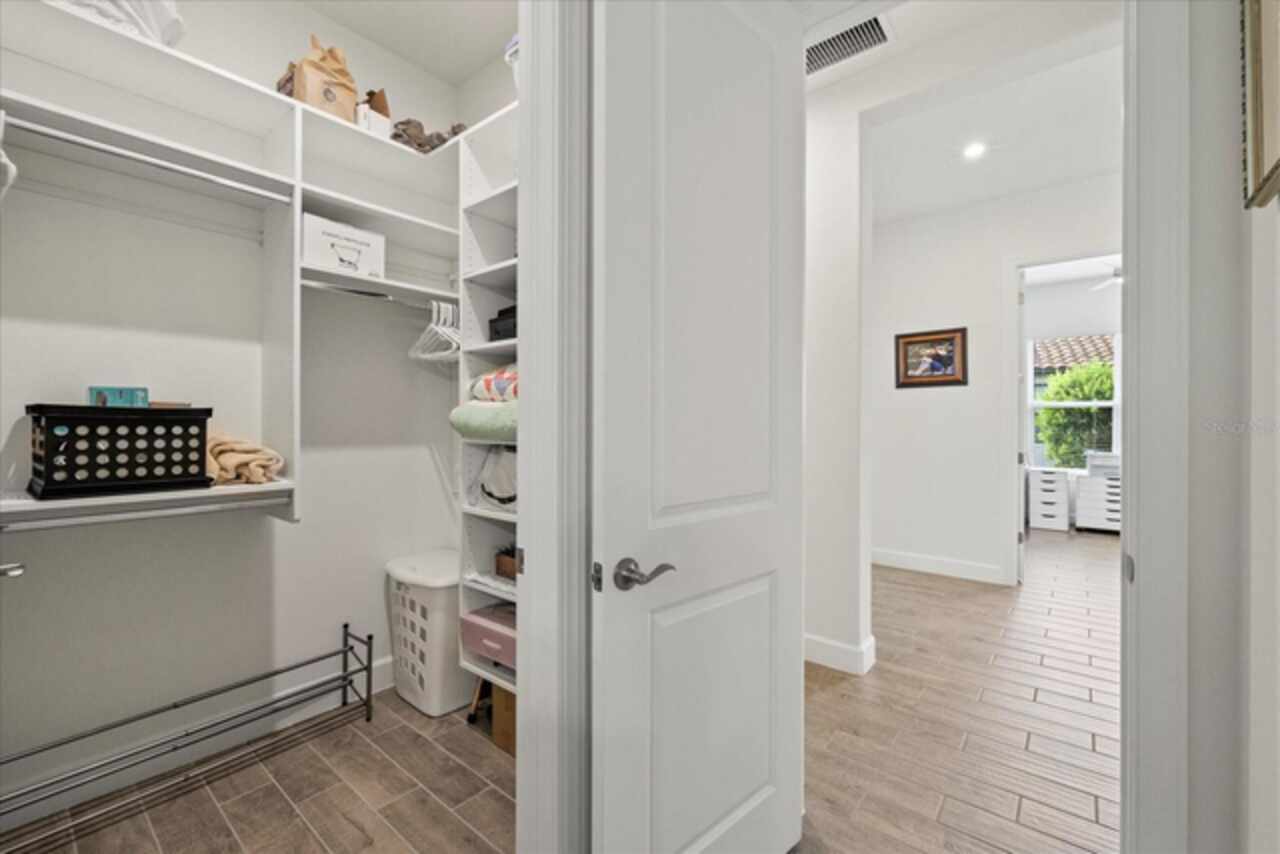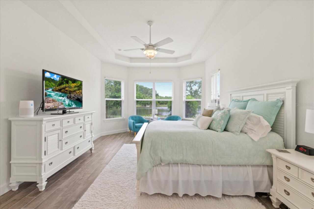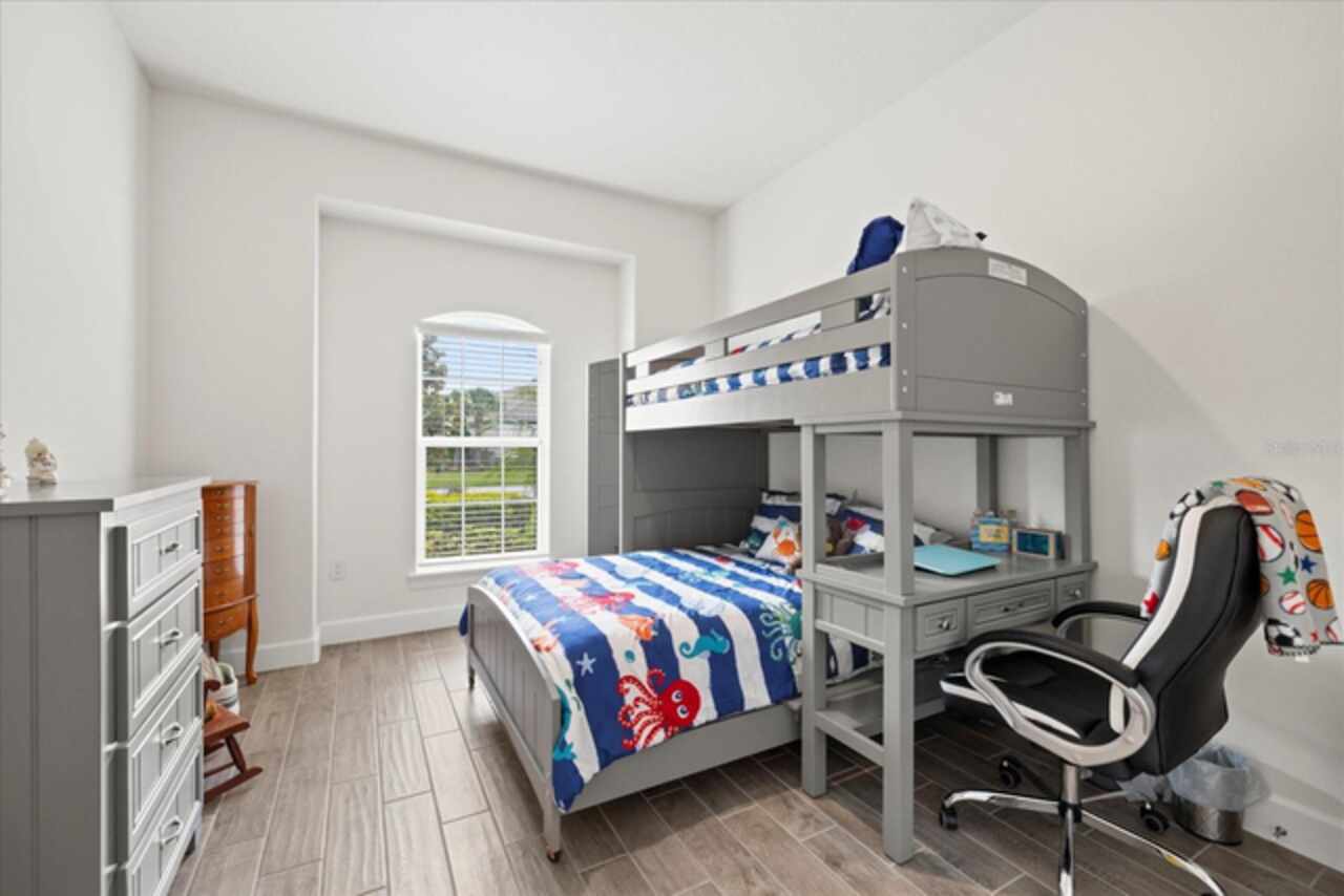 Welcome to this stunning custom-built 3BR/3BA + office home in the highly sought-after Esplanade at Starkey Ranch! Built in 2021, this immaculate residence offers a spacious open floor plan with 10’ ceilings, 8’ solid wood doors, upgraded tile flooring, and designer lighting throughout. The gourmet kitchen boasts quartz countertops, a Monogram appliance package ($10, 000 upgrade), microwave/convection oven combo, farmhouse sink, large island with prep sink and knee wall cabinetry—ideal for entertaining. Enjoy flexibility with a dedicated office/craft room that can easily function as a 4th bedroom, and unwind in the luxurious primary suite featuring a sitting area with water views of the pond, custom closet shelving, and spa-style bath with dual rain shower heads. Smart-home ready with pre-wired internet, cable, central floor outlets, and pendant lighting options. Step outside to your screened lanai overlooking a premium water view lot—already pre-plumbed and pre-wired for a future pool. Additional upgrades include motorized with remote control shades on sliding doors out to lanai, hurricane shutters, a hurricane-rated front door and window, aluminum gutters, tandem garage, and a pre-wired smart-home package. Located in a vibrant, amenity-rich gated community close to parks, trails, and top-rated schools—this home truly has it all! Monthly HOA fee covers: Plant and tree replacement, landscaping, lawn care, sprinkler system, trash pickup, PLUS common areas, pool and amenity center.