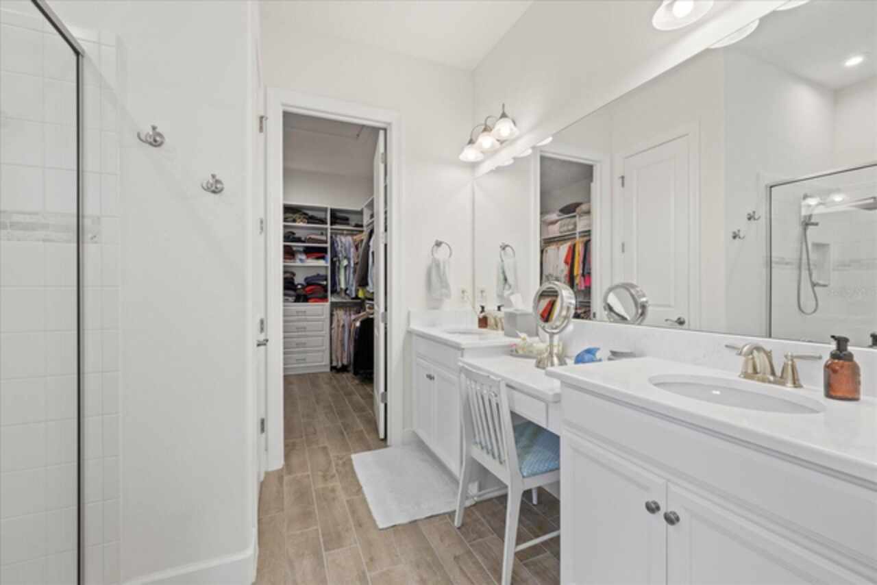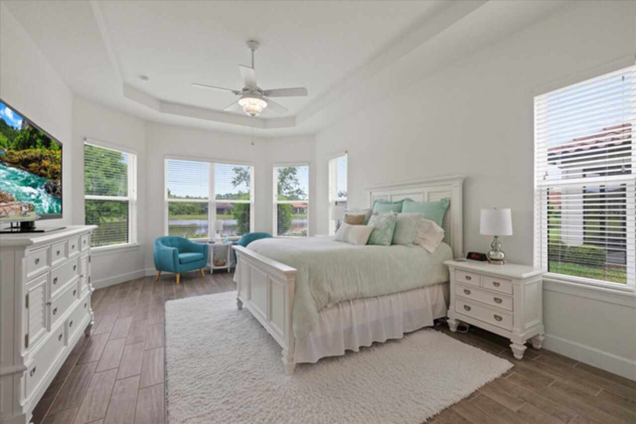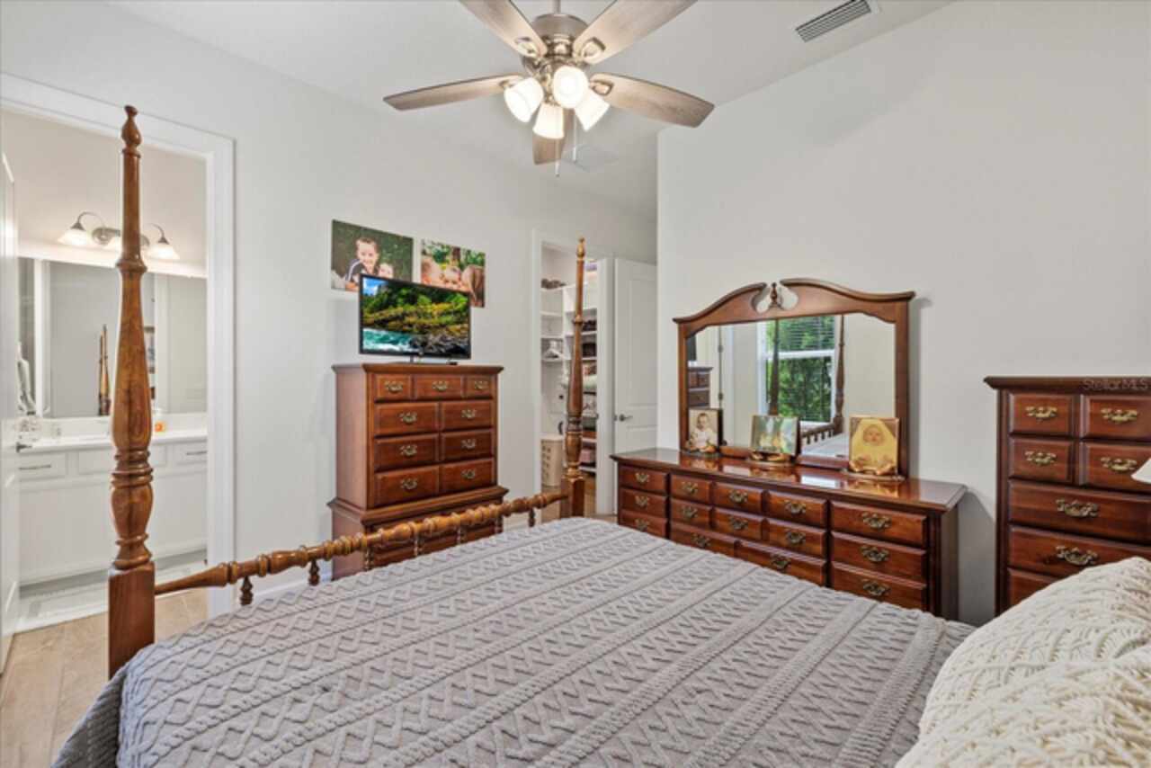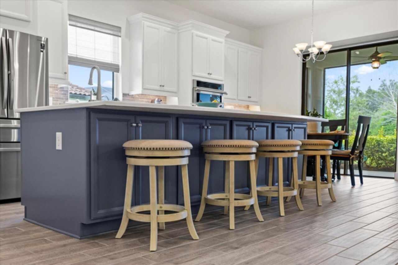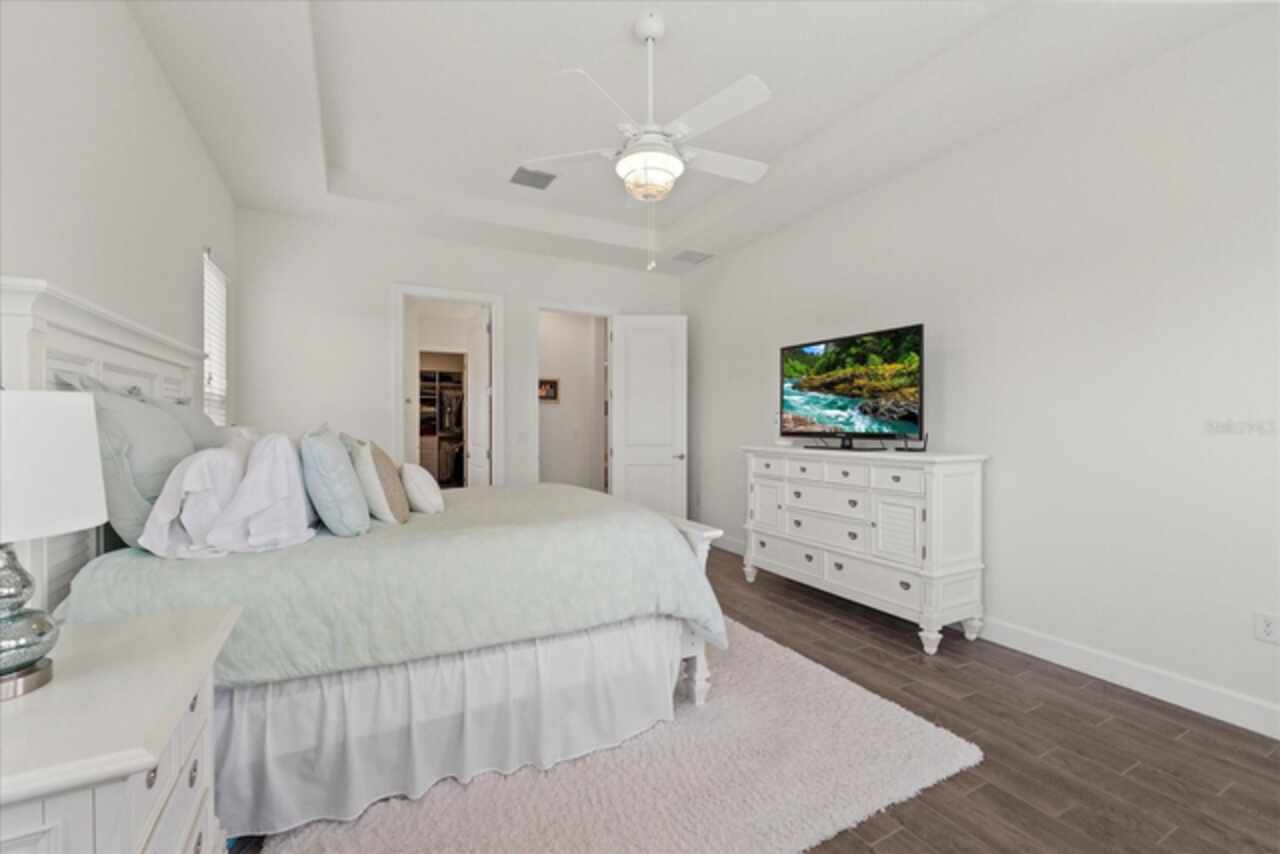 Welcome to this stunning custom-built 3BR/3BA + office home in the highly sought-after Esplanade at Starkey Ranch! Built in 2021, this immaculate residence offers a spacious open floor plan with 10’ ceilings, 8’ solid wood doors, upgraded tile flooring, and designer lighting throughout. The gourmet kitchen boasts quartz countertops, a Monogram appliance package ($10, 000 upgrade), microwave/convection oven combo, farmhouse sink, large island with prep sink and knee wall cabinetry—ideal for entertaining. Enjoy flexibility with a dedicated office/craft room that can easily function as a 4th bedroom, and unwind in the luxurious primary suite featuring a sitting area with water views of the pond, custom closet shelving, and spa-style bath with dual rain shower heads. Smart-home ready with pre-wired internet, cable, central floor outlets, and pendant lighting options. Step outside to your screened lanai overlooking a premium water view lot—already pre-plumbed and pre-wired for a future pool. Additional upgrades include motorized with remote control shades on sliding doors out to lanai, hurricane shutters, a hurricane-rated front door and window, aluminum gutters, tandem garage, and a pre-wired smart-home package. Located in a vibrant, amenity-rich gated community close to parks, trails, and top-rated schools—this home truly has it all! Monthly HOA fee covers: Plant and tree replacement, landscaping, lawn care, sprinkler system, trash pickup, PLUS common areas, pool and amenity center.
