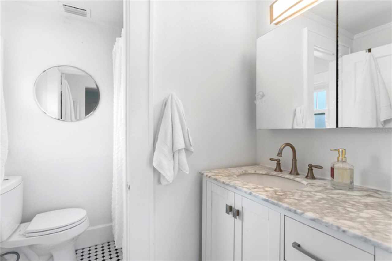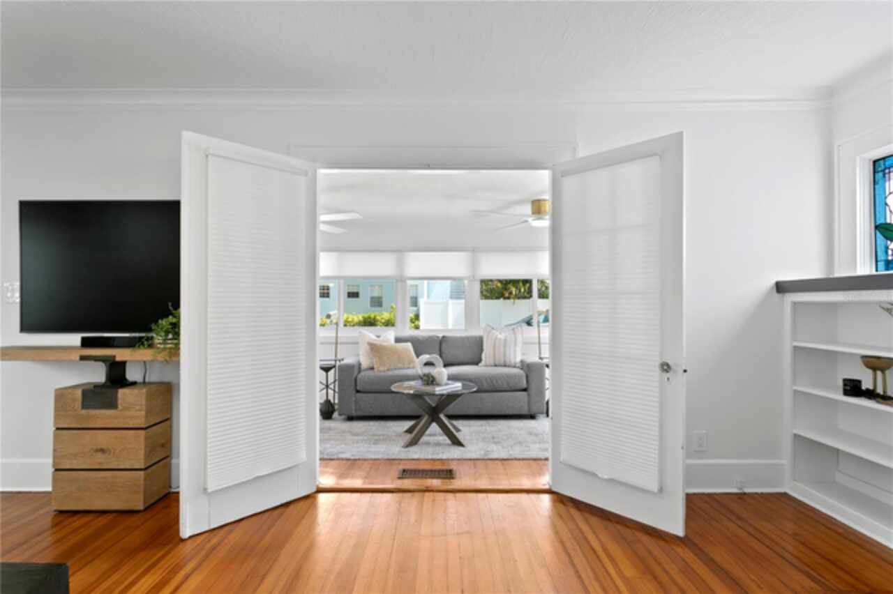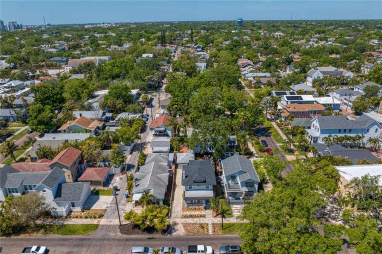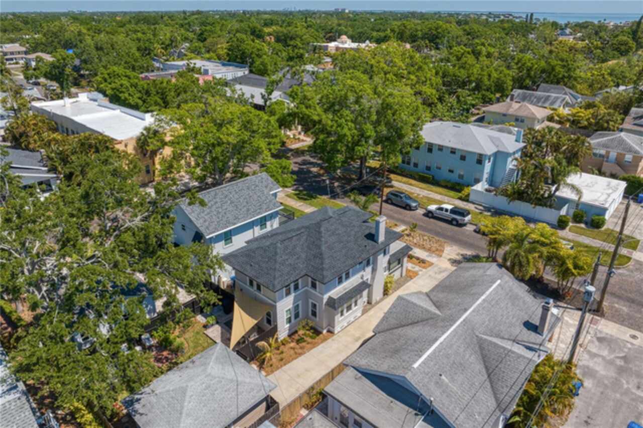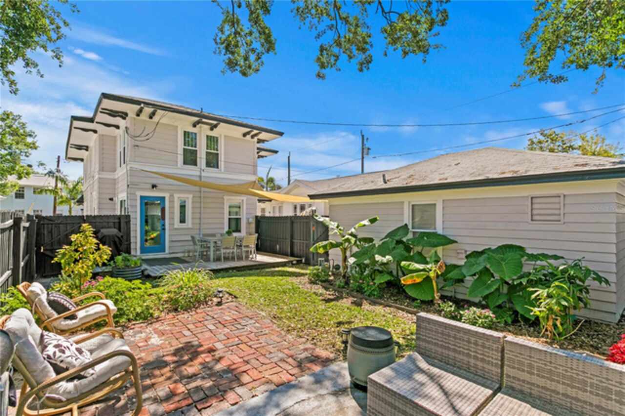 This beautifully updated three bed plus a den, three bath, two-story bungalow offers a rare combination of historic charm, thoughtful modern upgrades, and a prime location in one of St. Pete’s most walkable and desirable Old Northeast neighborhood. Ideally located just four blocks from the waterfront at North Shore Park and seven blocks from the vibrant heart of downtown, this home puts you within easy reach of Beach Drive, the Pier, Tampa Bay, and endless shopping and dining options. The curb appeal makes an immediate impression, and inside, rich original hardwood floors and natural light set the tone for a space that feels both warm and refined. The front sunroom offers flexible functionality as a den, home office, or additional guest space with a sleeper sofas set upThe dedicated dining room flows seamlessly into a fully remodeled kitchen, featuring premium 2023 upgrades like a Viking gas range, new cabinetry, granite counter tops and a large walk-in pantry—ideal for any level of home chef. Upstairs, a split floor plan creates privacy between the primary suite and guest bedrooms. The primary bedroom includes an ensuite bath, while the updated guest bath sits conveniently between the bedrooms.Every major system has been thoughtfully upgraded for peace of mind: a new roof & new ductwork (2024), new impact-rated storm windows(2020), fully repiped plumbing (2020–2021), a tankless gas water heater (2017), new AC compressor (2021), water softener (2021), and an EVcharger outlet (2022). Step outside to a large fenced backyard with plenty of room for entertaining, play, gardening, or even a future pool. The detached one-car garage includes its own electrical panel, gas line and water access, offering flexibility for apotential guest suite, home gym, or creative studio. (architectural designs included). Additional updates include a new irrigation system, fresh landscaping with a charming herb garden, new light fixtures, ceiling fans, and electrical outlets throughout, as well as new paint inside and out. All window treatments have beenupdated with stylish top-down, bottom-up shades. As a major bonus, this home is not in a flood zone, saving you thousands each year oninsurance and “NO HURRICANE” damage. Opportunities like this don’t come often, where every detail has been considered, every upgrade already done, and the best of St.Pete is right outside your door. Come experience the charm, comfort, and convenience of Old Northeast living at its finest.