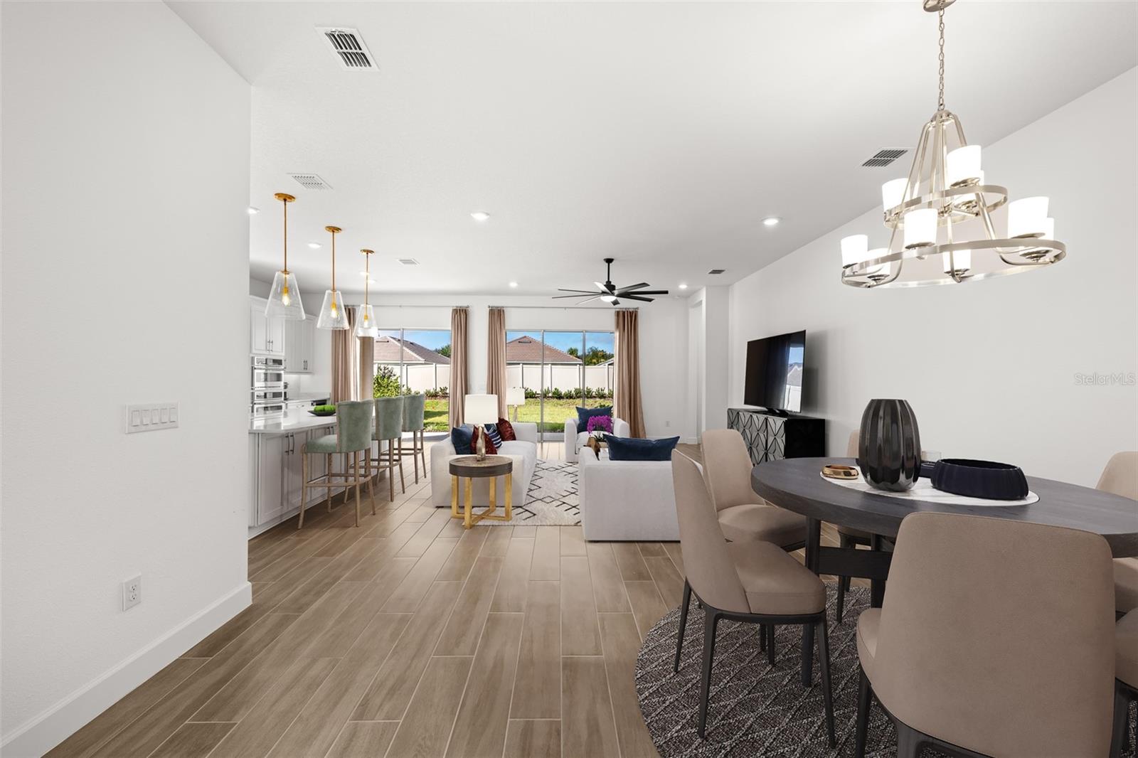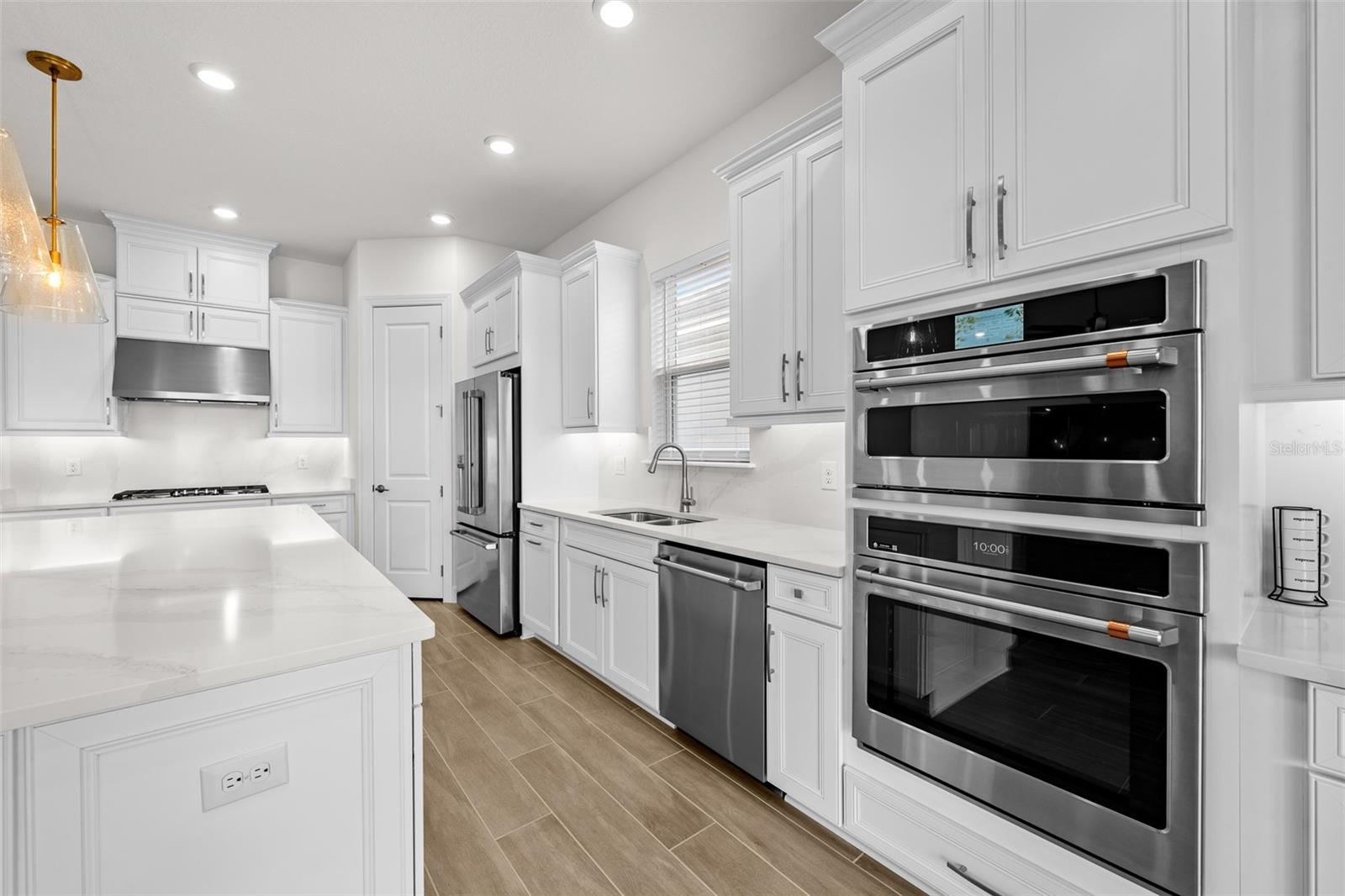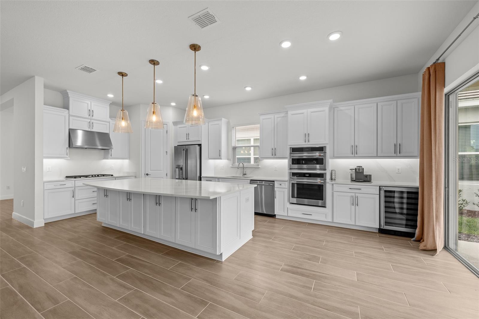 Under contract-accepting backup offers. Discover unparalleled luxury and modern convenience in this stunning three-bedroom, three-bath home in the sought-after gated community of Esplanade North at Artisan Lakes. With over $160, 000 in additional upgrades to the base model of the home, go inside and be greeted by soaring 10-foot ceilings and impressive 8-foot doors throughout that create a grand, open atmosphere. The heart of the home is a gourmet kitchen featuring sleek Silestone quartz counters and backsplash, and the highest-level cabinetry package offered with crown molding, underlighting, decorative trim work and soft-close features. This chef's dream includes a high-end GE Café appliance package with built-in convection oven, microwave, wine fridge, gas cooktop, and a custom stainless steel range hood, all complemented by an oversized island with extra storage, and dry bar/coffee bar added with the builder’s casual dining extension upgrade bundle. Every bedroom offers the privacy of an en suite bath, including the primary suite which boasts an oversized closet and a luxurious walk-in shower with frameless glass, floor-to-ceiling horizontal dark gray tile, and Pebblecycle mosaic floor tile. Thoughtful design is evident throughout, from the elegant tray ceiling with crown molding in the foyer, to the versatile flex room area adjacent to the dining space which could be utilized as an office or playroom. Enjoy a seamless flow of wood-like ceramic tile flooring throughout, an oversized laundry room with striking dark blue cabinetry and blue accent tile flooring, and a commitment to modern efficiency with a tankless water heater and zoned irrigation system. Outdoor living is perfected on the extended covered lanai, pre-wired for electronics. Additional upgrades include a frosted glass entry door, upgraded exterior flood lights, and a Vitex smart home security system. This spectacular residence comes complete with a tile roof, an attached oversized two-car garage, custom garage attic stairs, additional flush-mounted LED can-lighting throughout the interior and exterior of the home, and the thoughtful addition of a pocket door separating the front bedroom suite. Living in Esplanade North means enjoying a resort-style lifestyle within the larger Artisan Lakes master-planned community. The Esplanade subdivision is a gated portion of the community where residents benefit from a wealth of world-class amenities centered around a lavish clubhouse, which features social spaces and a dedicated full-time lifestyle manager who organizes community events and activities. Key amenities designed for an active and social life include a resort-style pool with a spa and an additional resistance pool, a fully equipped fitness center, an aerobics/dance studio, and a day spa offering massage treatment rooms, multiple courts for tennis, bocce ball, and pickleball, a clubhouse with gathering space, a catering kitchen, a fire pit area for evening socializing, miles of scenic walking and biking trails, and a dedicated dog park for pets. All this, with easy access to Interstate 75 for drives to Tampa, St. Petersburg, Sarasota, as well as the finest beaches the Gulf side has to offer.