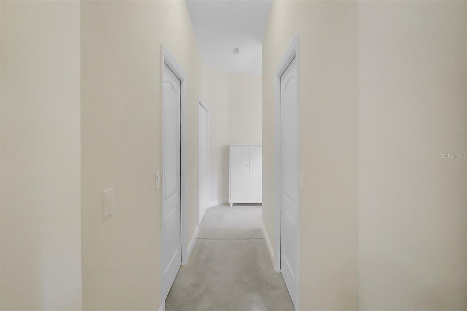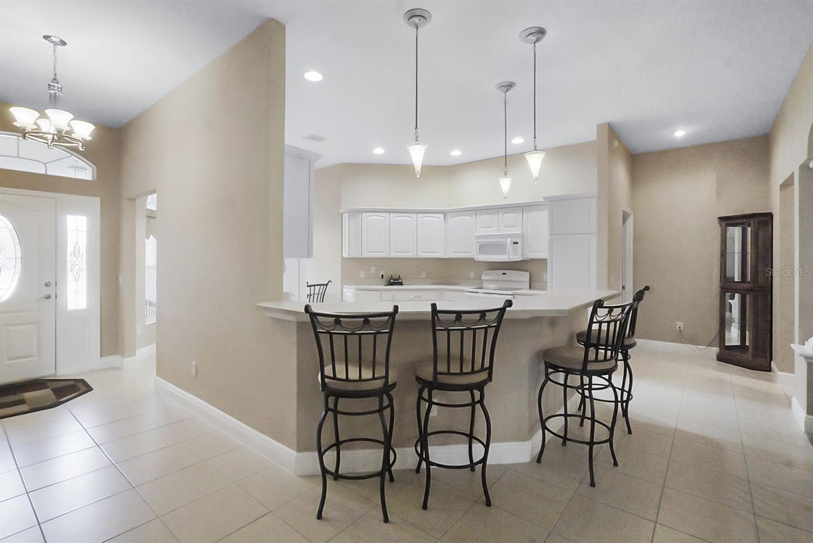 Under contract-accepting backup offers. BOND PAID! RARE ALL BLOCK AND STUCCO NEIGHBORHOOD in the Village of Largo! This Gardenia floor plan sits on a desirable corner homesite with plenty of room for a future pool or birdcage. From the moment you arrive, you’ll notice the curb appeal with red lava rock in the flower beds, decorative Curb-It, and landscaping in that frames the home beautifully. Step inside and enjoy volume ceilings, an open split floor plan, and a home so immaculate it has been lovingly nicknamed “Mrs. Clean’s.” The kitchen features White Bay cabinetry, a glass smooth-top range, and crisp Formica countertops. Major updates have already been taken care of, including a roof replacement in 2020, exterior paint in 2025, hot water heater in 2024, dishwasher in 2025, and a sprinkler tune-up in 2023. The enclosed lanai under heat and air is a great place to unwind after a long day of playing in the community. Tile flows through all wet areas, and the versatile third bedroom without a closet is perfect for an office, den, or guest space. The primary suite offers dual closets and dual vanities. Best of all, this home is located just minutes from Lake Sumter Landing Market Square, where you’ll enjoy nightly live entertainment, waterfront dining, boutique shopping, and the true heart of The Villages lifestyle.