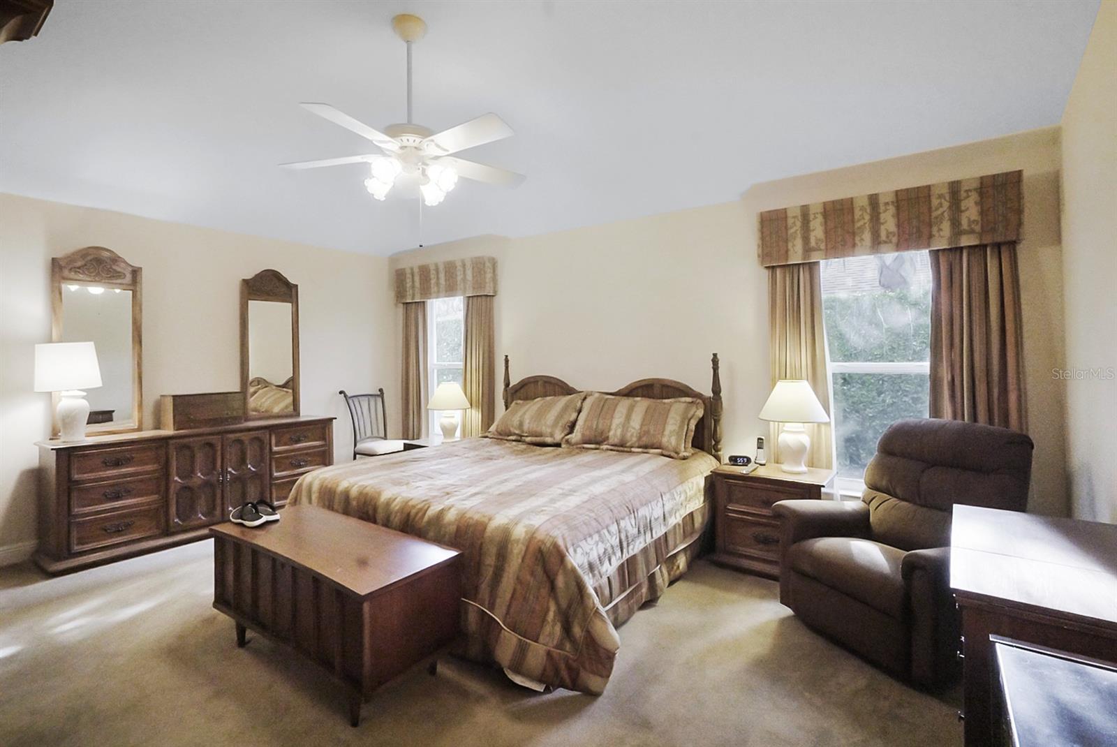 Cathedral Ceiling(s), Ceiling Fans(s), Eat-in Kitchen, High Ceilings, Living Room/Dining Room Combo, Open Floorplan, Primary Bedroom Main Floor, Split Bedroom, Thermostat, Walk-In Closet(s)