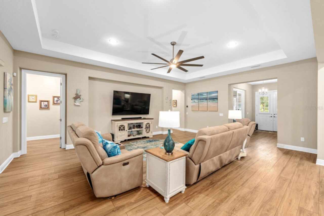 Gorgeous 2022 Sabal Homes custom-built beauty, located in the highly-coveted gated neighborhood of Hidden Reserve in Brandon, off John Moore Rd. This 4/4 dream home is the epitome of sophistication and high quality blended with comfort and luxury. The unique, 4-way-split floor plan ensures each bedroom has its own full bathroom AND walk-in closet, and the spacious Great Room and Kitchen are perfectly thought out for entertaining. A huge Bonus Room is tucked away in the back of the home...an ideal space for games, movies, crafts, or paired with the adjacent bedroom & bathroom, it could serve as a 5th bedroom. As you enter the front foyer, there is a large Office with FRENCH DOORS to your right, and straight ahead through the TRIPLE sliding doors, is a glorious view of the beautiful POOL & SPA! You’ll appreciate all of the extra finishes that this home boasts....high-end LVP flooring throughout the main living areas and bedrooms, 10' ceilings, 8’ tall doors everywhere, 5-1/4" baseboards, and lighted ceiling fans with remotes in every room. The expansive Chef’s Kitchen features everything you’d expect in a luxury home...stylish QUARTZ countertops in the kitchen and all 4 bathrooms, a plethora of creamy custom 42” cabinets with soft-close, under-lighting and crown molding, sleek STAINLESS appliances with a gas stove top and stylish RANGE HOOD, a massive WALK-IN PANTRY with a SECOND FRIDGE, and a dining area that looks out to the pool and lanai. Retreat to the lavish Primary Suite where your private SPA-LIKE ensuite awaits. Enjoy a double-sink vanity with ample storage under the long, sleek QUARTZ COUNTERTOPS, an extra-long walk-in shower with DUAL SHOWER HEADS, a modern stand-alone SOAKING TUB, large linen closet, and a spacious water closet with a privacy window. The spacious Primary Suite also features TWO LARGE WALK-IN CLOSETS and a sitting area to lounge and relax. Out back, the expansive, covered lanai overlooks the custom-designed saltwater pool with a sunshelf and a jacuzzi spa. ADDITIONAL UPGRADES & FEATURES include: All Ecobee security cameras, equipment, thermostat, and Ring Doorbell will stay; NATURAL GAS for your appliances, pool and gas grill; water softener & carbon purification system; R/O for under the sink and fridge water; spacious Laundry Room with cabinets, storage shelves, and a vanity utility sink; TANKLESS hot water heater (2022); Great Room tray ceiling; LED lighting throughout the home and in the pool; pebble-tec saltwater pool; pool safety fence; floor outlets in the Great Room and Office; and a PAVERED driveway for the 3-CAR GARAGE. This METICULOUSLY well-kept home feels brand new, and with all the high-end finishes and unique floor plan, you’ll enjoy the perfect blend of privacy, style, and functionality! BONUS....Roof (2022) HVAC (2022) as well as everything else in the home! 10 minutes to I-75 and the Crosstown....30-40 minutes to Downtown Tampa and Tampa Int’l Airport, and minutes from dozens of restaurants, shops, Walmart, Home Depot, Publix, Downtown Brandon, and much more!