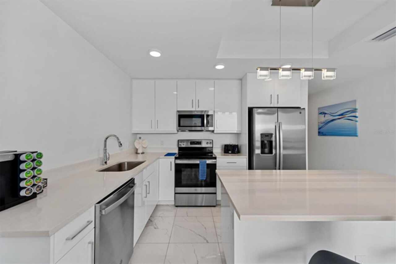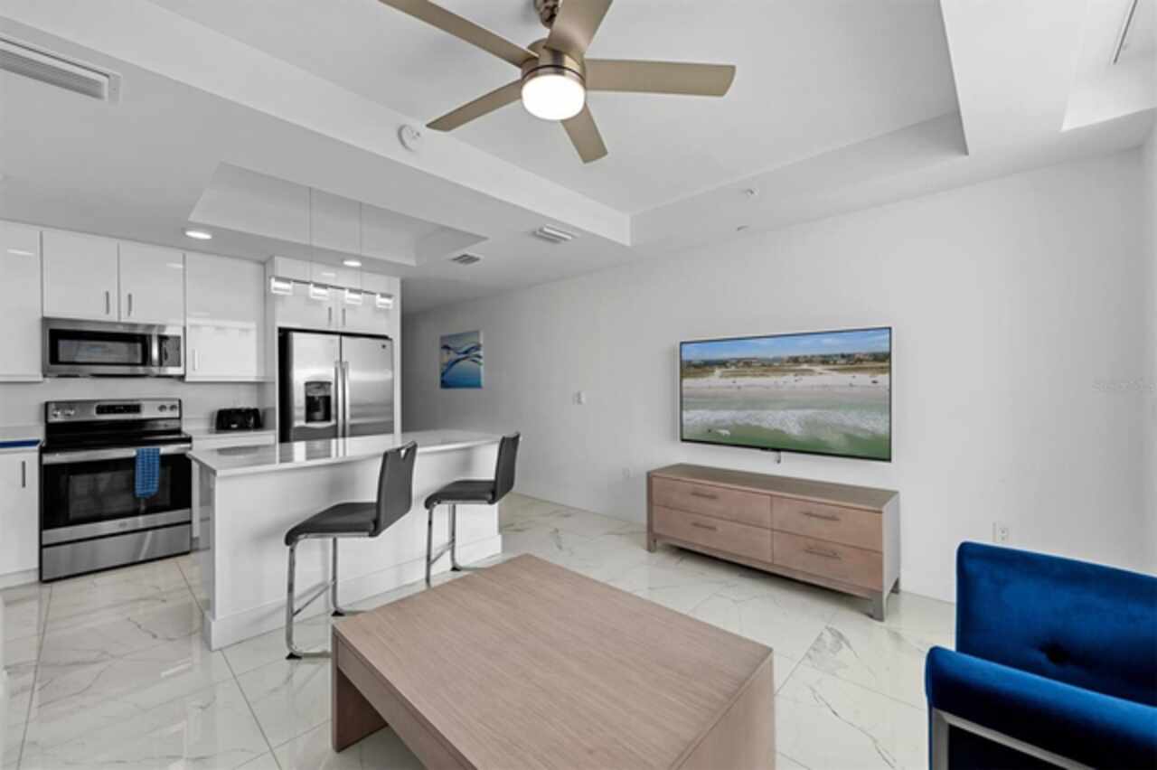 This beautiful top floor (6th floor) unit offers an amazing view of the Gulf of Mexico. The“PENTHOUSE LEVEL” elevation creates tangibly improved incredible & sweeping views. This top floor elevation eliminates all visual obstruction between you, the sand & the waves of the Gulf by virtue of towering above the palm trees & dunes of the exceptionally wide Treasure Island beach. The building was recently completed in October 2023. A front and center TOP floor 2-bedroom, 2 full bath with a Spacious balcony. Fully furnished, elegantly decorated with a modern and positive vibe and style. In-unit is a full-size washer/dryer, marble flooring throughout the living are, sleeper-sofa, comfortable LED lighting, all "TURNKEY" and ready to generate income. On the second-floor there is a sports bar, gym, large swimming pool and SPA, beach lounge area, & ROOFTOP LOUNGE. Just perfect! PET FRIENDLY. The Ocean Club has Ample covered & open parking (garage spot with purchase), 24-hour concierge, The proven rental management team & housekeeping are both located ONSITE. You will have an option to continue to utilize the on-site management. Schedule your showing between guest arrivals.