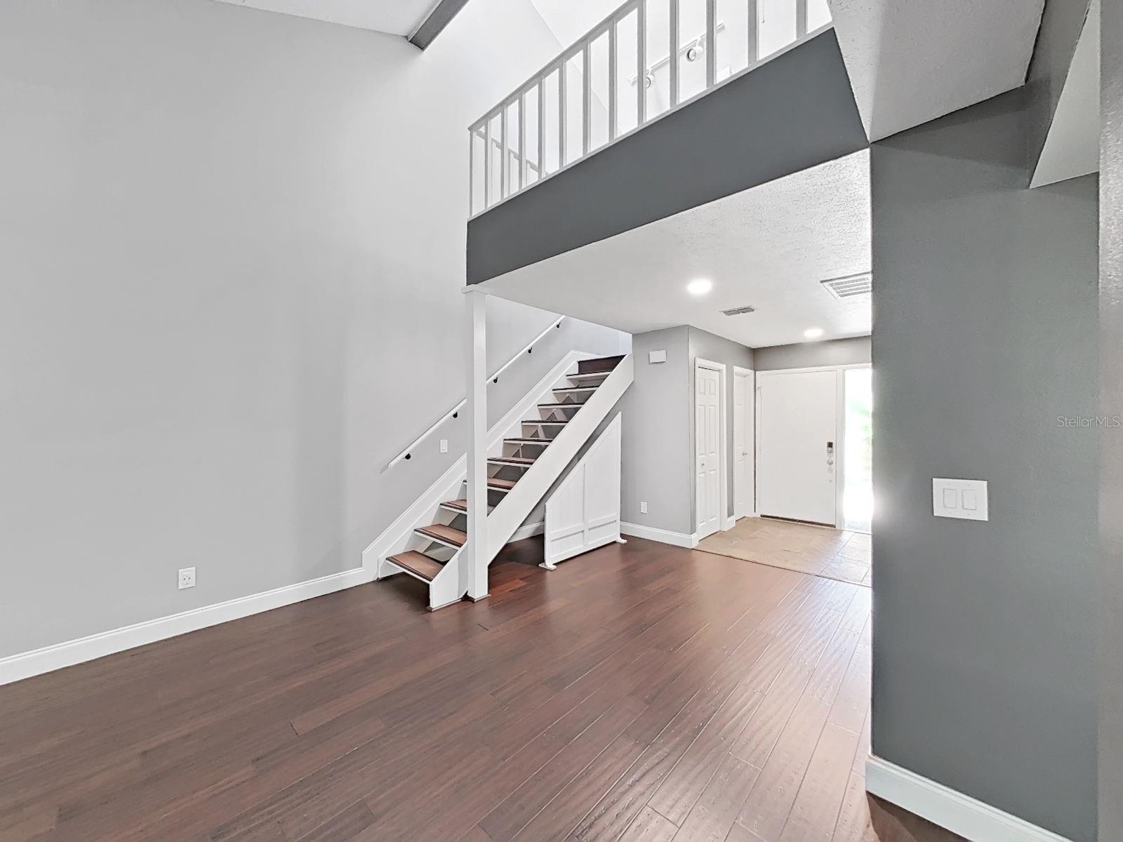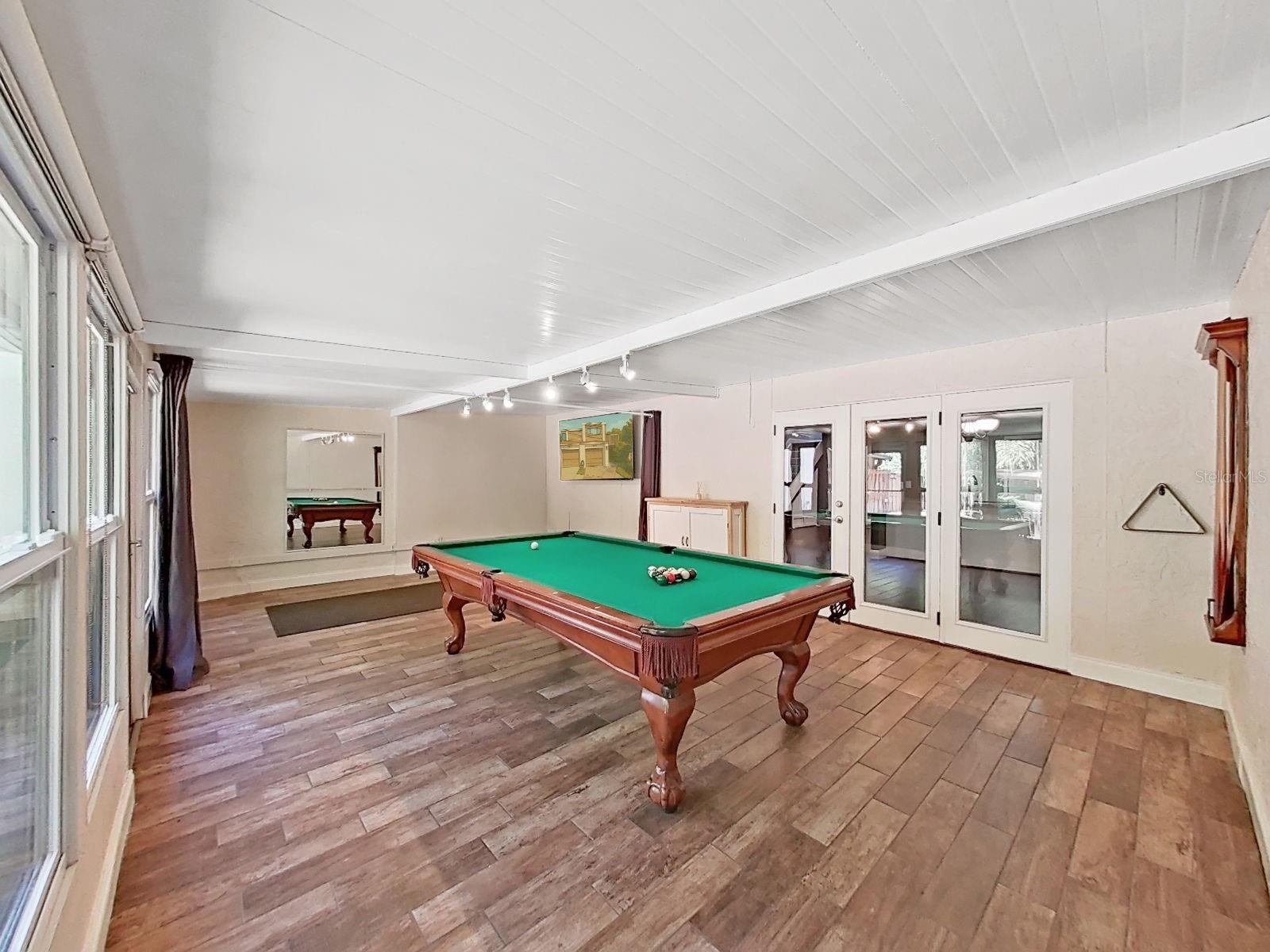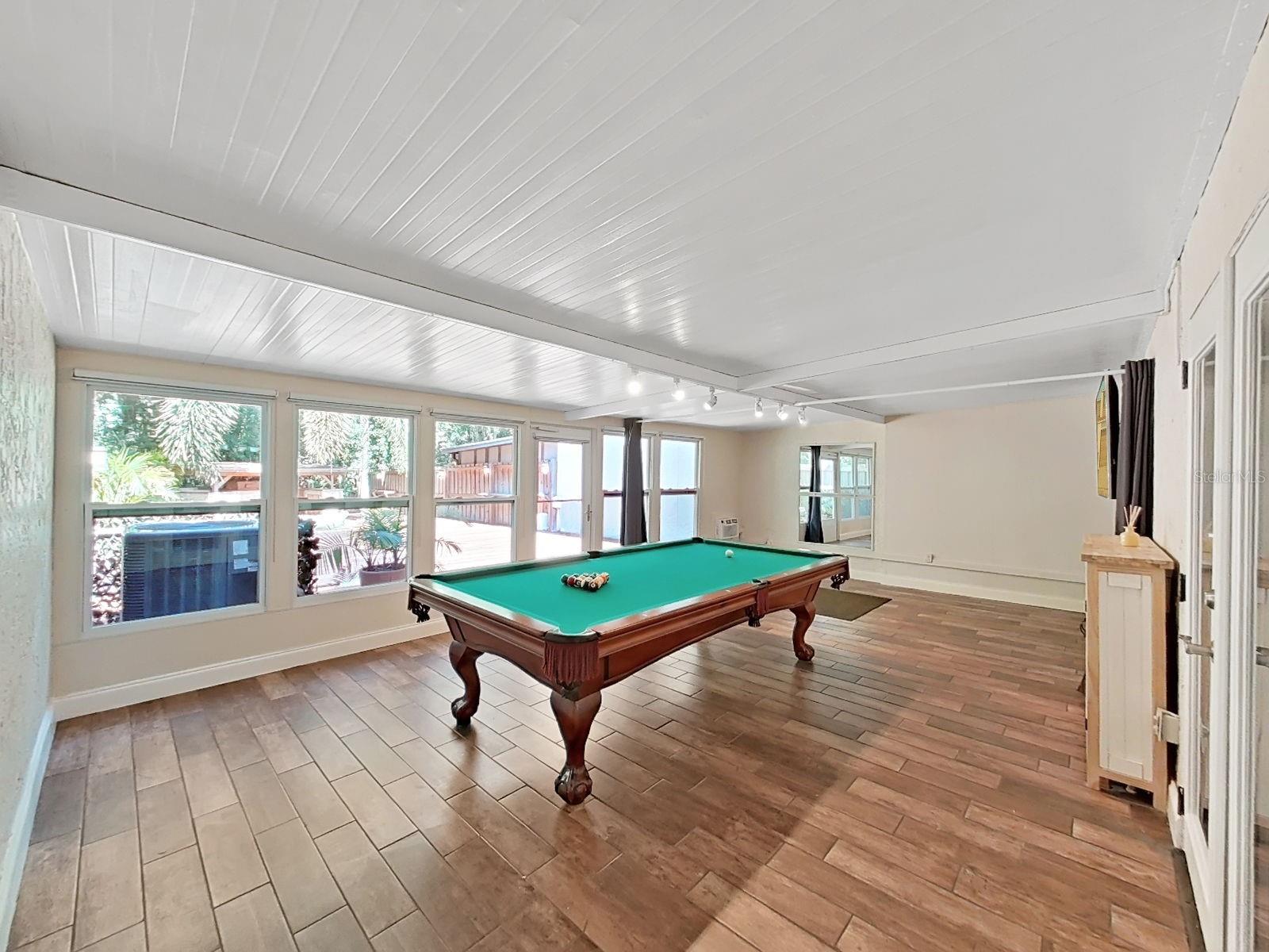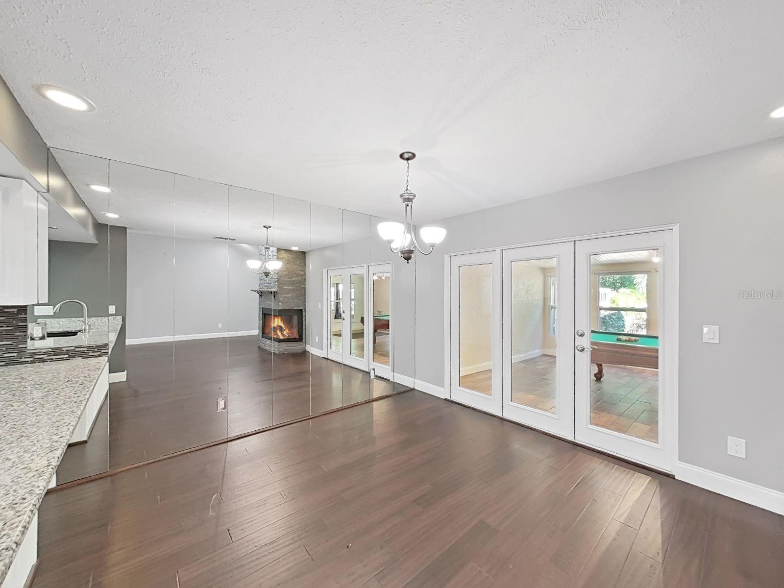 One-of-a-Kind Modern Townhome with Stunning Outdoor Oasis. Discover this completely updated and move-in-ready 2-bedroom, 2-bath townhome with loft, game room, and 1-car garage, perfectly situated in the desirable Galleria Townhome community. Nestled on a quiet conservation lot with no rear neighbors, this home offers exceptional privacy and beautiful wooded views The open floor plan features soaring ceilings, transom windows, a modern stone fireplace, fresh paint, and designer finishes throughout. The kitchen is a chef’s delight with stainless-steel appliances, a state-of-the-art French door refrigerator, a large pantry, and opens to dining area with Sliding glass doors that lead to the enclosed 384-sq-ft porch, currently set up as a game room with its own A/C unit—perfect for entertaining year-round. Upstairs, you’ll find 2 spacious en-suite bedrooms and a versatile loft ideal for an office, media, or den. The primary suite impresses with a dual-sink vanity, large walk-in closet, and private balcony. Step outside to your outdoor paradise to a 762-sq-ft wood deck designed for ultimate Florida living. Enjoy multiple seating areas surrounded by palm trees and ambient outdoor lighting. The fully equipped outdoor kitchen cabana features built-in gas burners, grill, flat grill, ice cooler, sink, and a bar area—all beneath a unique retractable roof with integrated lighting and electrical hookups. This exceptional property combines modern updates, flexible living spaces, and resort-style outdoor amenities—all in a prime central location. This unique property will not last long. Schedule your tour today.