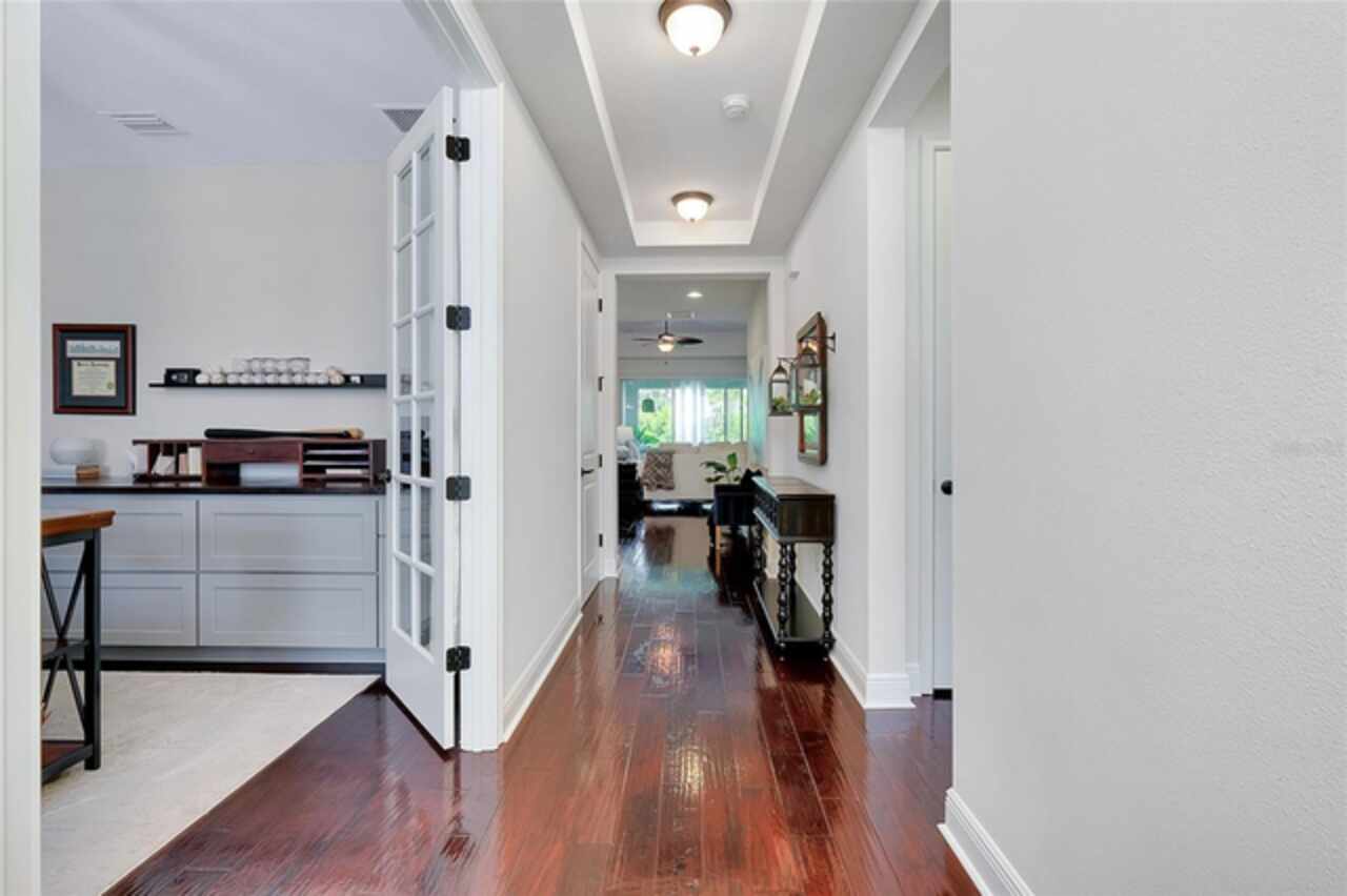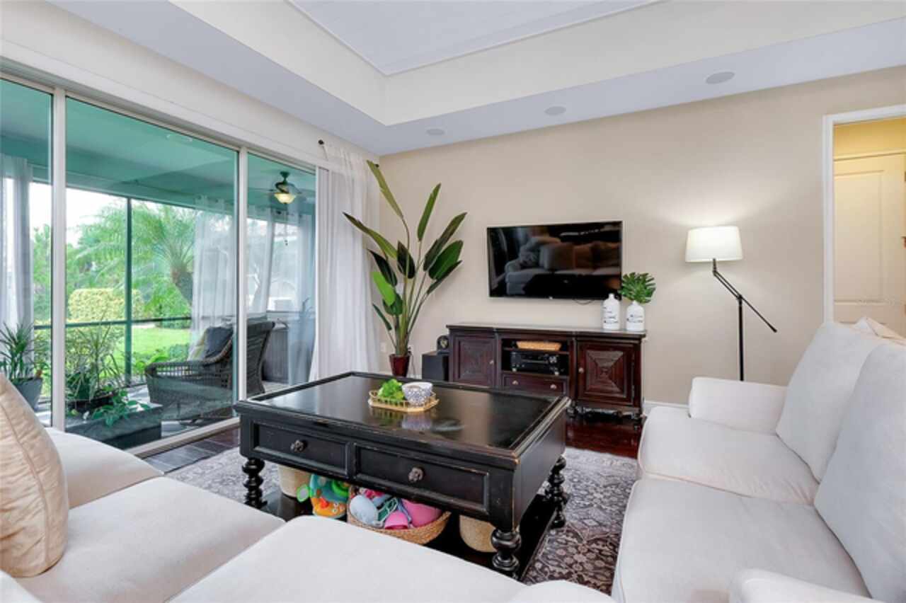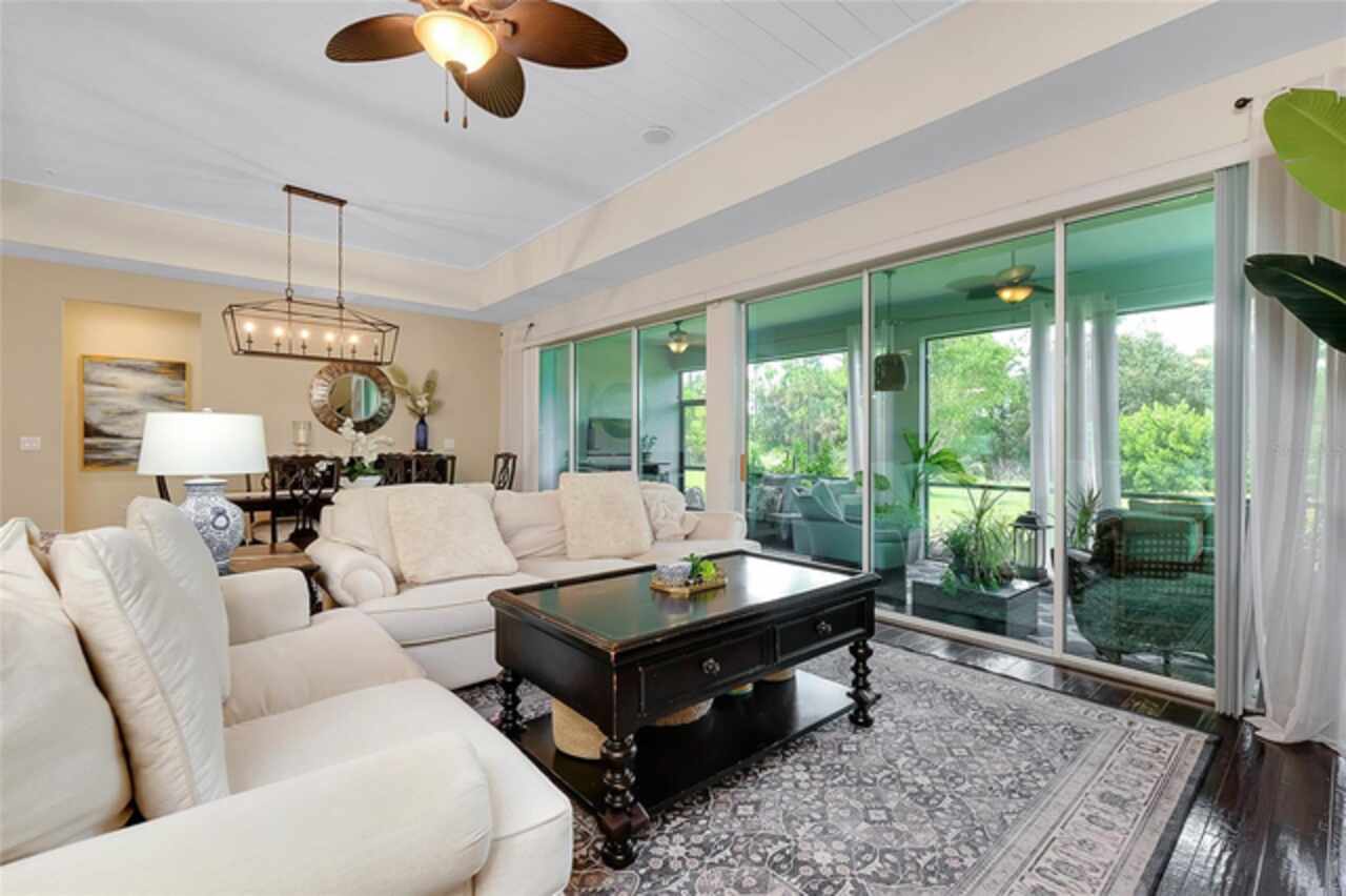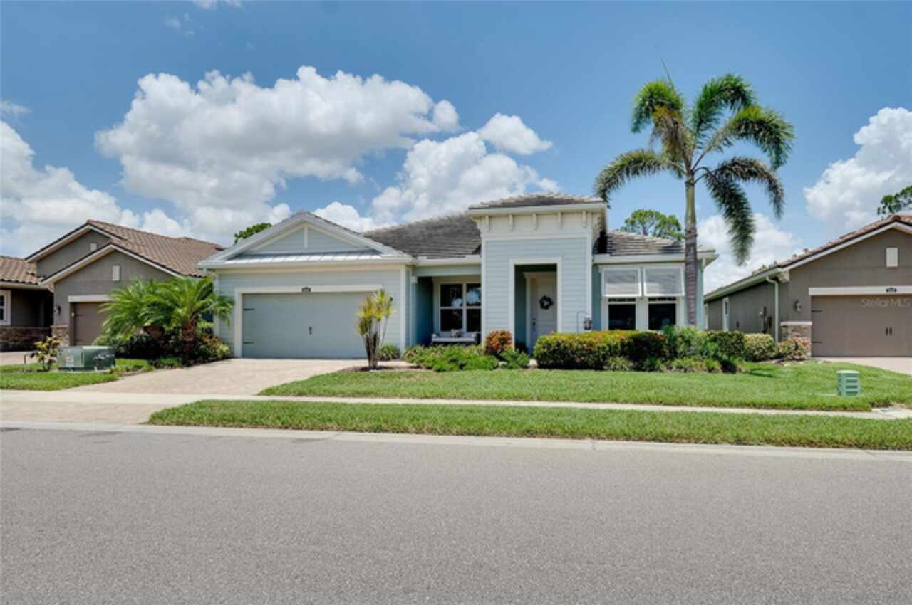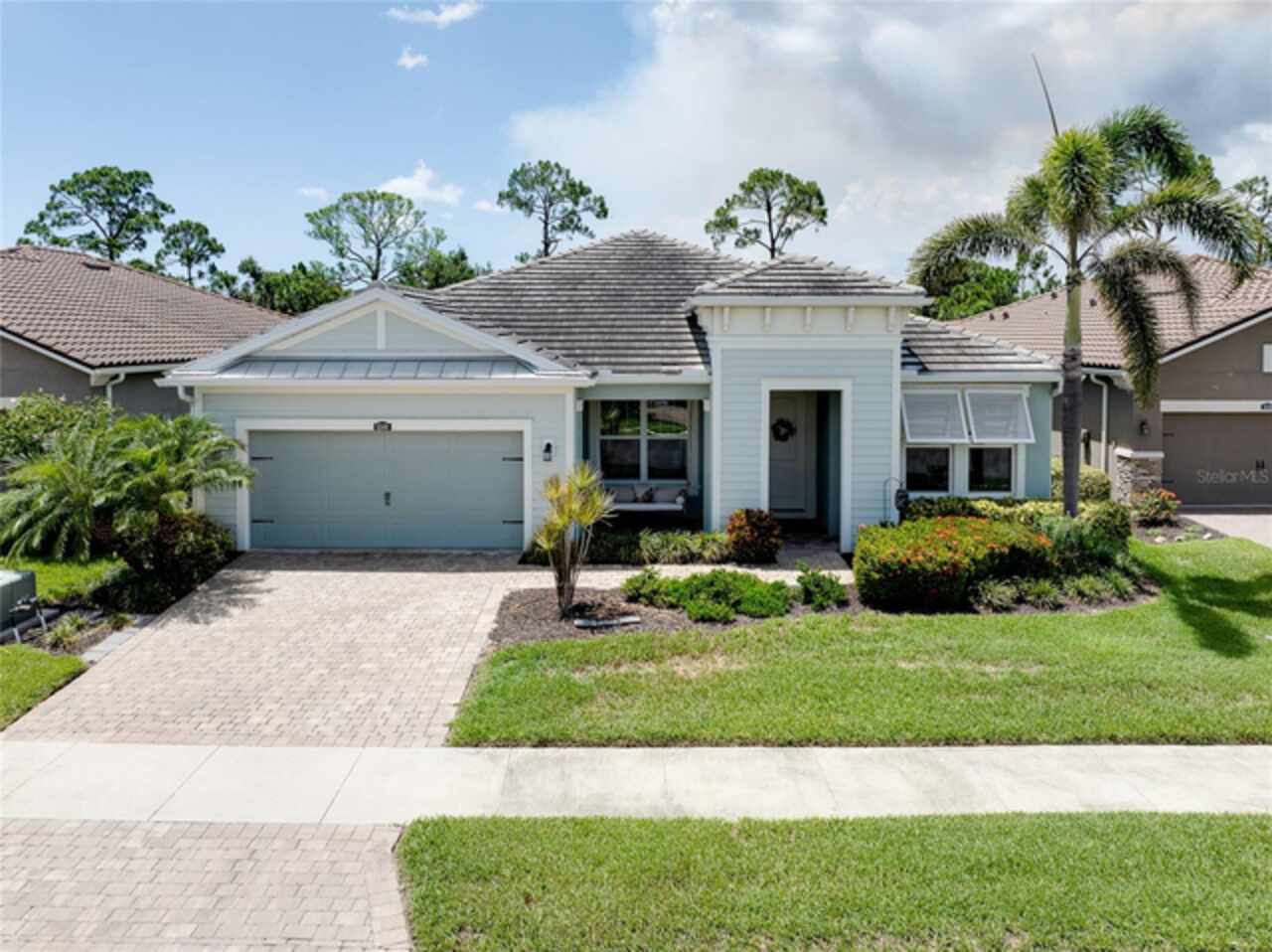 This Hampton model in the Renaissance community of Wellen Park is immaculate and full of upgrades. Why wait to build and pay for enhancements already in place here. Spacious and modern, from the moment you step inside, you are immediately impressed by the space, which is highlighted by stylish lighting, designer finishes, and tons of sunlight flowing in from the large windows. You’ll adore the stunning views and well-manicured curb appeal that blend in with the mature trees and lush greenery. A bright and open living area seamlessly connects to the kitchen and dining area with hard wood flooring, meaning whether you’re watching your favorite program or hosting a meal, you’ll never be bored. The kitchen pops out with a soft white tile backsplash and boasts quarts countertops, high-quality stainless-steel appliances, plenty of cabinet space, and a good-sized island. Don't miss the high ceilings with tongue and groove tray ceilings. The entertainment space continues outside through full wall sliding glass doors to the large covered patio, where you can soak in the serene environment in your hot tub. Primary suite offers large walk in closet with direct access to laundry room, dual sinks and a generous sized walk in shower. Split floor plan featuring ensuite bathroom for one guest bedroom giving option of double primaries. The bedrooms are well-appointed and spacious, featuring BRAND NEW carpeted floors, ceiling fans, and ample closet space. Additional features of this remarkable home include office/den/flex room, 8 foot doors, smart thermostat and light fixtures, a laundry room, large pantry, and a built-in drop station off the spacious garage. Renaissance offers a resort lifestyle with full gym, expansive community pool, playground, pickle-ball, bocce ball, tennis courts, private entrance to 33 acre park, and a full time activities director. Close to everything you want and need! Braves Spring Training, Shopping, Beaches, Downtown Wellen Park, Golf and more just minutes away. FLOOD ZONE X. NO FLOOD INSURANCE REQUIRED