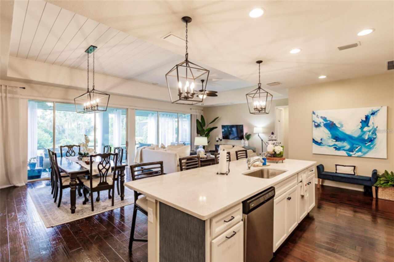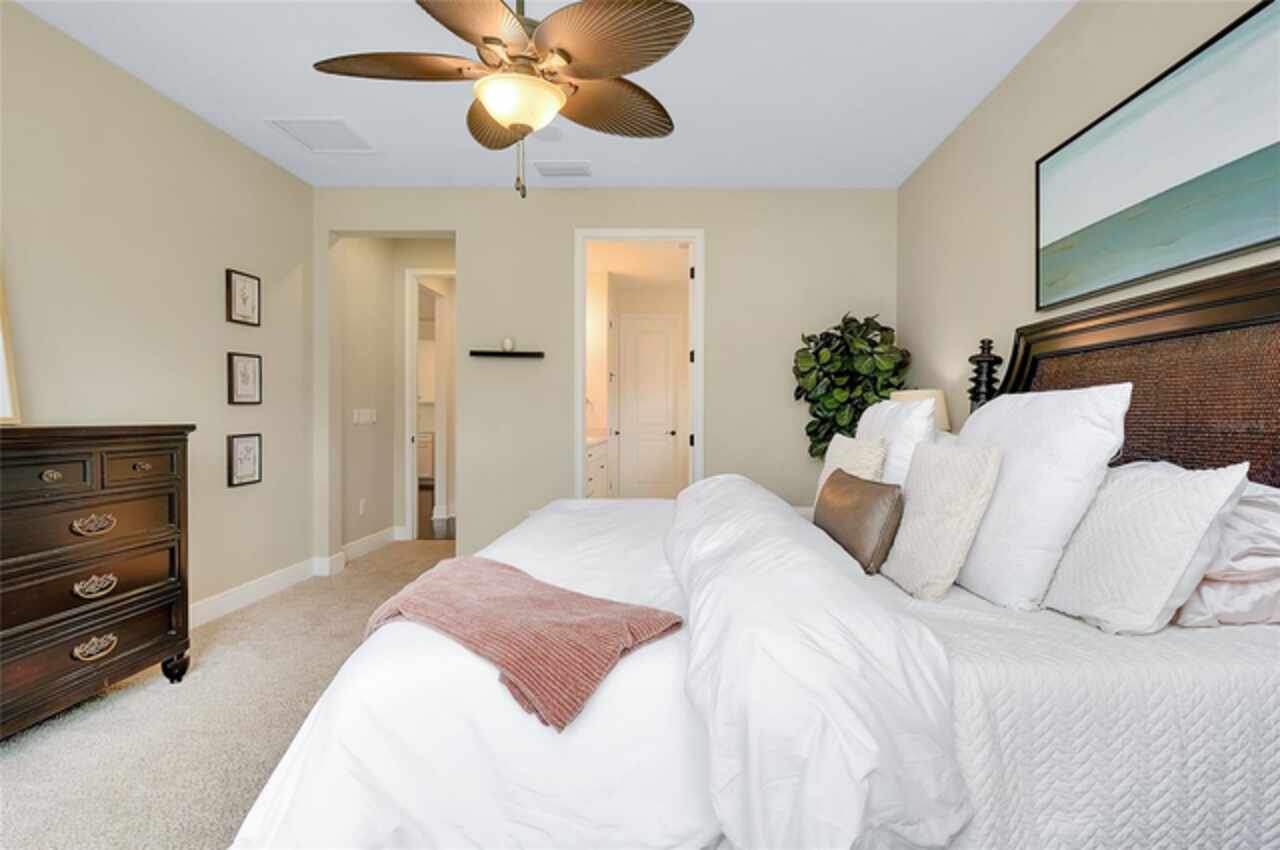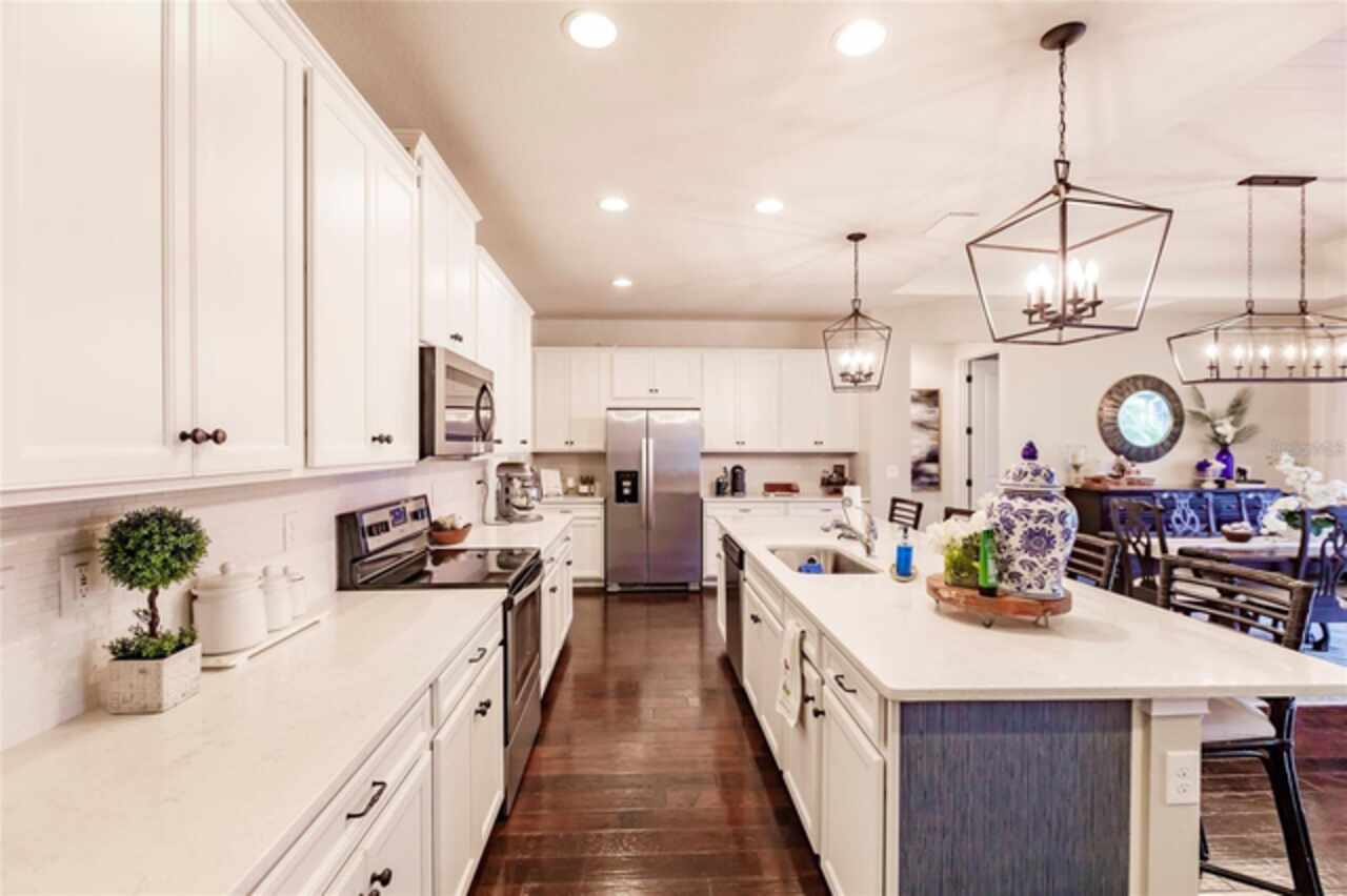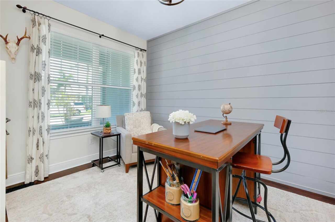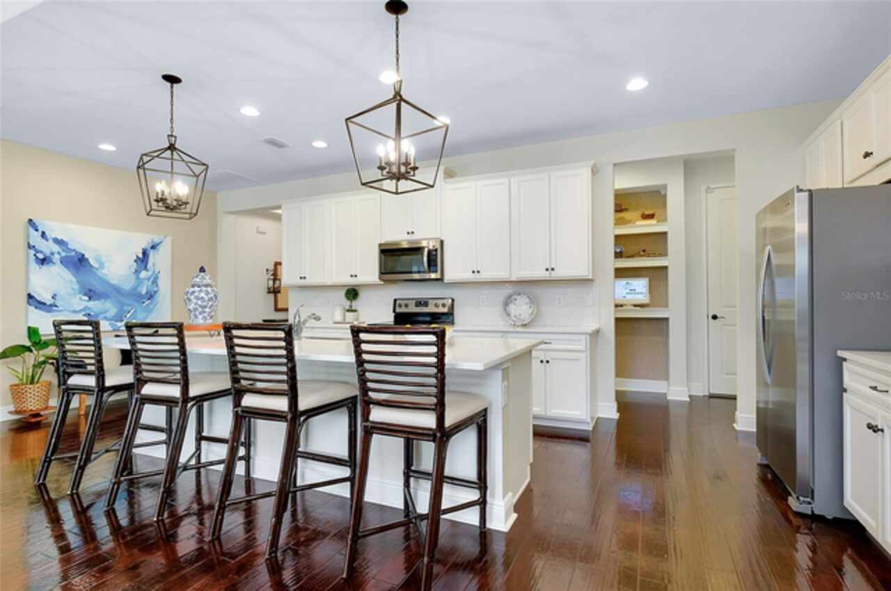 This Hampton model in the Renaissance community of Wellen Park is immaculate and full of upgrades. Why wait to build and pay for enhancements already in place here. Spacious and modern, from the moment you step inside, you are immediately impressed by the space, which is highlighted by stylish lighting, designer finishes, and tons of sunlight flowing in from the large windows. You’ll adore the stunning views and well-manicured curb appeal that blend in with the mature trees and lush greenery. A bright and open living area seamlessly connects to the kitchen and dining area with hard wood flooring, meaning whether you’re watching your favorite program or hosting a meal, you’ll never be bored. The kitchen pops out with a soft white tile backsplash and boasts quarts countertops, high-quality stainless-steel appliances, plenty of cabinet space, and a good-sized island. Don't miss the high ceilings with tongue and groove tray ceilings. The entertainment space continues outside through full wall sliding glass doors to the large covered patio, where you can soak in the serene environment in your hot tub. Primary suite offers large walk in closet with direct access to laundry room, dual sinks and a generous sized walk in shower. Split floor plan featuring ensuite bathroom for one guest bedroom giving option of double primaries. The bedrooms are well-appointed and spacious, featuring BRAND NEW carpeted floors, ceiling fans, and ample closet space. Additional features of this remarkable home include office/den/flex room, 8 foot doors, smart thermostat and light fixtures, a laundry room, large pantry, and a built-in drop station off the spacious garage. Renaissance offers a resort lifestyle with full gym, expansive community pool, playground, pickle-ball, bocce ball, tennis courts, private entrance to 33 acre park, and a full time activities director. Close to everything you want and need! Braves Spring Training, Shopping, Beaches, Downtown Wellen Park, Golf and more just minutes away. FLOOD ZONE X. NO FLOOD INSURANCE REQUIRED