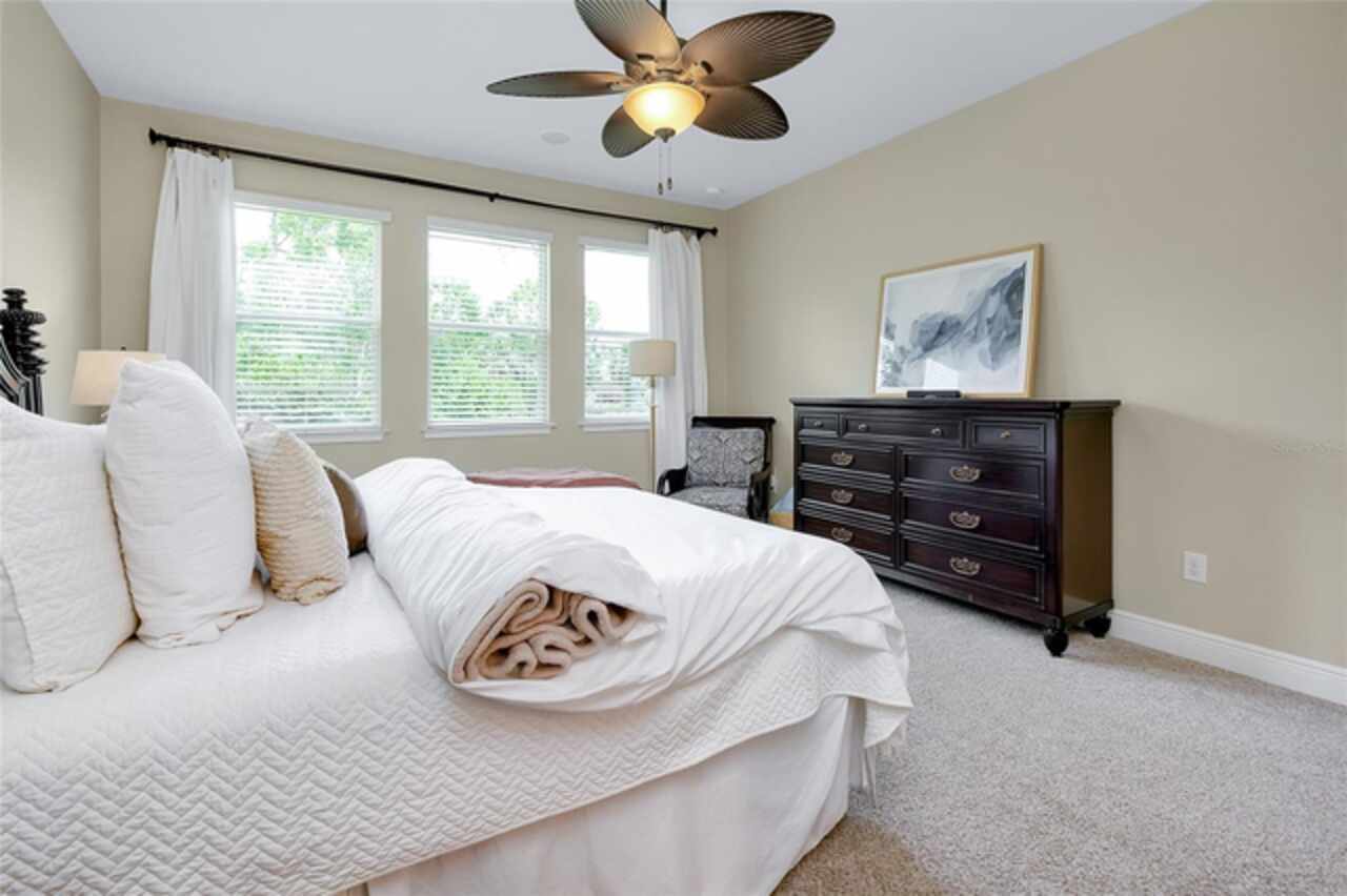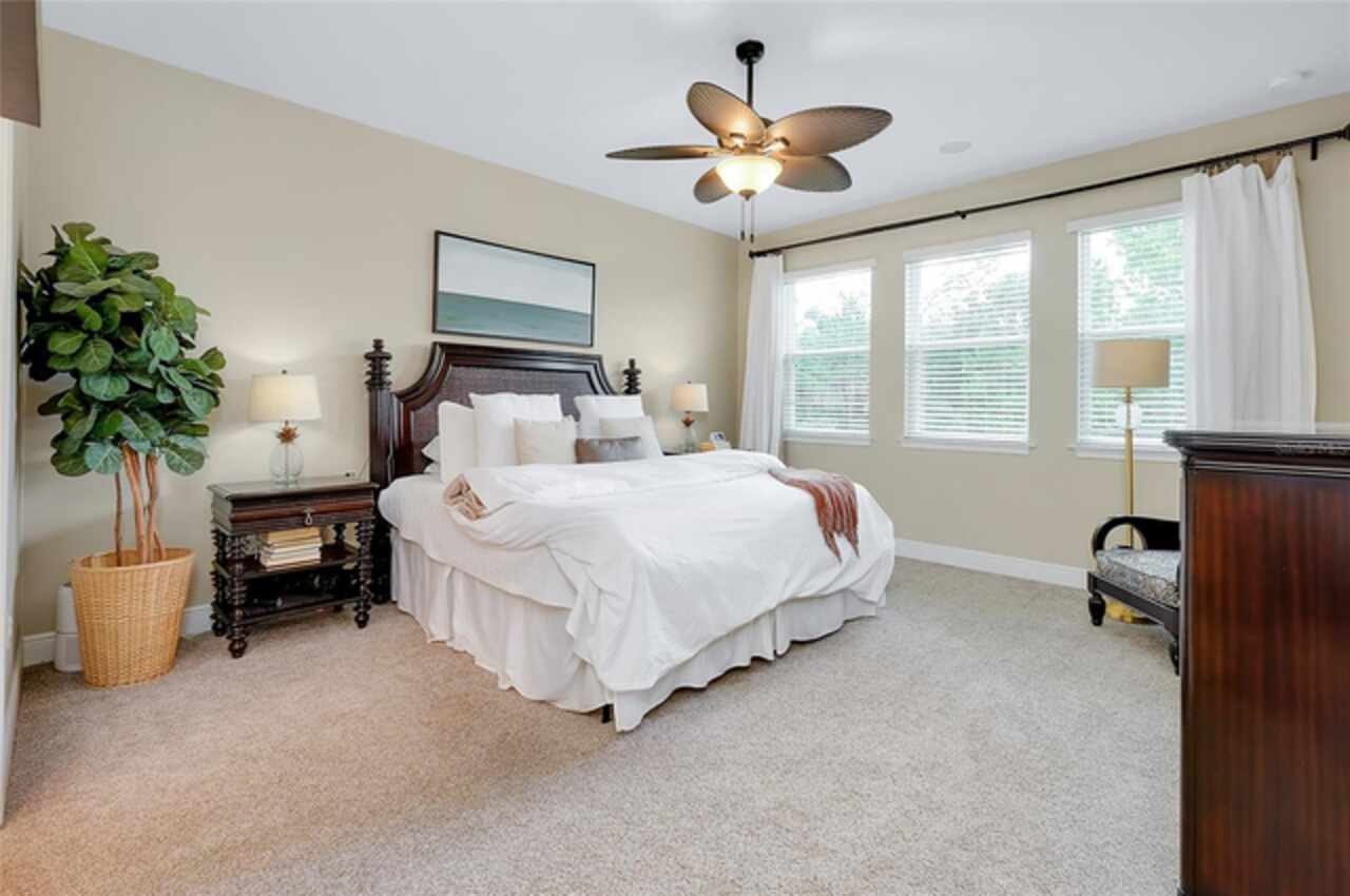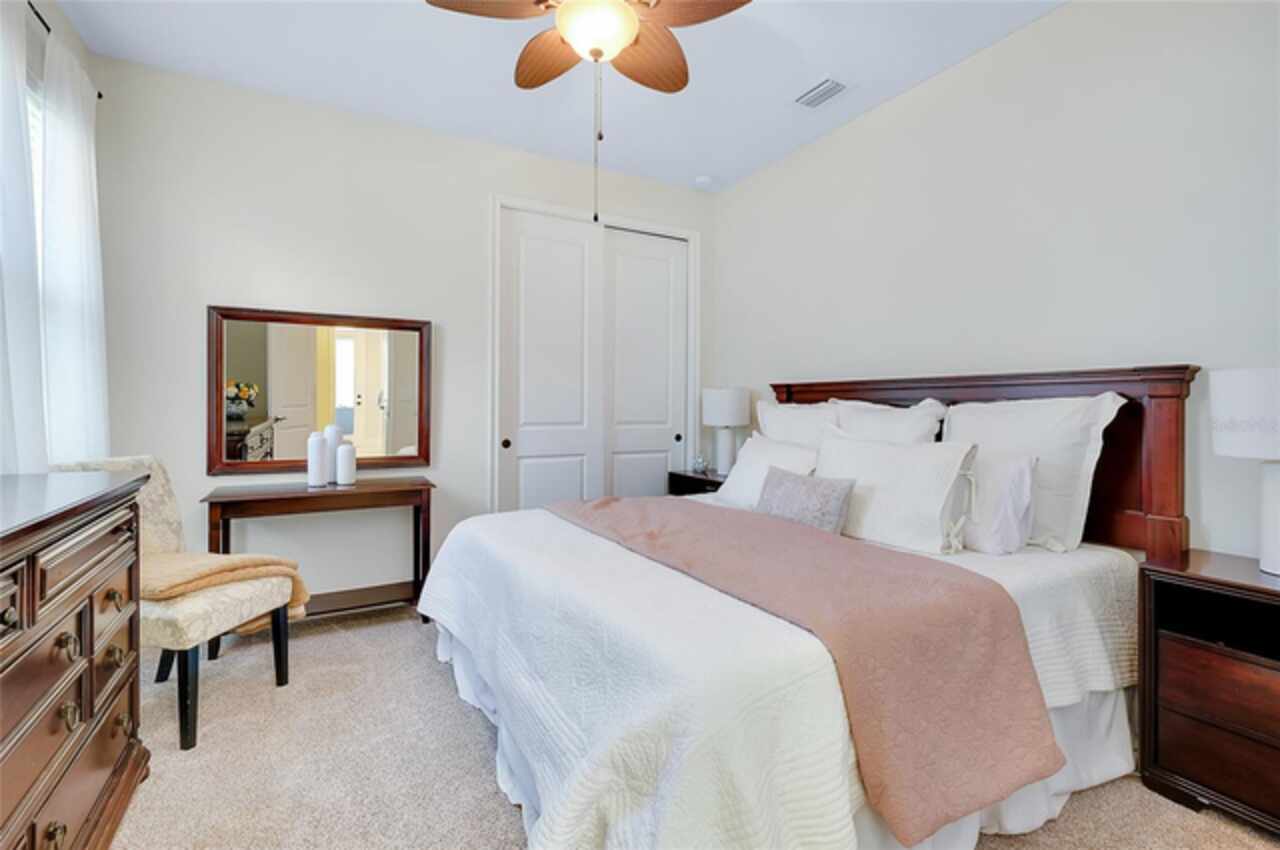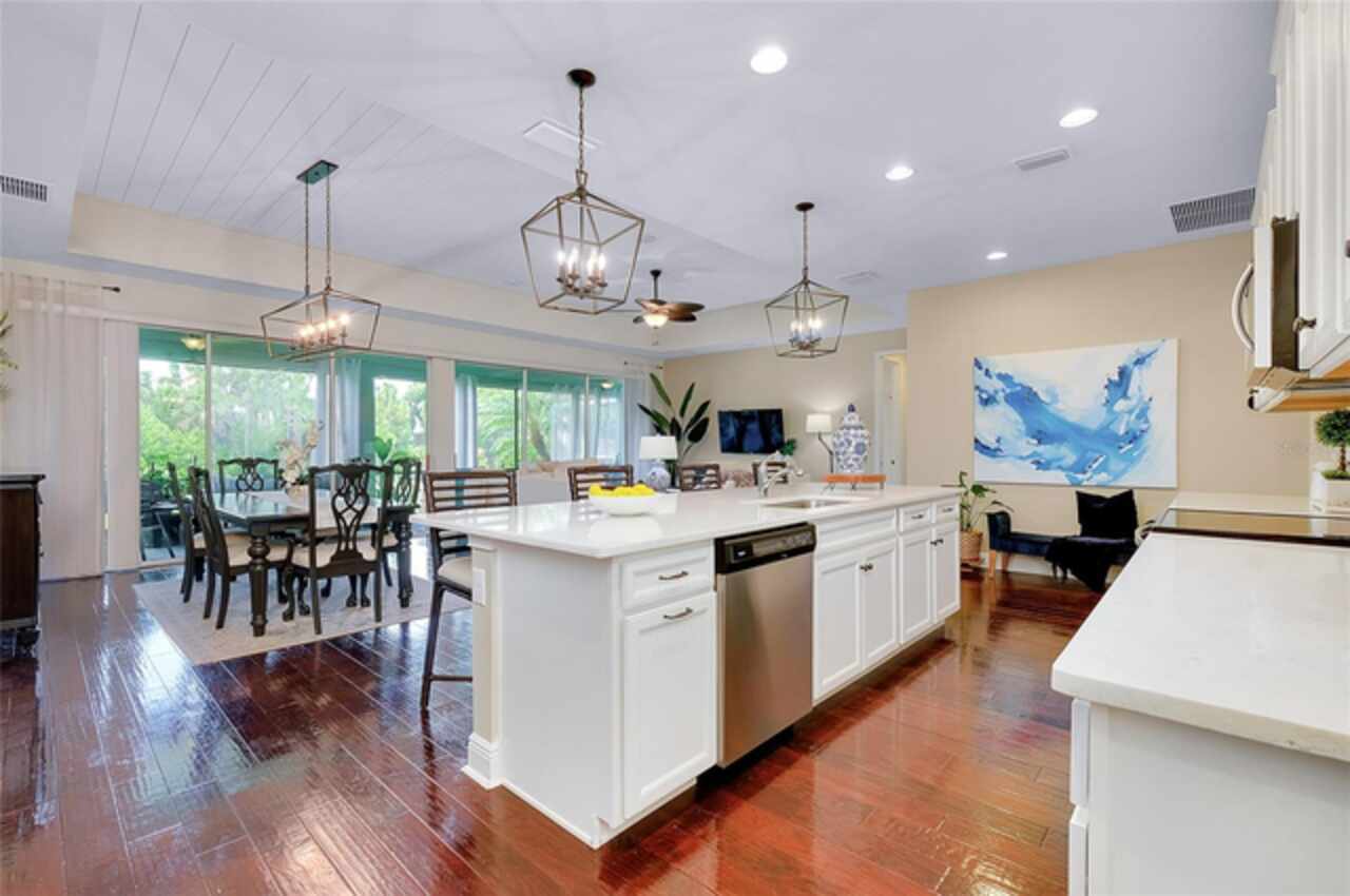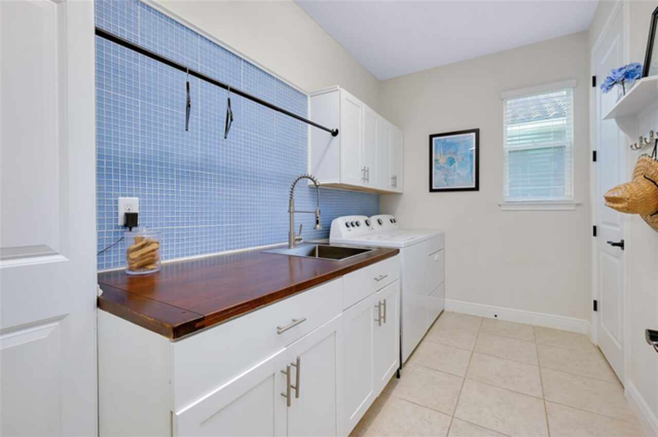 This Hampton model in the Renaissance community of Wellen Park is immaculate and full of upgrades. Why wait to build and pay for enhancements already in place here. Spacious and modern, from the moment you step inside, you are immediately impressed by the space, which is highlighted by stylish lighting, designer finishes, and tons of sunlight flowing in from the large windows. You’ll adore the stunning views and well-manicured curb appeal that blend in with the mature trees and lush greenery. A bright and open living area seamlessly connects to the kitchen and dining area with hard wood flooring, meaning whether you’re watching your favorite program or hosting a meal, you’ll never be bored. The kitchen pops out with a soft white tile backsplash and boasts quarts countertops, high-quality stainless-steel appliances, plenty of cabinet space, and a good-sized island. Don't miss the high ceilings with tongue and groove tray ceilings. The entertainment space continues outside through full wall sliding glass doors to the large covered patio, where you can soak in the serene environment in your hot tub. Primary suite offers large walk in closet with direct access to laundry room, dual sinks and a generous sized walk in shower. Split floor plan featuring ensuite bathroom for one guest bedroom giving option of double primaries. The bedrooms are well-appointed and spacious, featuring BRAND NEW carpeted floors, ceiling fans, and ample closet space. Additional features of this remarkable home include office/den/flex room, 8 foot doors, smart thermostat and light fixtures, a laundry room, large pantry, and a built-in drop station off the spacious garage. Renaissance offers a resort lifestyle with full gym, expansive community pool, playground, pickle-ball, bocce ball, tennis courts, private entrance to 33 acre park, and a full time activities director. Close to everything you want and need! Braves Spring Training, Shopping, Beaches, Downtown Wellen Park, Golf and more just minutes away. FLOOD ZONE X. NO FLOOD INSURANCE REQUIRED