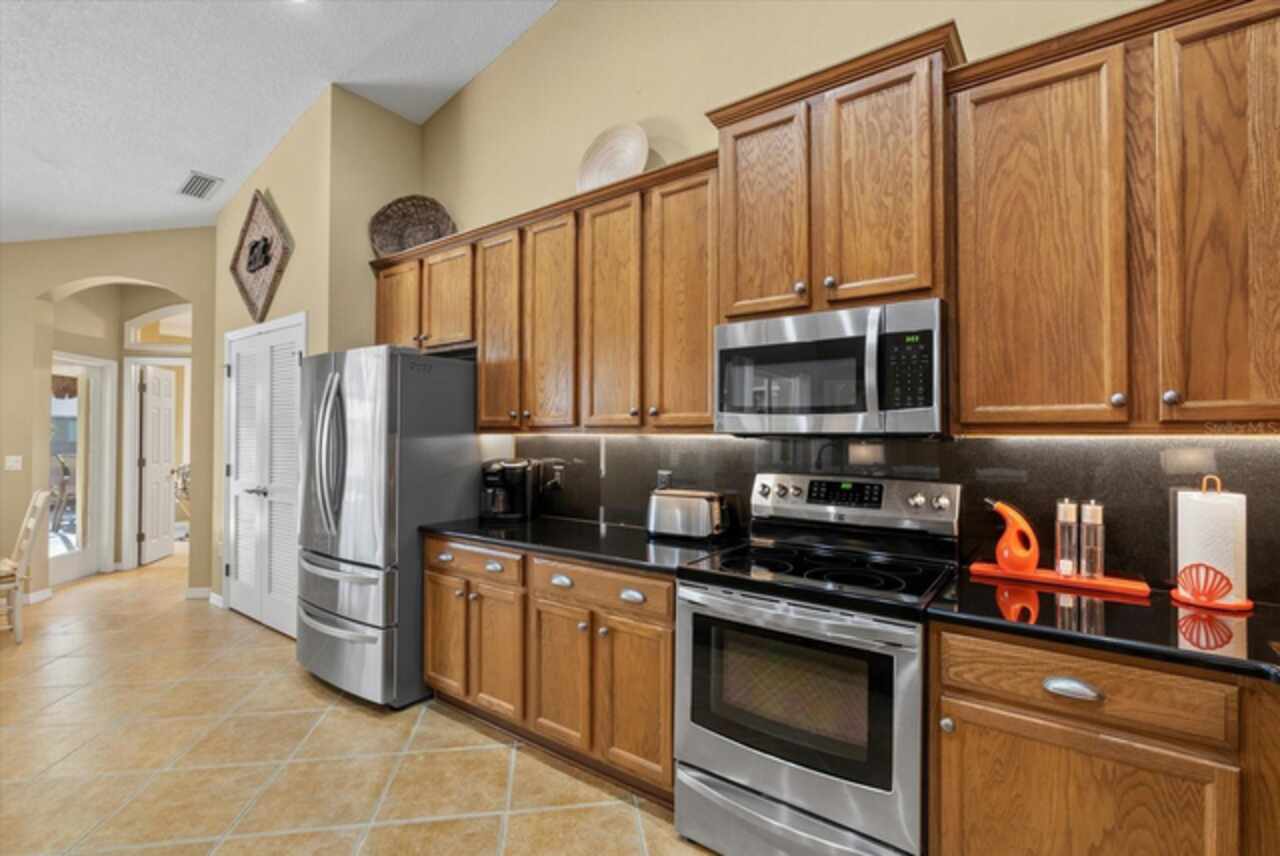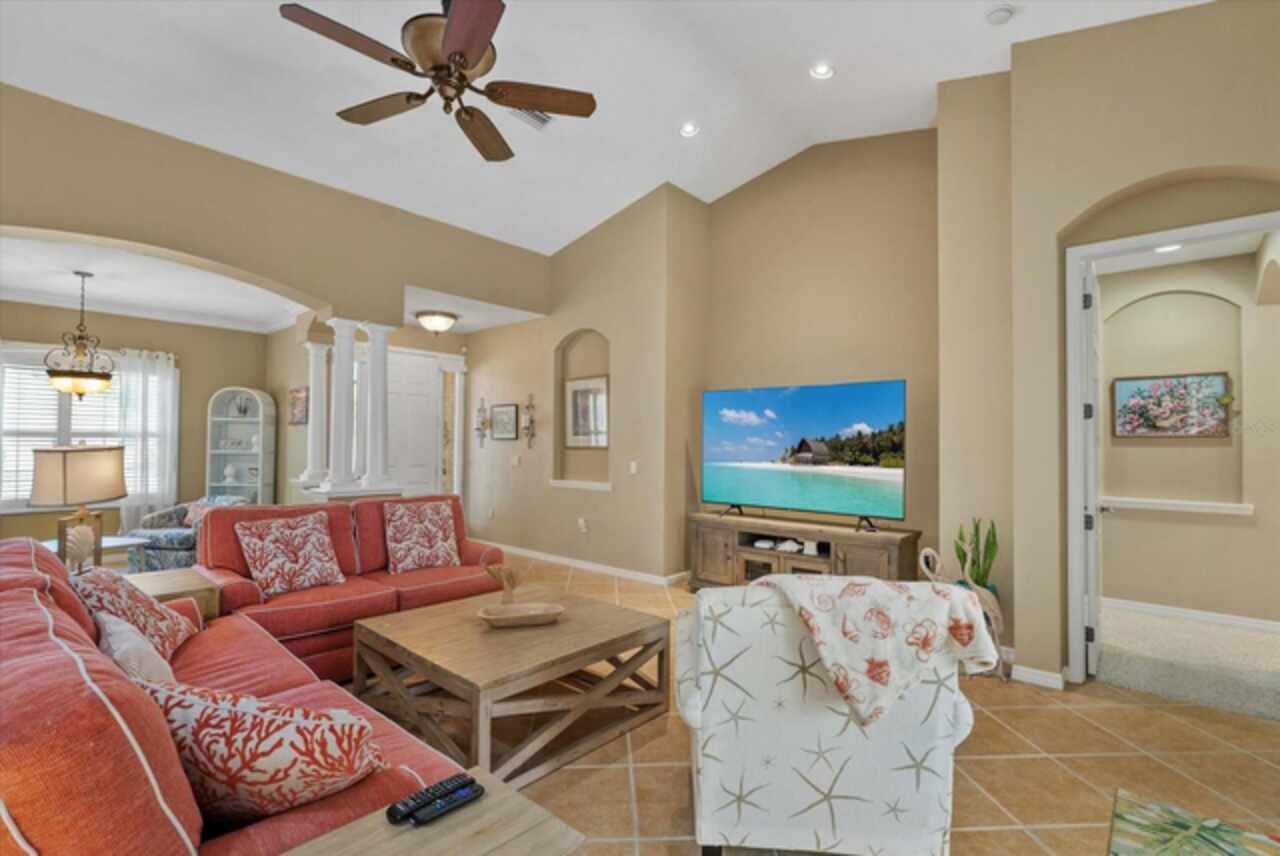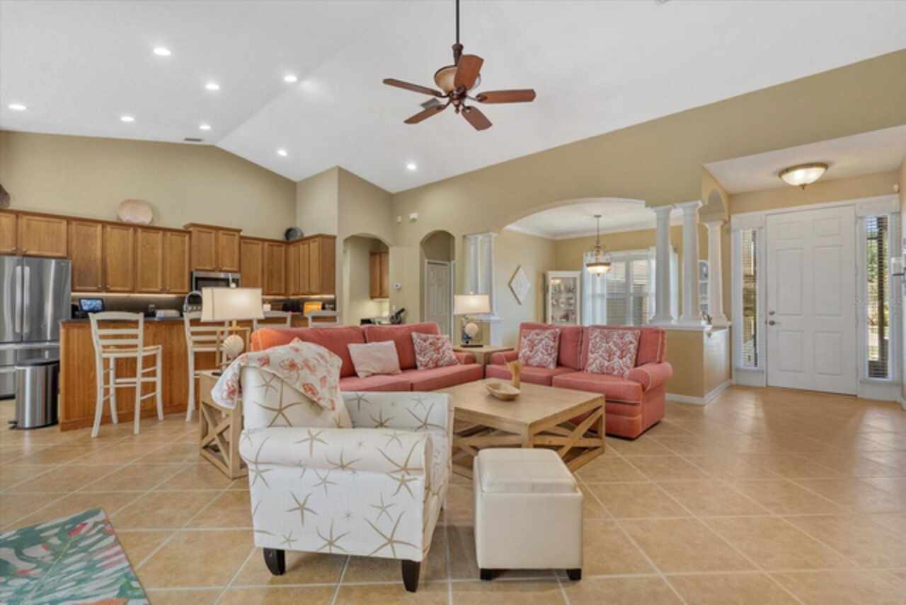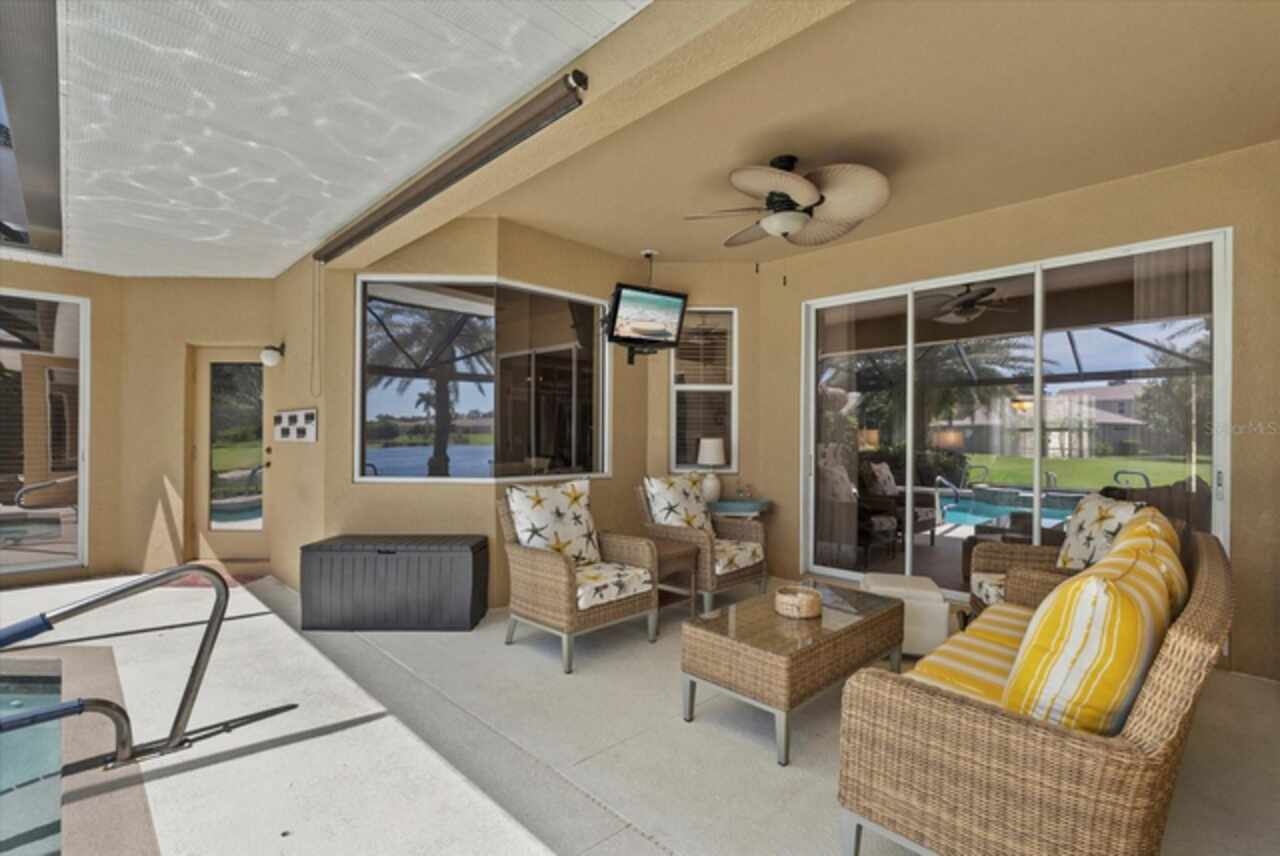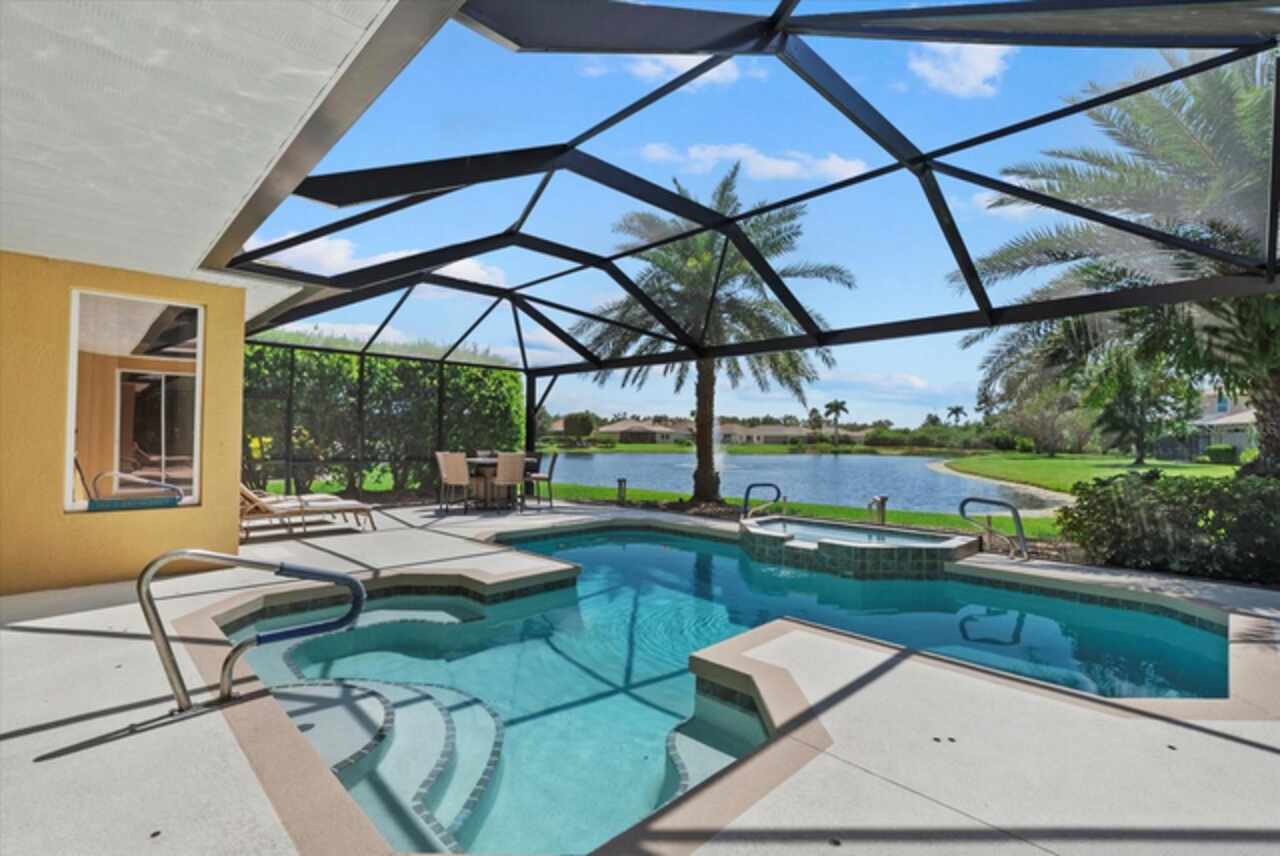 MOTIVATED SELLERS - Listing is under appraisal amount!! Can you say instant equity? Don't miss this amazing opportunity to own a beautifully upgraded waterfront 3/3 PLUS DEN home in the sought-after community of Lexington Estates built by the custom builder Bruce Williams. This exceptional residence features a one-of-a-kind Grecian Key-shaped pool and spa that has been resurfaced and is surrounded by a new panorama screen enclosure that overlooks the lake with a lit up fountain at night. The backyard is an entertainer’s dream, complete with a custom Paradise Grills lighted Tiki Bar with hibachi grill, outdoor TV with bluetooth app technology, and an extended patio area ideal for gatherings. This home is sure to be your oasis after a long day. Step inside to an open floor plan that is showcased by soaring vaulted ceilings and crown molding. The kitchen offers generous space with granite backsplash and a large custom curved granite breakfast bar, a spacious pantry, and a breakfast nook with an aquarium window overlooking the pool. A formal dining room adds to the home’s appeal, along with numerous interior enhancements including plantation shutters, a desk off the kitchen, and UV film protection on the western-facing windows. Recent upgrades include a 2022 HVAC system, a 2021 roof, a water heater booster, and a Pentair pool system. The two-car side-load garage has been extended, features a painted floor, screened-in garage door, and an added portable A/C unit to use at your large custom work bench in the garage…every man’s dream. The front of the home boasts a concrete etched driveway and covered porch, framed by lush landscaping with river rock and curbing around the entire perimeter. (see full list of all upgrades in attachment) Additional improvements include updated kitchen appliances, granite, backsplash, under counter kitchen lighting and automated outdoor lighting, screened lanai. This meticulously maintained property offers the best of Florida living in a peaceful waterfront setting, with every detail thoughtfully designed for comfort, style, and functionality. This is the perfect place to call home in paradise. Quick access to I-75, St Pete and Tampa International airport. Lexington is located near great schools and plenty of restaurants and many famous beaches.