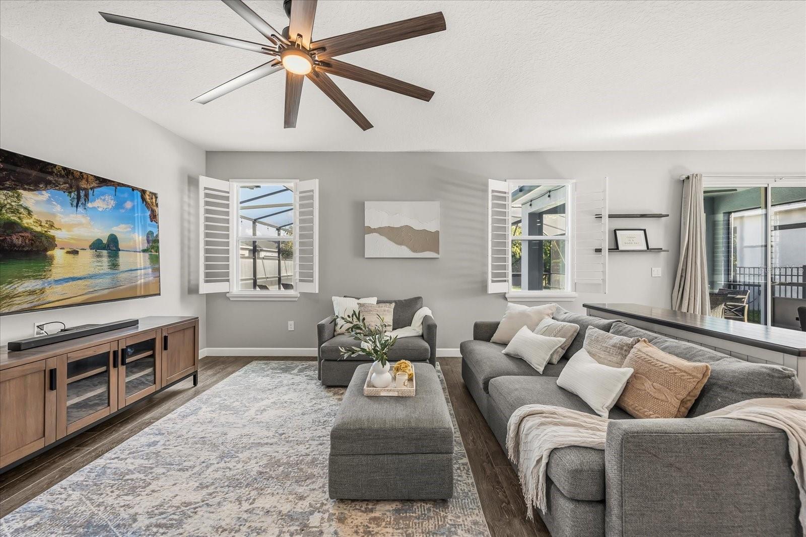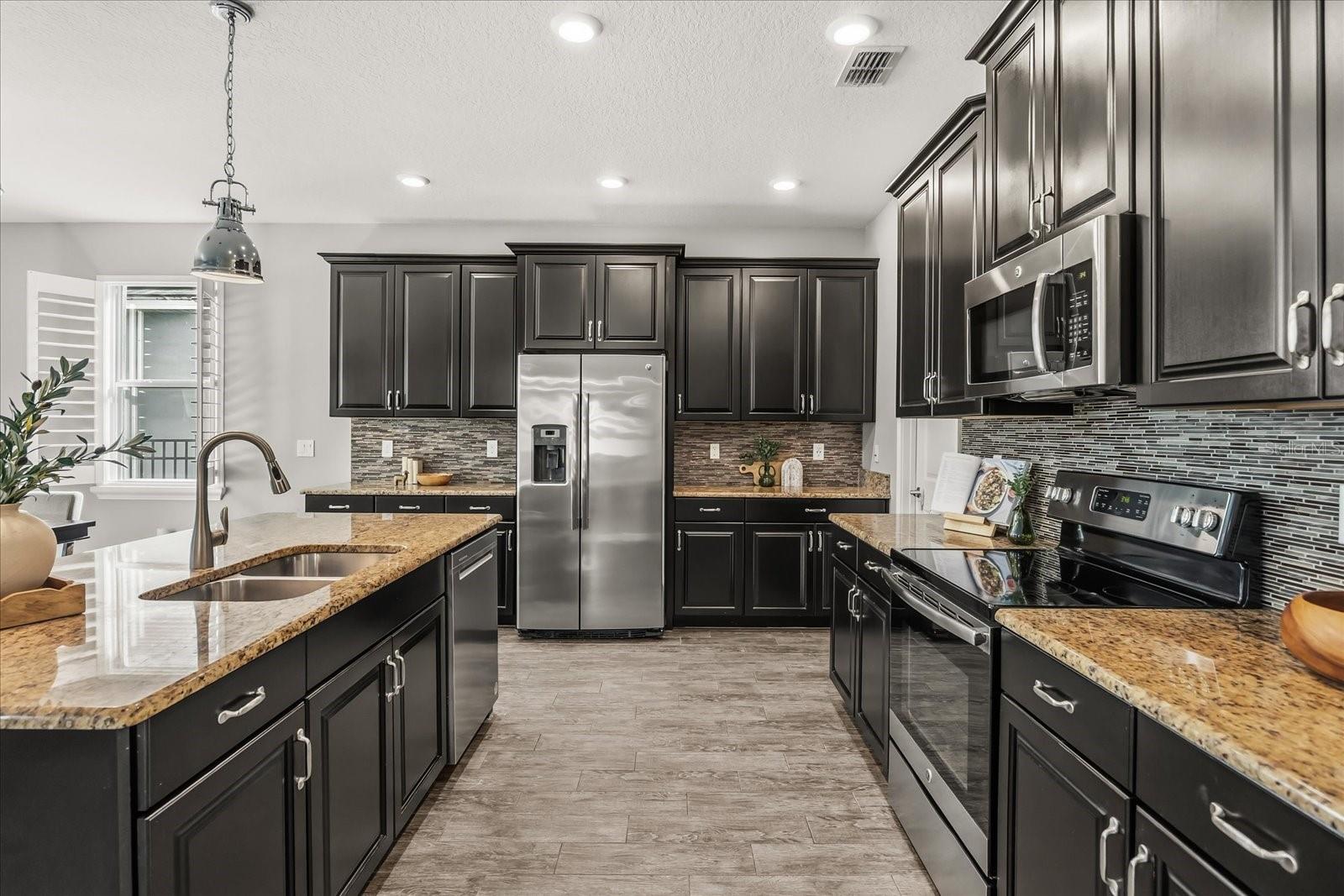 Discover the perfect blend of style, function, and location in this stunning 4-bedroom, 2.5-bath pool home in the highly sought-after Storey Park community, just minutes from Lake Nona’s Medical City. Situated on a premium corner lot, this residence offers 2, 803 square feet of beautifully designed living space. From the moment you arrive, you’ll notice the inviting curb appeal, paver driveway, and covered entryway leading to bright, open interiors. Inside, you’re greeted by an elegant foyer with wood-look tile flooring that extends throughout the main level, creating a warm, cohesive flow. A dedicated home office with French doors offers privacy and sophistication, perfect for today’s remote-work lifestyle. The open-concept living and dining areas are designed for entertaining, featuring plantation shutters, neutral designer tones, and views of the pool and lanai that invite natural light from every angle. At the heart of the home sits the gourmet kitchen, complete with rich espresso cabinetry, granite countertops, stainless steel appliances, pendant lighting, and an oversized walk-in pantry. The seamless connection between the kitchen, dining space, and living room makes this home as functional as it is beautiful. Step outside to your own private oasis, a spacious fenced backyard featuring an oversized screened-in pool and a convenient half bath with direct access from the patio, perfect for effortless indoor-outdoor living. Upstairs, the primary suite is a true retreat with a spacious layout, a custom-built walk-in closet, and direct access to the laundry room for convenience and efficiency. The en-suite bath features a soaking tub, glass-enclosed shower, dual vanities, and timeless finishes. Three additional bedrooms provide flexibility for guests, or a second office space. Residents of Storey Park enjoy a lifestyle second to none, with access to a resort-style clubhouse, fitness center, tennis courts, playgrounds, dog park, and community pool, along with scenic walking and biking trails throughout the neighborhood. Located in the heart of Orlando’s growth corridor, this home places you minutes from Lake Nona Town Center, top-rated schools, Medical City, the VA and Nemours hospitals, Orlando International Airport, and major commuter routes. It’s the best of Lake Nona living, without the Lake Nona price tag. If you’re looking for a modern home that checks every box; location, layout, lifestyle, and luxury, 11568 Short Story Street is move-in ready and waiting to welcome you home.