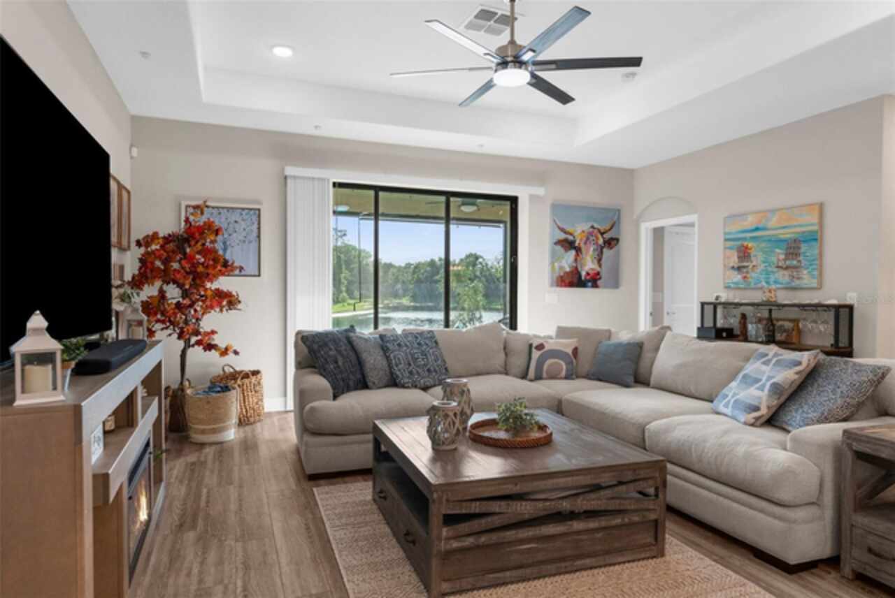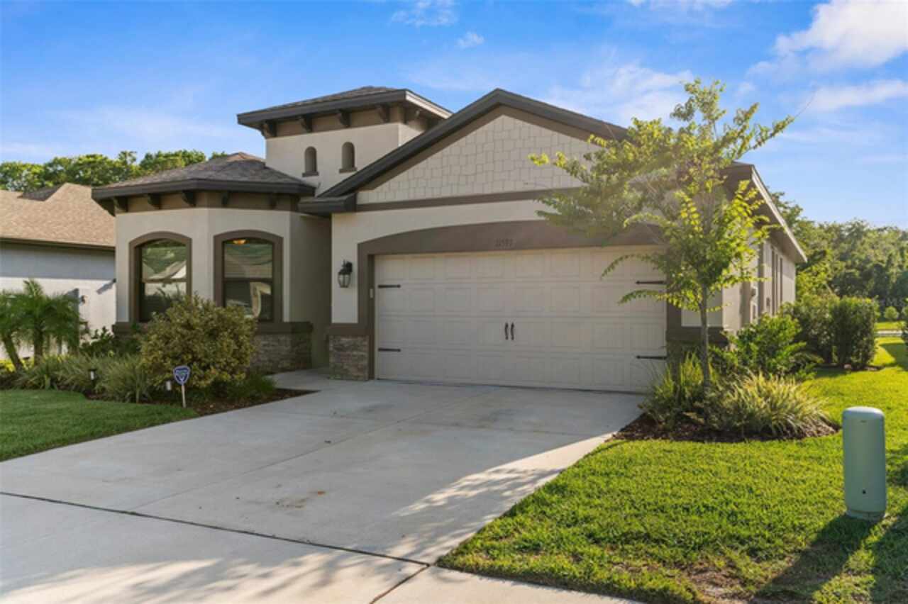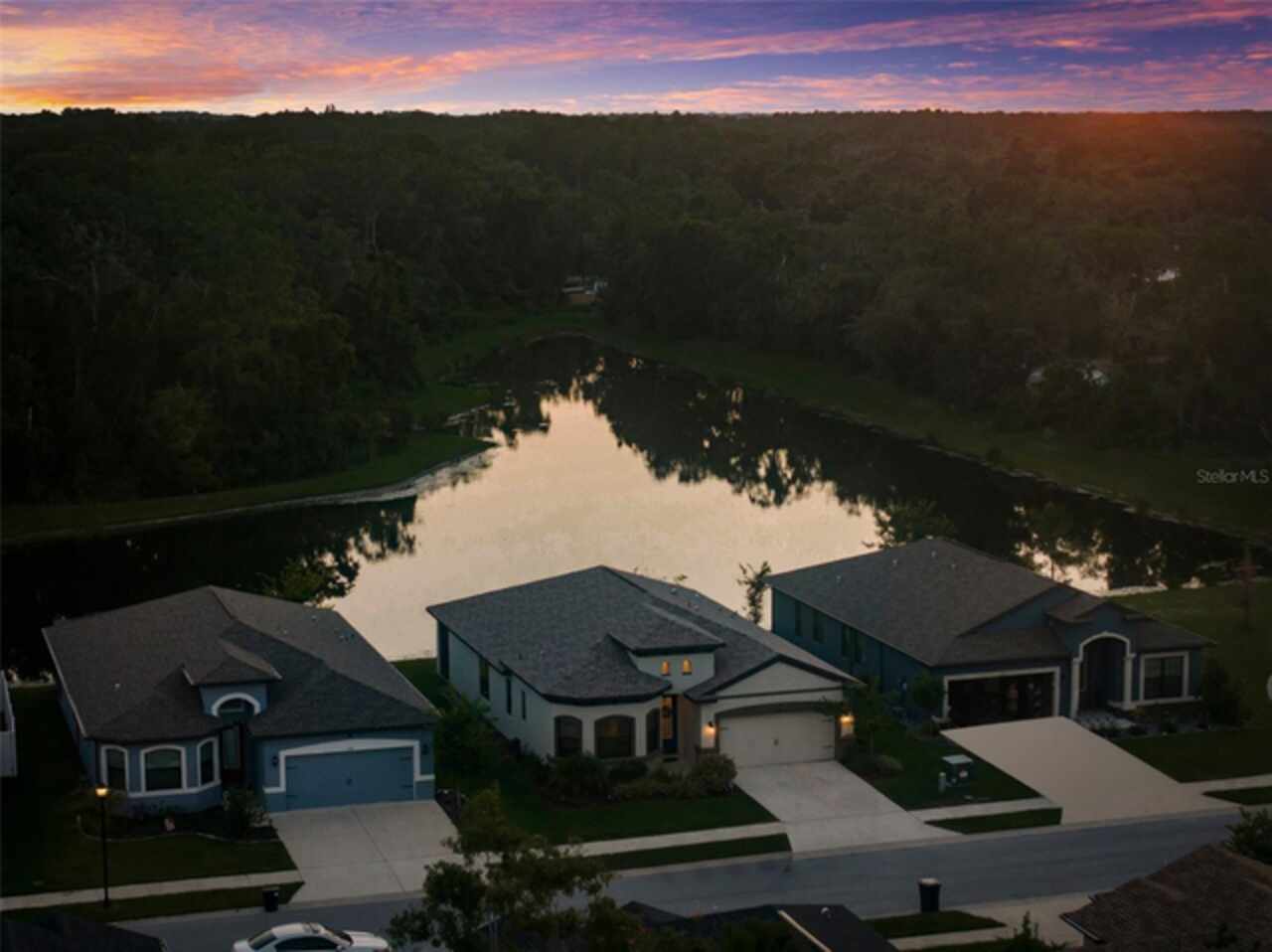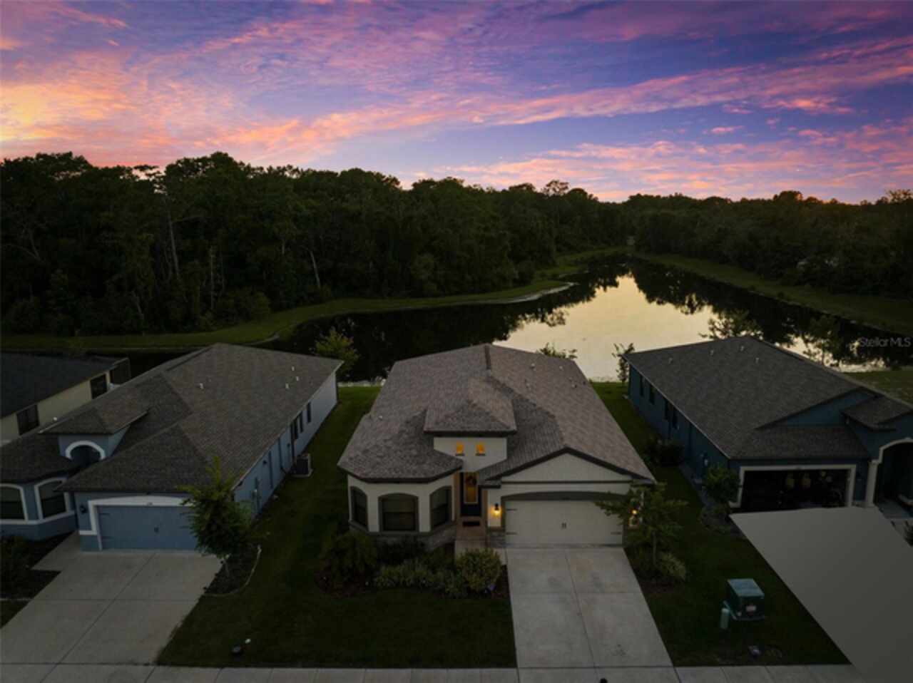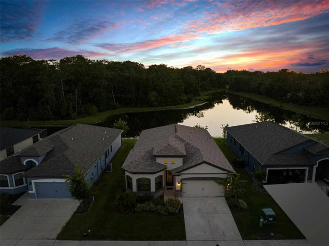 **SELLERS OFFERING $8, 000 TOWARDS BUYERS CLOSING COSTS/ RATE BUY DOWN!** Experience the perfect blend of comfort and modern living in this stunning 4-bedroom, 3-bathroom home, boasting 2, 052 sqft of well-designed space. Built just 3 years ago, this residence features a two-car garage and an inviting layout that caters to both relaxation and entertainment. The primary bedroom is a true sanctuary, complete with expansive windows overlooking a serene pond with breathtaking sunsets you can enjoy from bed. This suite features two walk-in closets and an ensuite bathroom with an open shower with glass walls, double sink vanity and a water closet. For added convenience, the 4th bedroom is a junior primary suite with its own ensuite bathroom and step-in shower is perfect for guests or parents. Two additional bedrooms share a beautiful bathroom with a tile shower adding a touch of luxury, eliminating the need for plastic inserts. Bedroom 1 showcases a charming bay window that enhances both space and natural light. The heart of the home is the open concept dining and living room combination, seamlessly connecting to a gourmet kitchen equipped with a farmhouse sink, two ovens, upgraded appliances, 42” cabinets, a pot filler, slide out garbage cans, a walk in pantry, and elegant Cortez countertops. LVP flooring flows throughout the main areas creating a cohesive and stylish environment. Pocket sliders lead to a screened patio, allowing for effortless indoor-outdoor living and entertaining. The patio is perfect for unwinding after a long day. With no rear neighbors for added privacy and the beautiful views as the sun sets over the trees. Additional features include tray ceilings (in the primary, living and entryway), plumbing for a water softener, hurricane shutters, a pest control line, rounded wall corners, foam insulation in the block exterior walls, and irrigation from front to back. Situated in a desirable gated community, residents enjoy access to a pool with bathrooms, and a picturesque pond with a boardwalk. This home is ideally located just 10 minutes from the Suncoast Parkway, 20 minutes from the Gulf and downtown New Port Richey, and 35-40 minutes from Tampa, with shopping and dining options nearby. With NO CDD fee and a quarterly HOA that includes trash removal, basic cable, and community maintenance, this semi-custom home is a must-see. Don’t miss your chance to experience all it has to offer—call today to schedule your showing!