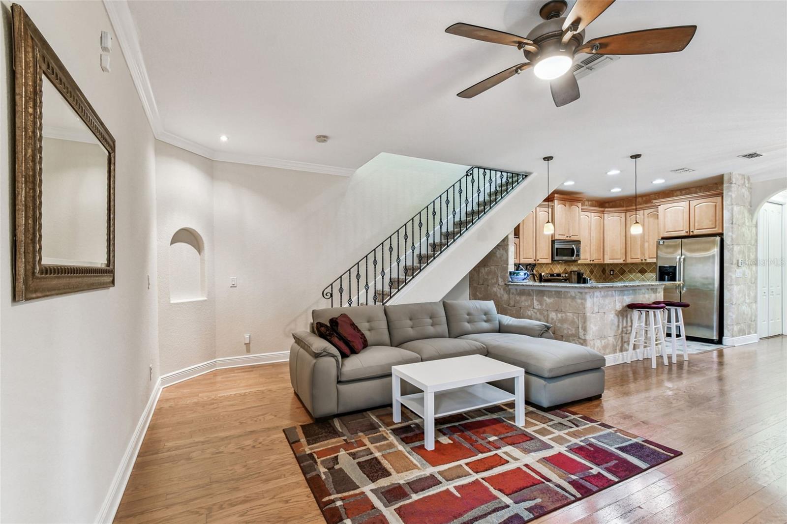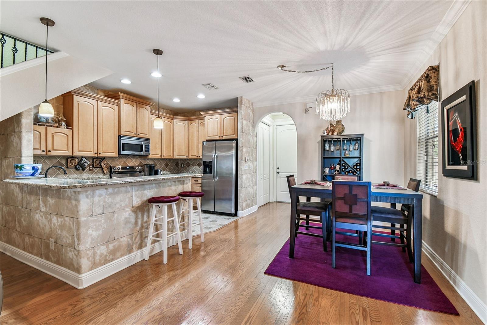 Experience refined living in this exceptional Italian-inspired villa, a three-bedroom, two-and-a-half-bath residence with a two-car garage, located in the heart of highly desirable South Tampa. Meticulously crafted with premium finishes, this home offers a seamless blend of timeless elegance and modern convenience—truly move-in ready. The gourmet kitchen is a centerpiece of the home, showcasing 42-inch sandalwood cabinetry with crown detail, Venetian Gold granite countertops with bullnose edges, and an imported designer tile backsplash. A full suite of stainless-steel appliances and porcelain tile flooring complete this sophisticated culinary space. The main level is designed for both comfort and style, featuring rich oak hardwood flooring, crown molding, artisan wrought-iron stair railings, and oil-rubbed bronze lighting and fixtures. A beautifully appointed powder bath adds convenience for entertaining. Custom eight-foot arched solid-core doors with fluted casings and Italian rosette accents complement the nearly ten-foot ceilings, enhancing the sense of grandeur throughout. Upstairs, the primary suite offers a true retreat. Enjoy a private balcony, a spa-inspired bathroom with sandalwood maple cabinetry, a large walk-in glass shower, and a hydro air-massage tub designed for ultimate relaxation. Two additional bedrooms with upgraded Berber carpeting and a well-appointed full bath provide ample space for family or guests. With its ideal South Tampa address, this residence is just moments from top-rated schools, fine dining, boutique shopping, and vibrant city life. Whether enjoying a quiet evening in or entertaining with ease, this villa offers the perfect balance of urban convenience and luxury living.