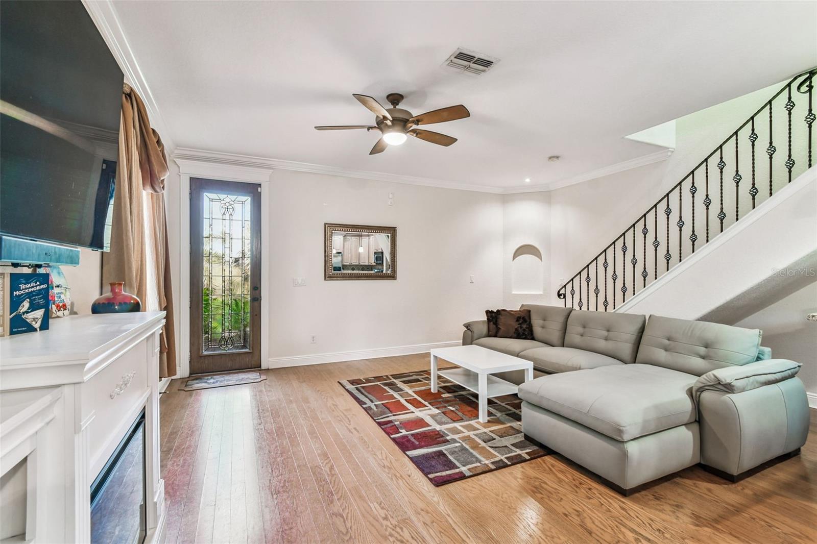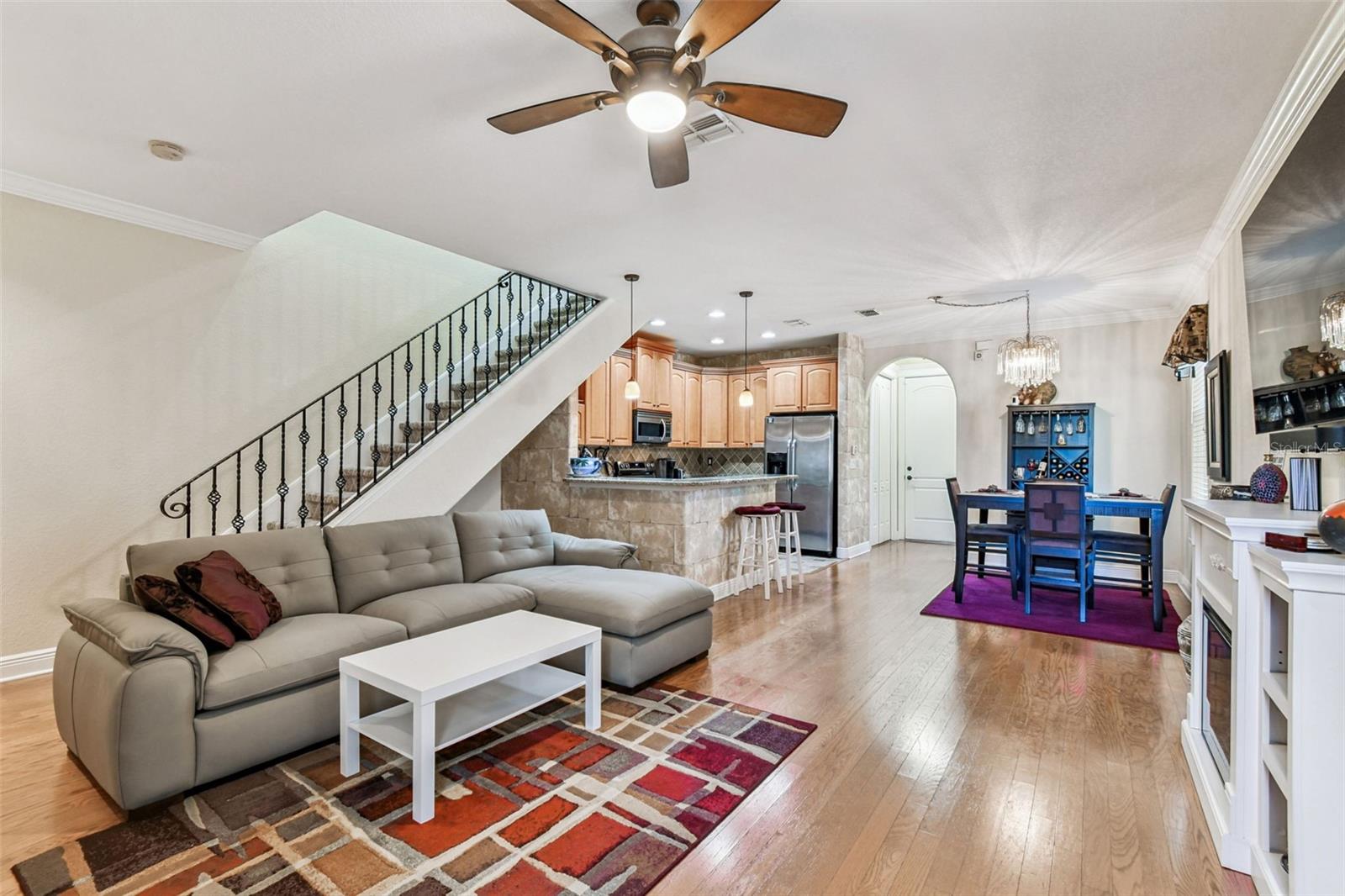 Ceiling Fans(s), Crown Molding, Living Room/Dining Room Combo, Open Floorplan, PrimaryBedroom Upstairs, Solid Surface Counters, Thermostat, Walk-In Closet(s)