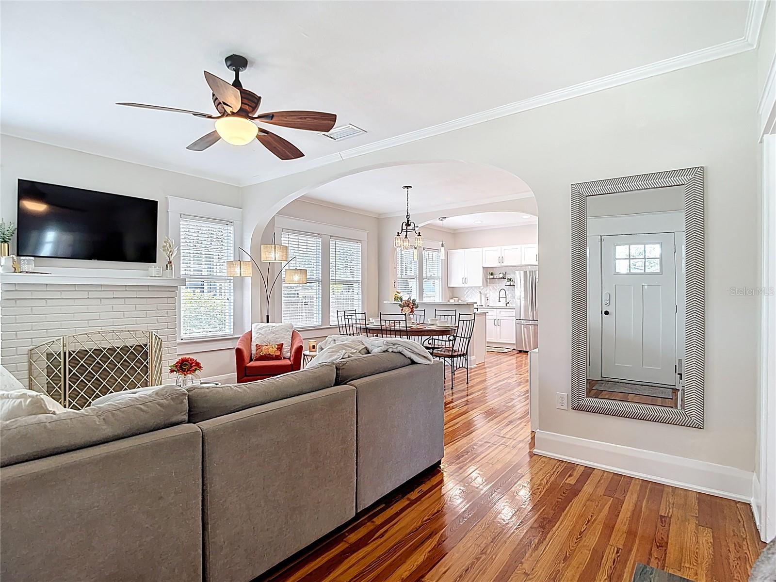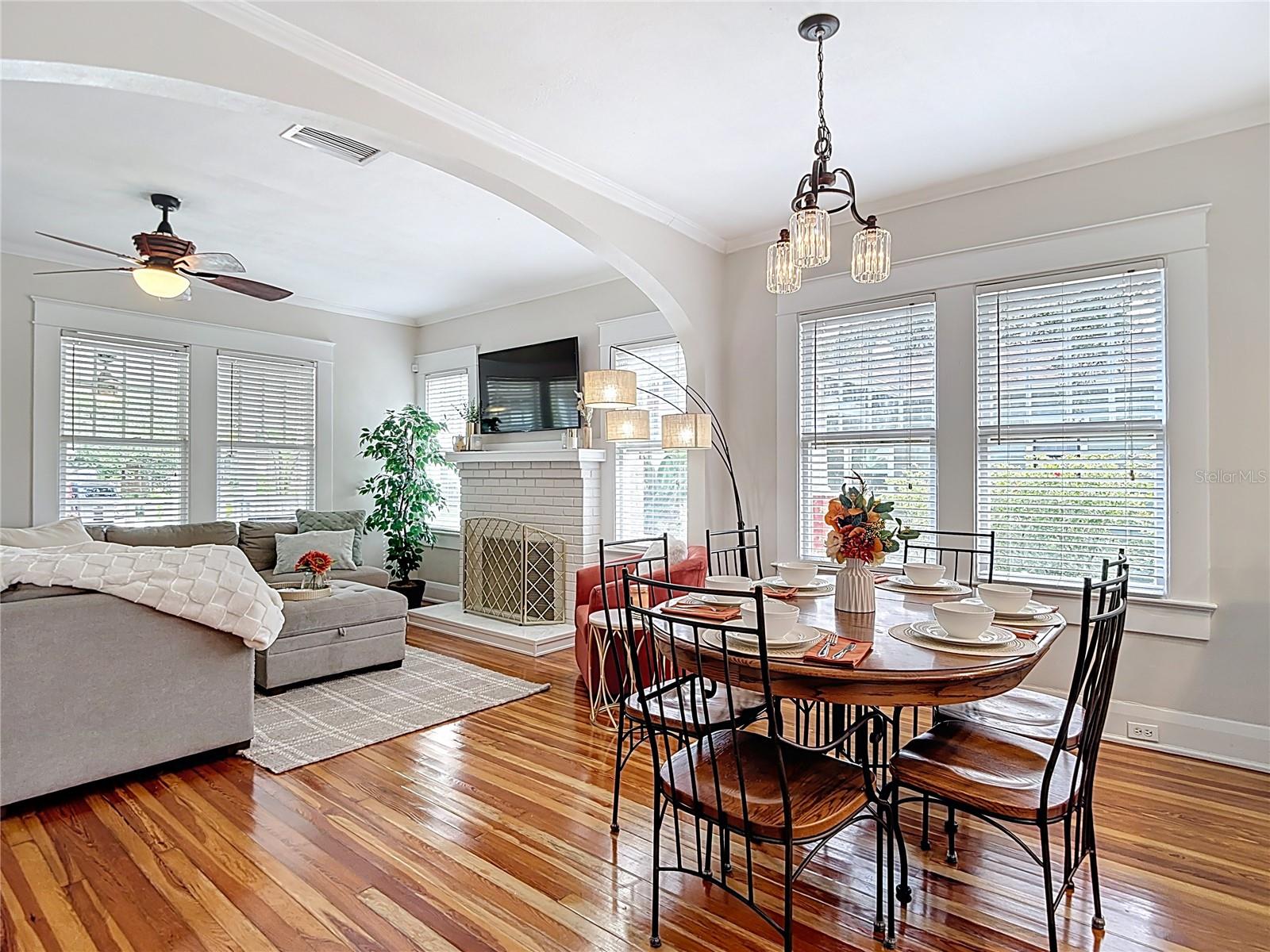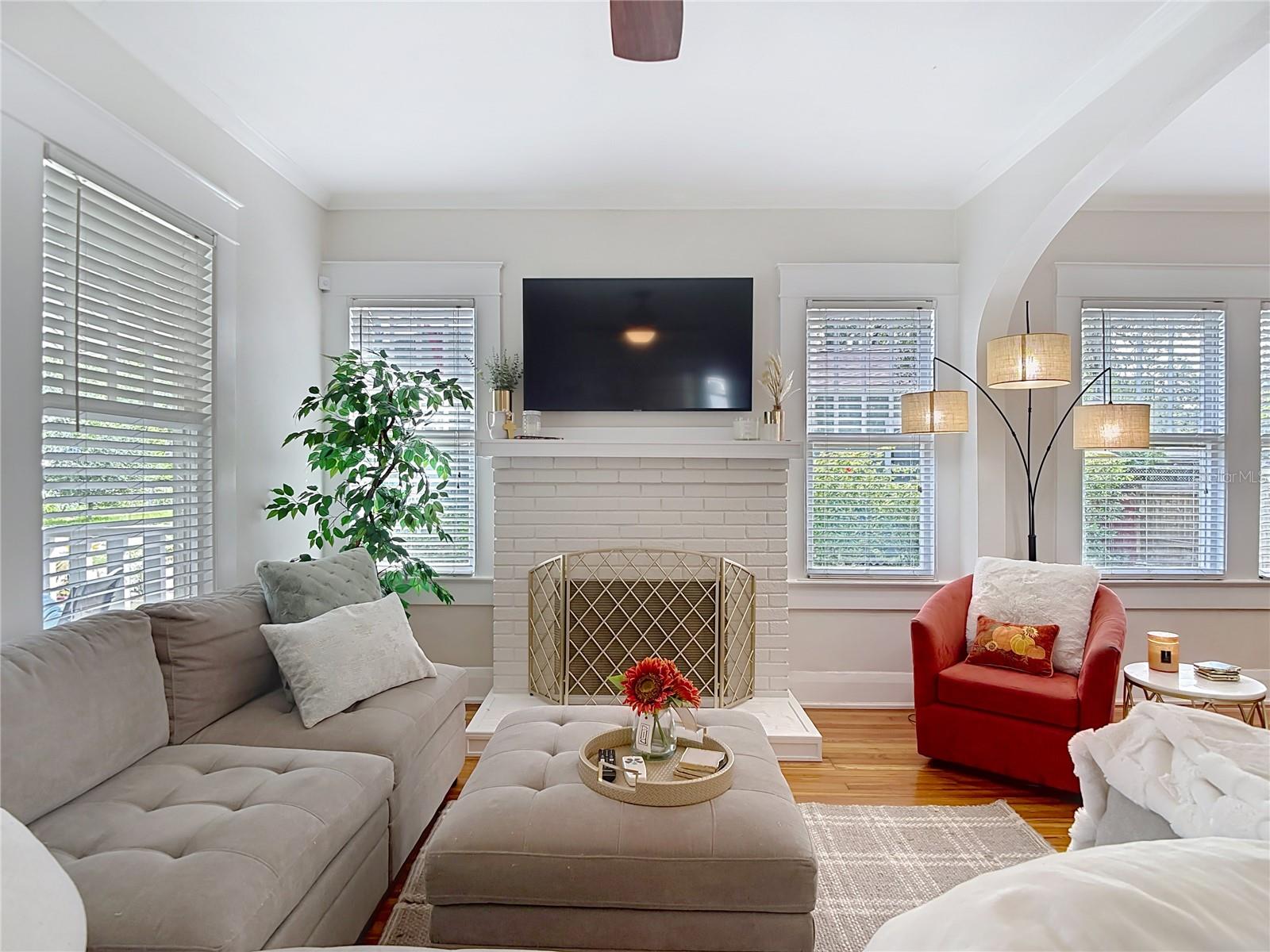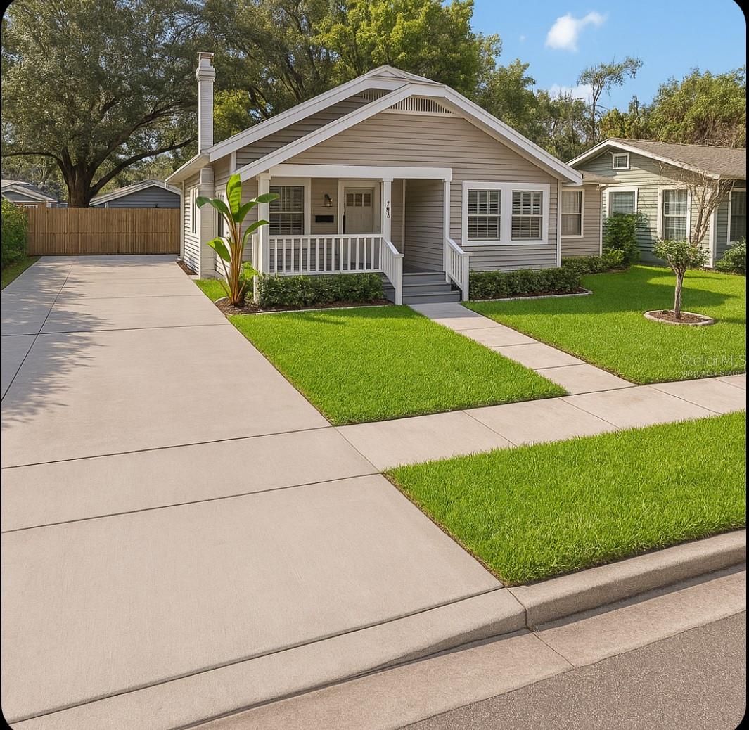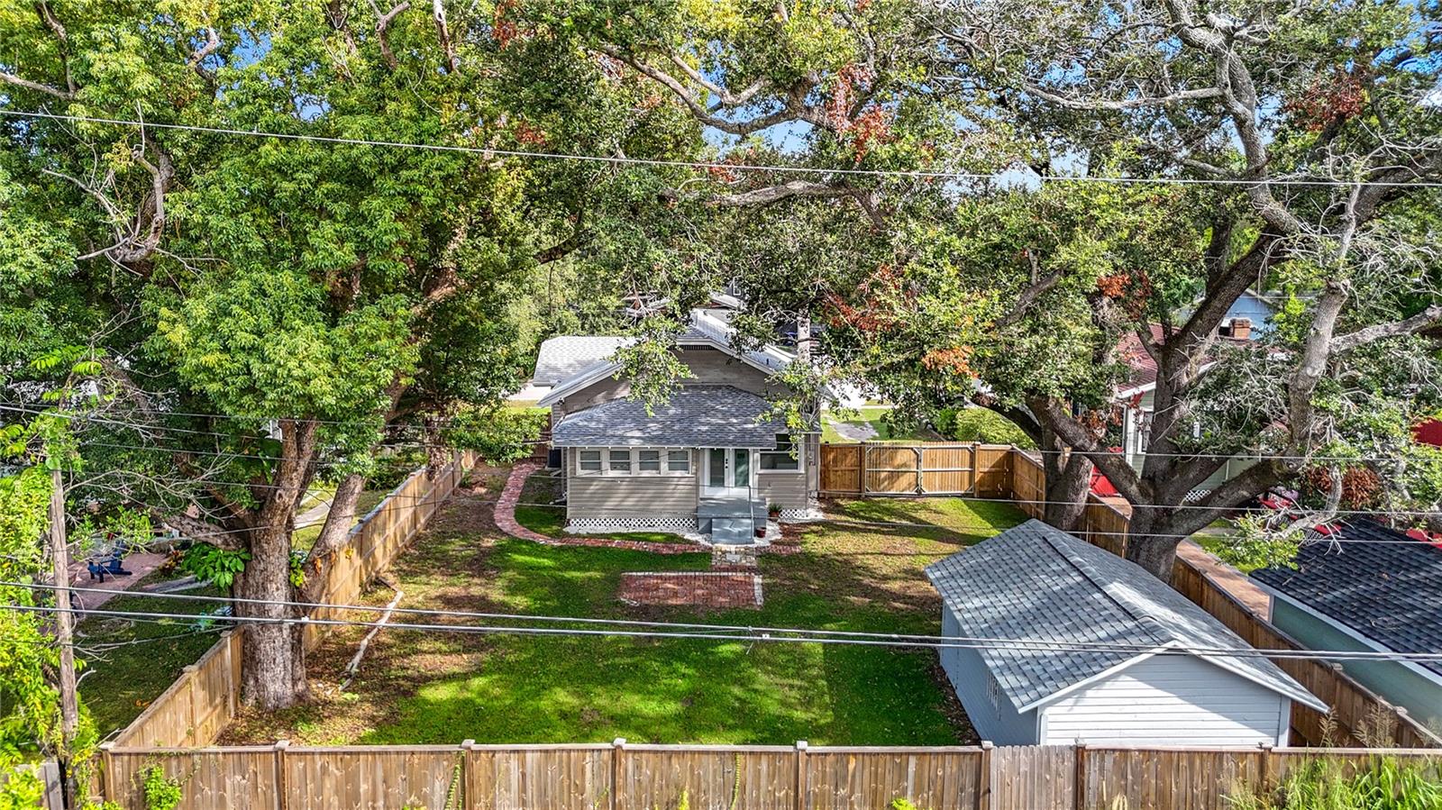 One or more photo(s) has been virtually staged. BEAUTIFULLY UPDATED HOME WITH TIMELESS CHARM & MODERN UPGRADES Welcome to this move-in ready bungalow that blends historic character with thoughtful updates. Featuring an open concept, 9 ft. ceilings, crown moulding, archways, and original refinished wood floors (2022), this home exudes warmth and charm while offering today’s comforts. MAJOR IMPROVEMENTS & UPGRADES: • New roof (2024) • New front door and porch (2025) • Updated plumbing (2022 & 2024) • New AC (2019) and hot water heater (2024) • New washer/dryer and dishwasher (2022) • New den flooring (2025) • New french doors, windows, and laundry room floor (2022) • New fence (2023) INTERIOR HIGHLIGHTS: • Spacious, updated master suite with double vanity, open shower, and dressing room or nursery • Functional wood-burning fireplace with updated tiling • Updated kitchen (2022) with modern finishes • Under-sink Hydroviv water filter • Simply Safe security system conveys. NOTE: Video and audio equipment may be active on site. OUTDOOR & PARKING: • Detached single-car garage • Double driveway space for convenience • Alley Acces (Pedestrian gate) COMMUNITY: Enjoy walkability to local favorites like Trophy Fish, Mandarin Heights, Harvest Bowl, The Salty, Trips Diner, and Bula Coffee. Just 4 miles to downtown with quick access to I-275 & I-4. No flood history (Zone X), plus security system equipment included. This home is the perfect mix of historic detail and modern living—ready for its next owner!