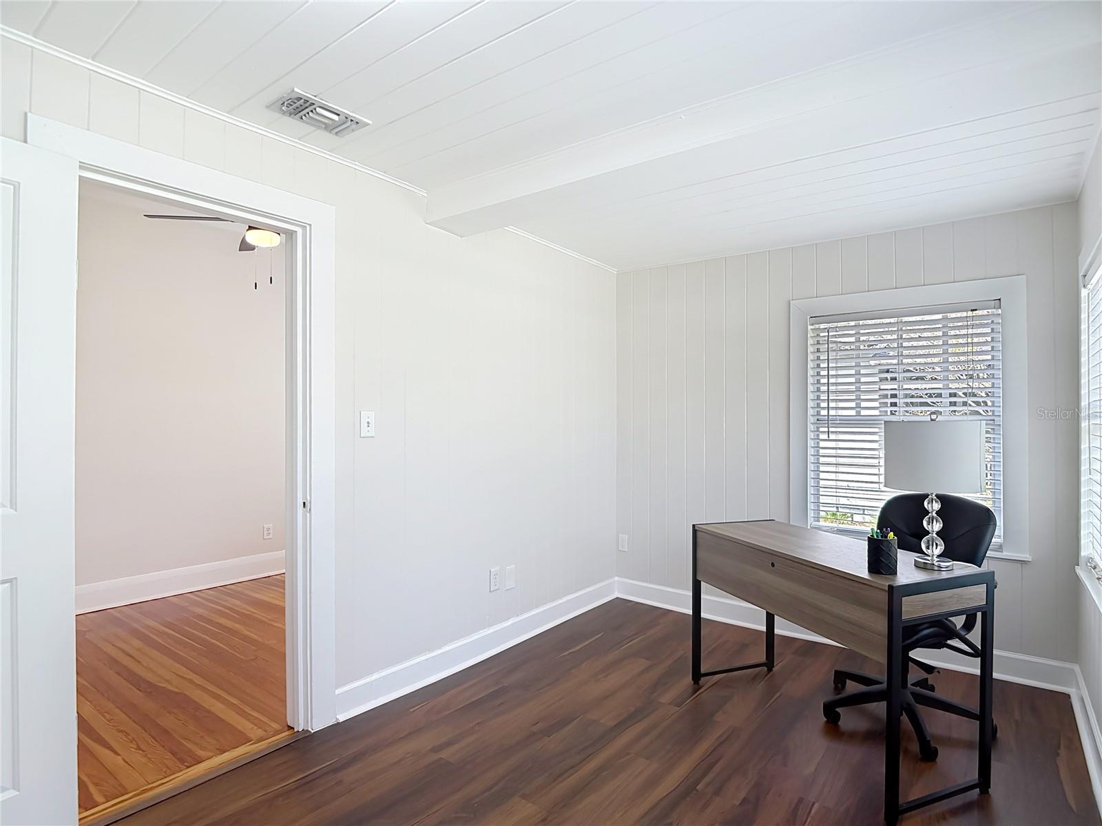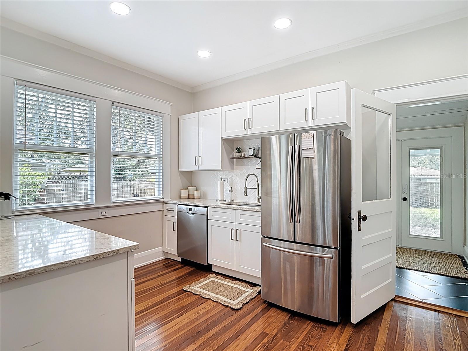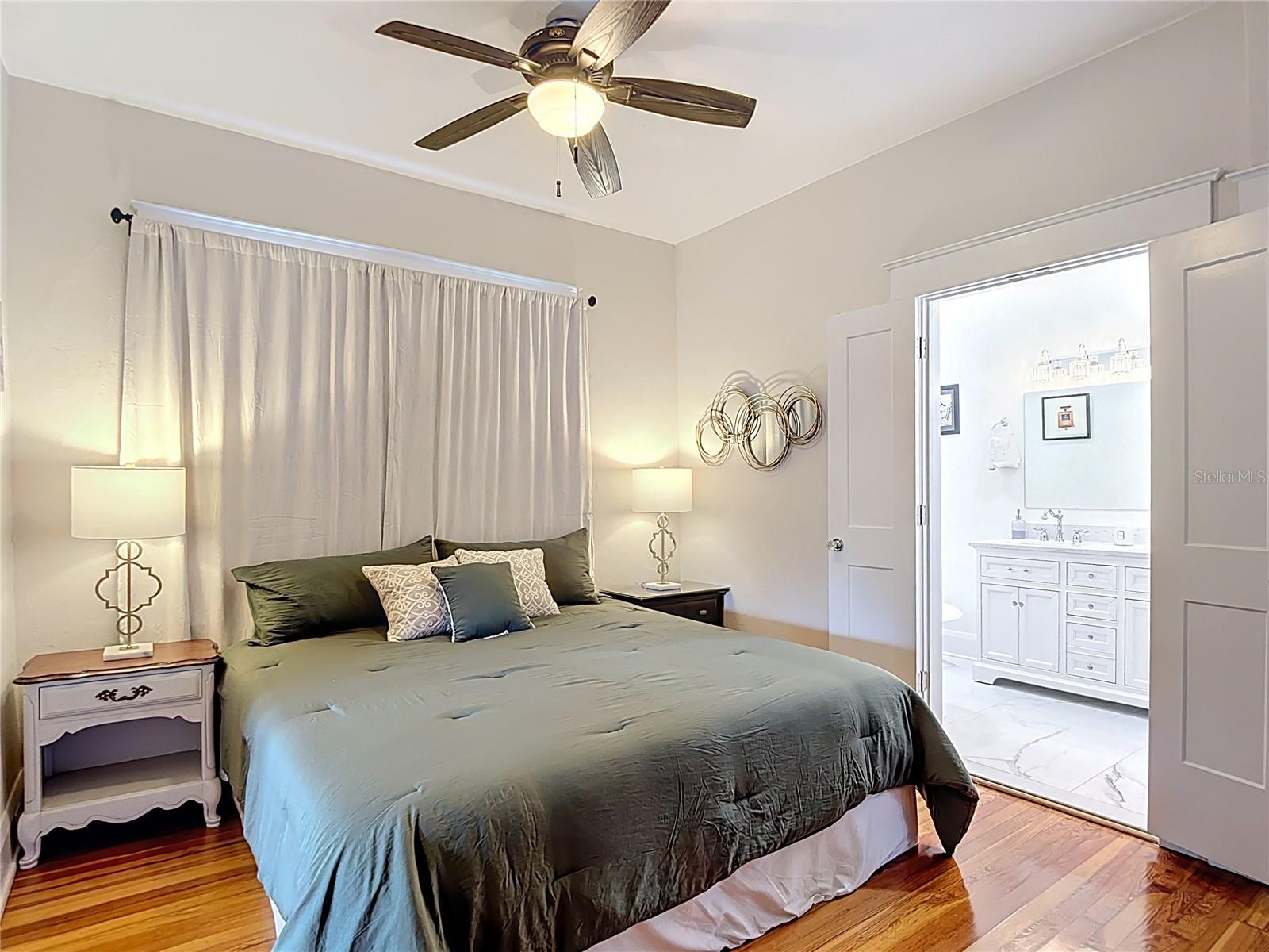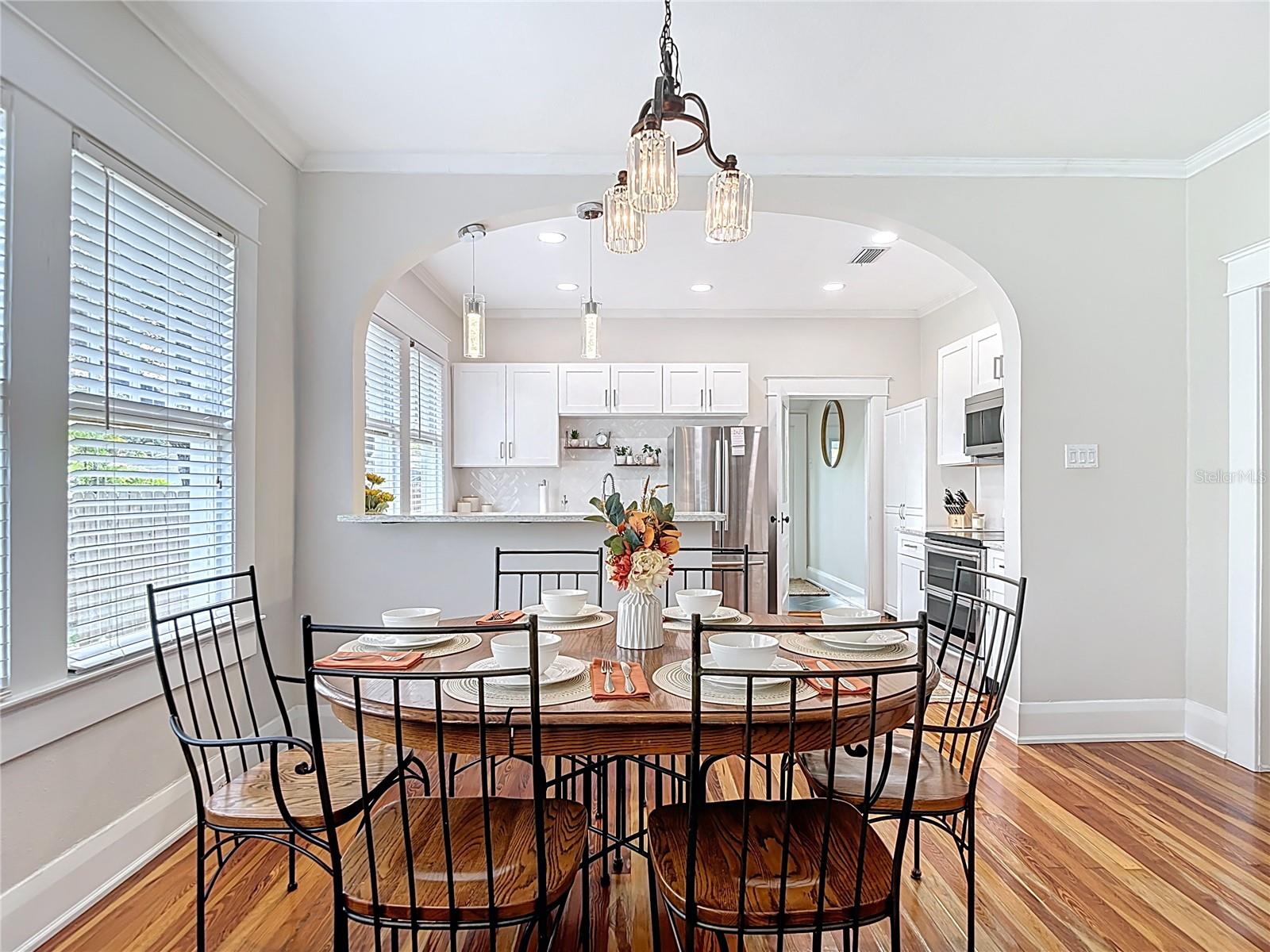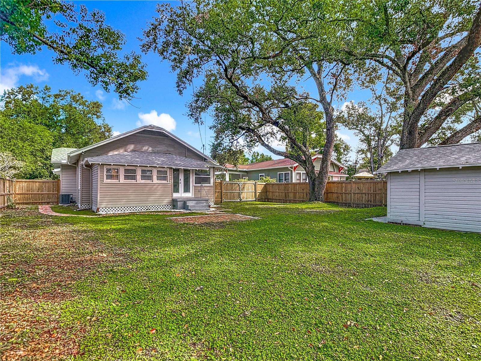 One or more photo(s) has been virtually staged. BEAUTIFULLY UPDATED HOME WITH TIMELESS CHARM & MODERN UPGRADES Welcome to this move-in ready bungalow that blends historic character with thoughtful updates. Featuring an open concept, 9 ft. ceilings, crown moulding, archways, and original refinished wood floors (2022), this home exudes warmth and charm while offering today’s comforts. MAJOR IMPROVEMENTS & UPGRADES: • New roof (2024) • New front door and porch (2025) • Updated plumbing (2022 & 2024) • New AC (2019) and hot water heater (2024) • New washer/dryer and dishwasher (2022) • New den flooring (2025) • New french doors, windows, and laundry room floor (2022) • New fence (2023) INTERIOR HIGHLIGHTS: • Spacious, updated master suite with double vanity, open shower, and dressing room or nursery • Functional wood-burning fireplace with updated tiling • Updated kitchen (2022) with modern finishes • Under-sink Hydroviv water filter • Simply Safe security system conveys. NOTE: Video and audio equipment may be active on site. OUTDOOR & PARKING: • Detached single-car garage • Double driveway space for convenience • Alley Acces (Pedestrian gate) COMMUNITY: Enjoy walkability to local favorites like Trophy Fish, Mandarin Heights, Harvest Bowl, The Salty, Trips Diner, and Bula Coffee. Just 4 miles to downtown with quick access to I-275 & I-4. No flood history (Zone X), plus security system equipment included. This home is the perfect mix of historic detail and modern living—ready for its next owner!