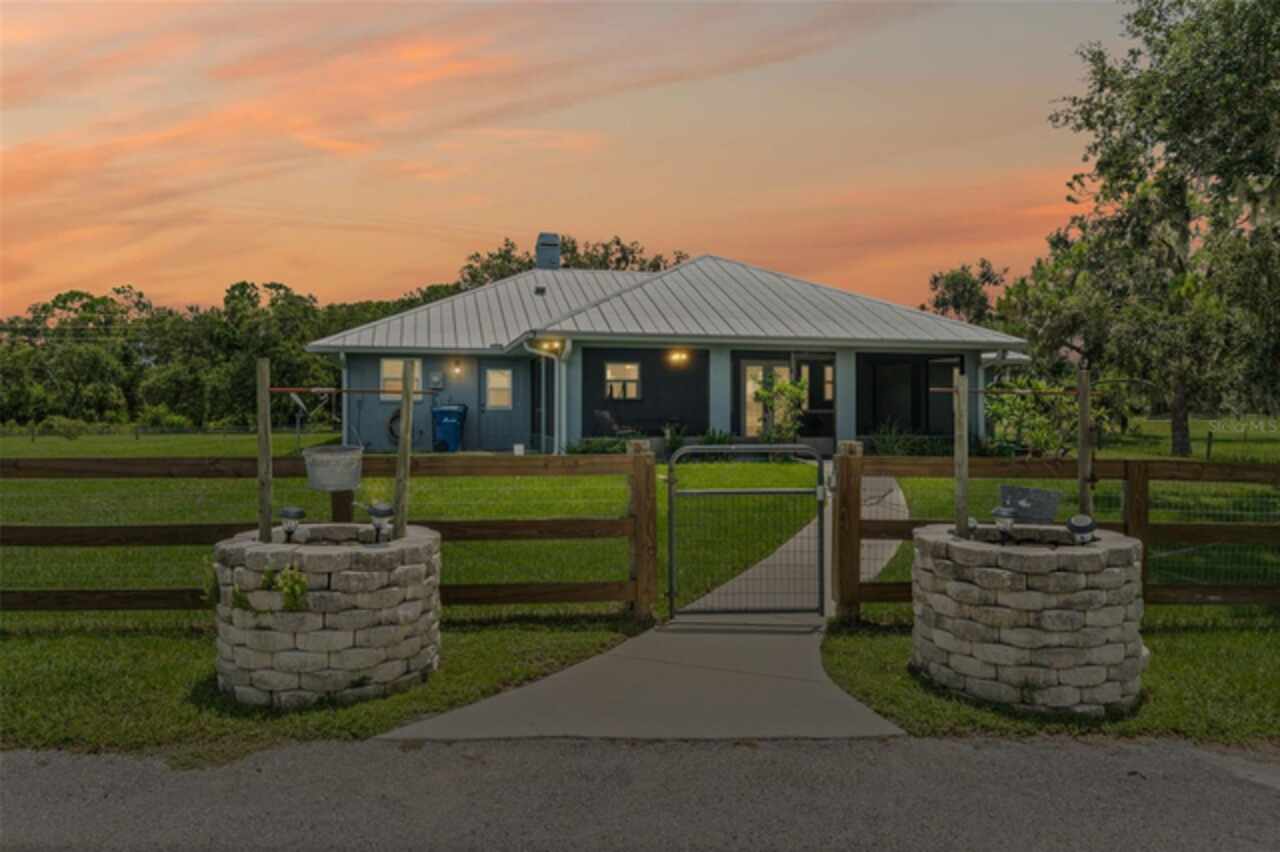 Nestled on an expansive 7.5-acre canvas of pastoral tranquility, this distinguished 1996 block constructed residence offers an extraordinary sanctuary where sophistication meets agricultural charm. The meticulously maintained three bedroom, two bathroom home spans 1, 940 square feet of thoughtfully designed living space, complemented by hurricane-resistant windows that blend safety with elegance. And lets not forget the best part, NO HOA and NO DEED RESTRICTIONS and its in flood zone X. Bring all the toys and livestock and have some FUN! The heart of this property lies in its remarkable outdoor amenities and versatile structures. A substantial 2, 260 square-foot detached block garage houses a completely independent 640 square-foot in-law suite, perfect for multi-generational or generating rental income. Above, a spacious loft awaits transformation into a private work out room, artist's studio, or recreational retreat. Multiple fenced pastures create an idyllic setting for equestrian pursuits or livestock endeavors, while the property's generous acreage provides endless possibilities for outdoor recreation and agricultural ventures. The home's interior showcases solid wood kitchen kickory cabinetry paired with lustrous granite countertops, creating a culinary environment that balances rustic authenticity with contemporary refinement. Dual screened porches positioned at both front and rear entrances, invite leisurely moments while offering protection from Florida's abundant sunshine and occasional precipitation. Recent exterior painting ensures the property presents impeccably, while the garage's convenient half-bathroom adds practical functionality. Many updates have already been done to the home, metal roof in 2020, hurricane impact windows 2019, A/C system in 2019, a new well in 2020 and the list goes on. Located within proximity to Old Miakka Preserve, Lakewood Ranch, SRQ airport and our wonderful beaches only 30 minutes away. Residents enjoy easy access to pristine natural environments perfect for hiking, wildlife observation, and outdoor adventures. This unique offering represents a rare opportunity to embrace Florida's agricultural heritage while maintaining modern conveniences and luxurious touches—a perfect blend for those seeking space, privacy, and endless potential in one extraordinary package.