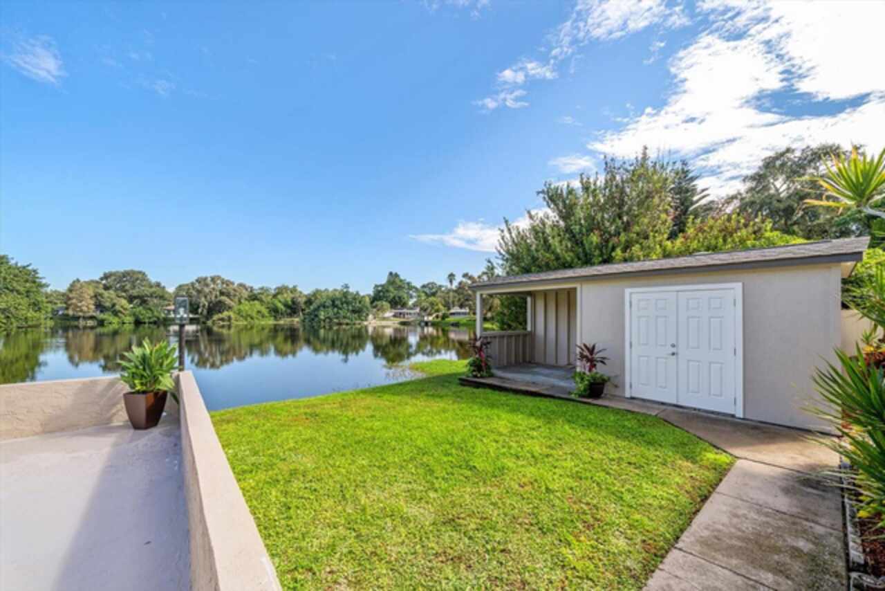 Beautiful Lakefront Home in Coronado Lake Neighborhood, located in South St. Petersburg. Great Curb Appeal In Addition To A Quality Renovation Throughout. From The Refinished Terrazzo Floors, Large Open Kitchen, Family Room With Fireplace & Both Bathrooms. Open Floor Plan Offers Tremendous Lake Views From Most Rooms. Kitchen Offers Solid Wood Cabinetry, Granite Counter-Tops, Stainless Steel Appliances, Refrigerator, Gas Range, Microwave & Dishwasher. Master Suite With Walk-in Closet & Gorgeous Bathroom. Large Second Bathroom Is Also Impressive. Family Room Fireplace Is Wood Burning, And Has A Natural Gas Connection. Family Room Leads To Large Refinished Patio Overlooking Quiet Lake. Incredible Shed With Electric & Covered Area For Lounging. New Baseboards, Trim, Interior Doors & Hardware, Lighting Fixtures & Ceiling Fans. Gas Water Heater 5-yrs, A/C 7-yrs. Vinyl Insulated Windows. Security System. Lake Fed Sprinkler System. Pristine 1-Car Garage Freshly Painted. Don't Hesitate On This One, It Won't Last! Some photos are virtually staged.