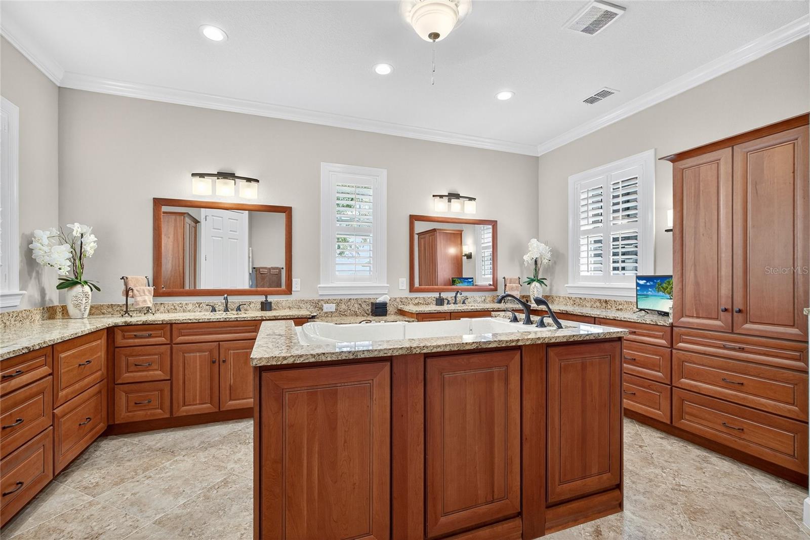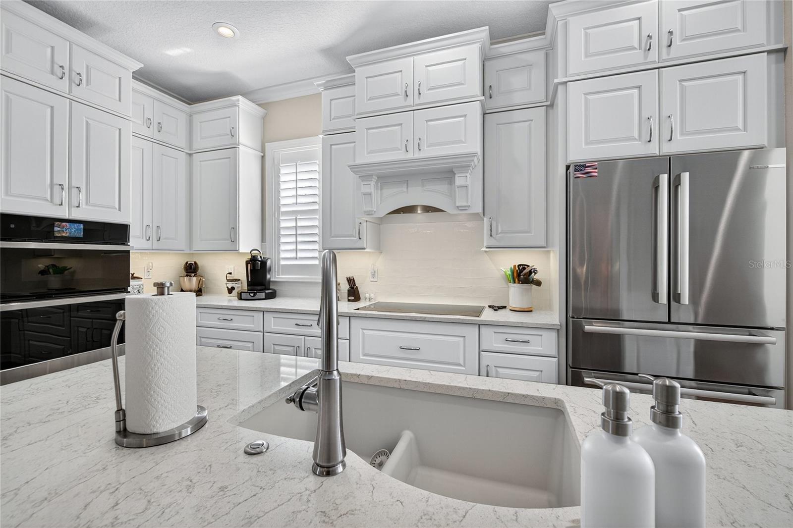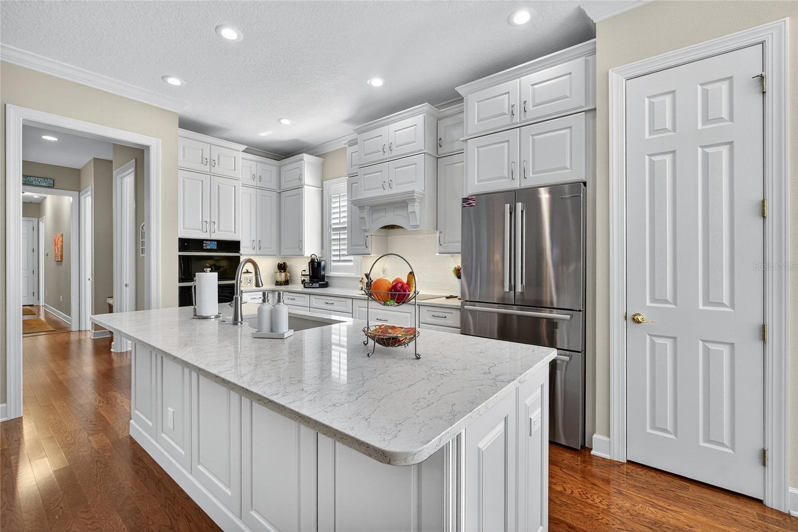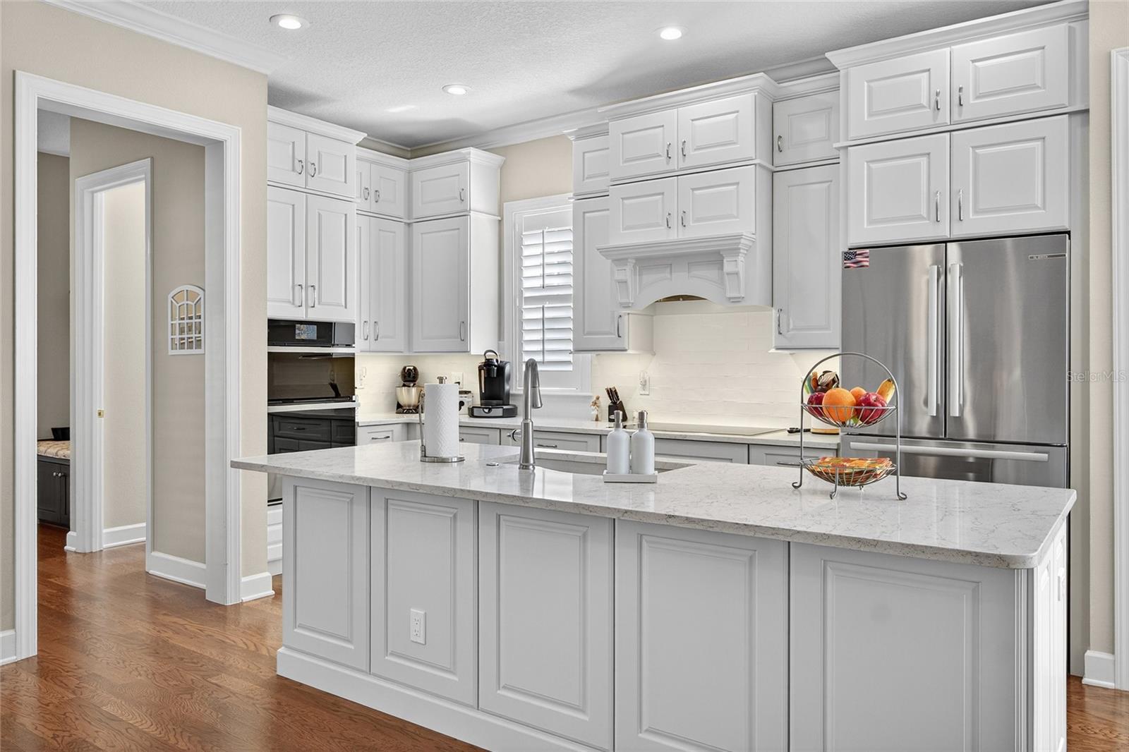 This one-of-a kind SINGLE STORY home offers an Open Floor plan (see labeled floor plan included in the photos) which is perfect for Entertaining large gatherings and multigenerational Living. ** Guests are greeted with a 23’x17’ Open LIVING ROOM/DINING ROOM with Wainscoting in the Dining Area. *The Architectural Features are noteworthy: All 8' Doors throughout the home, Gorgeous Hardwood Floors, Wainscoting in the Dining Area, Plantation Shutters on Doors and Windows. *The Completely Renovated KITCHEN was designed and installed for extreme efficiency and offers: a Large Jenn Air INDUCTION cooktop with handsome outside vented HOOD, a Jenn air dishwasher, a Jenn Air Oven/microwave Convection Oven and a BOSCH Refrigerator. Cream stone countertop coordinates with the designer tall Cabinets with pull out shelving and many large drawers. A Pantry is conveniently located next to the refrigerator. There is a 10'4" x 9'7" EAT-IN area surrounded by windows for wonderful light! The center Island has additional seating for Four. Adjacent to the kitchen is the 16'x16' FAMILY/GATHERING ROOM which has two doors that open to the screened covered porch and paver courtyard - a Perfect way to extend your entertainment area! ** Two BEDROOMS in the front of the home share a Renovated Bathroom and each have a large walk-in closet. ** The 13'x17' PRIMARY BEDROOM suite has a truly renovated Huge Closet and two additional closets! The Enormous Bathroom (14'11"x16'10") offers Custom designed cabinetry, with stone countertops, many windows, a stand-alone jetted and lighted Tub and a Large Glassed-in shower with frameless entry and no steps. **A HOME OFFICE is in the rear wing with plenty of storage. **The LAUNDRY ROOM offers Full sized Electrolux Washer and Dryer, both on pedestals, plenty of cabinets and a large storage closet. ** The back wing addition has a 16'x9' BEDROOM with Adjacent Renovated Full Bath and an amazing 6'6"x9' Closet (large enough for a bed). **There is a 10x6 Pantry in the rear addition as well! ** The extra Two CAR GARAGE has storage cabinets and a beautiful epoxy floor. The Parking Pad has room for two additional full-size vehicles. ** This almost 1/4-acre LOT offers a beautiful streetscape of stately Oak trees, mature Landscaping and lush lawns. The Popular Artisan Park Clubhouse, reserved for the Exclusive use of Artisan Park residents, offers: A heated Resort size POOL with saltwater system and heated SPA, Outdoor Dining, Indoor Dining with Full Bar, Recreation Room, Billiard Room, State-of-the art Fitness Center and meeting rooms. Activities each week are very popular with weekly special Dining items and weekly calendar of events. This Lot, this Magnificent Home at this Price - plan a tour before it is gone.
