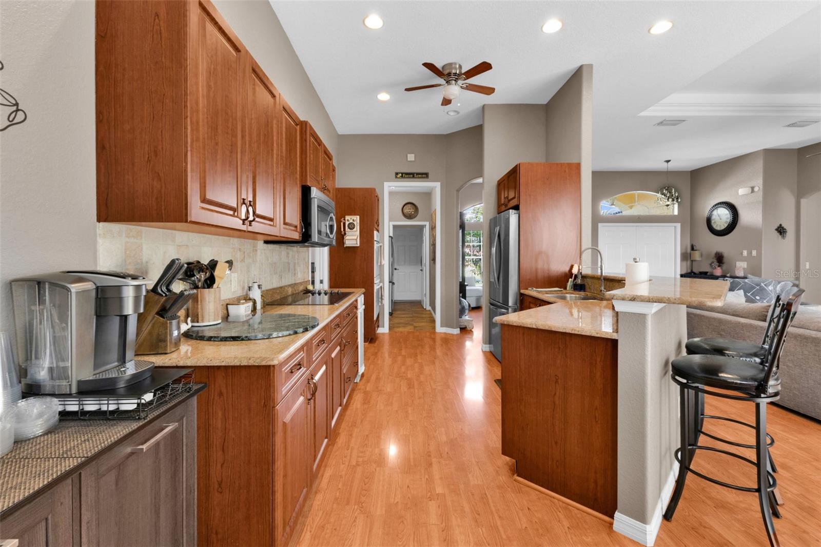 REDUCED!! Season is coming and this won't last! Welcome home to this beautifully designed, one-story residence nestled in the desirable, gate-protected Peppertree Estates of Port Charlotte. Built in 2004, this home blends elegant finishes and open-concept living with spaces designed for entertaining, relaxing, and family life. A spacious layout (2, 390 sq ft) with four bedrooms and three full bathrooms. This home offers flexibility: private guest suites, home office, or extra living areas as needed. The master suite opens directly to the lanai via sliding doors, offering a private indoor/outdoor sanctuary.The guest bedrooms are separated from the primary living area by pocket doors, ensuring privacy and flexible use. The gourmet kitchen is equipped with granite countertops, a breakfast bar, nook area and abundant cabinetry. Both refrigerators and the washer & dryer are all new. Oversized sliding glass doors open onto a generous lanai (approximately 41 × 22 ft), creating a seamless transition between the living area and outdoor entertainment area and is ideal for alfresco dinners, morning coffee, or evening gatherings under the stars. Situated on a ~0.29 acre lot, providing ample yard space and room for extra landscaping or outdoor additions. The home has been freshly painted, has a NEW ceramic tile ROOF and has been meticulously maintained. There has never been flooding or water damage and no flood insurance necessary! Peppertree Estates is a highly regarded subdivision in Port Charlotte, offering a tranquil, secure setting while still being close to shopping, schools, hospitals and the beaches.