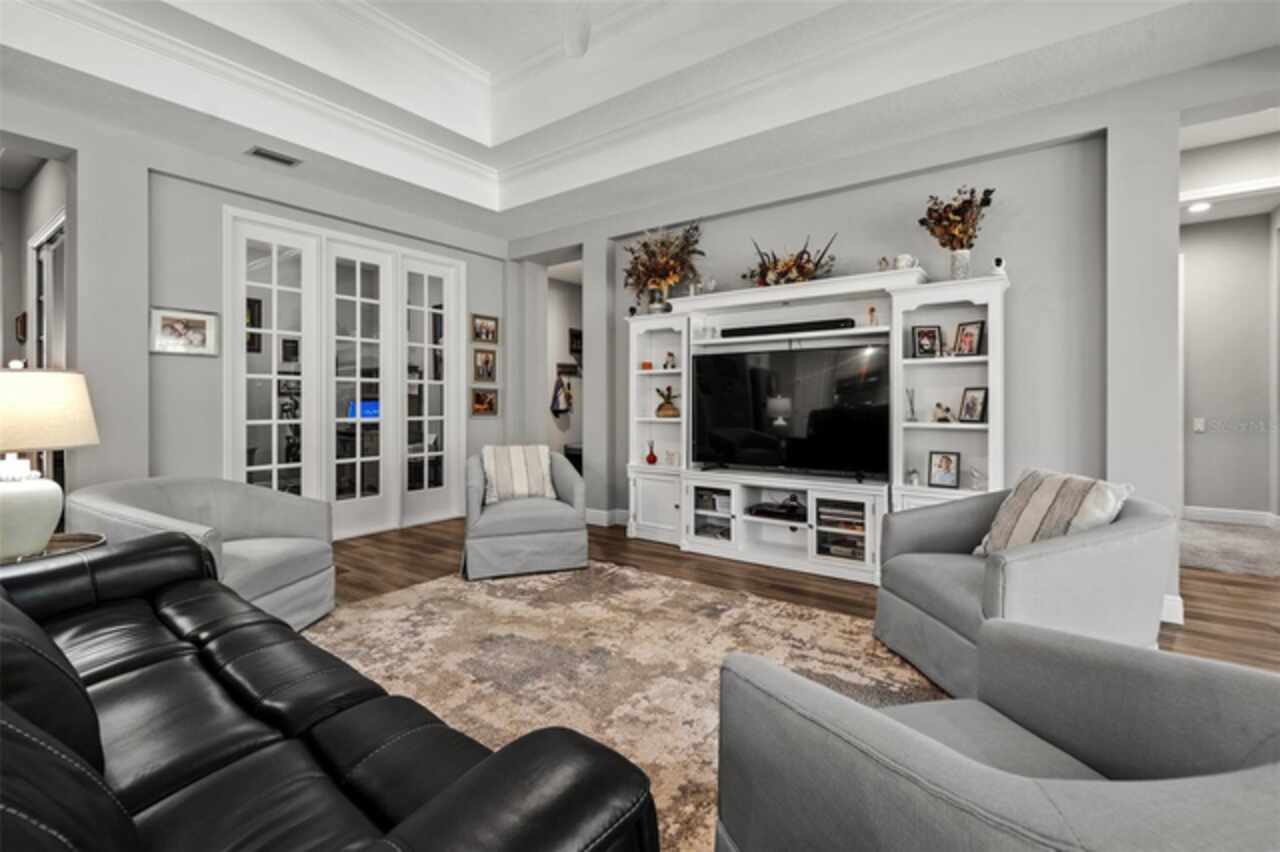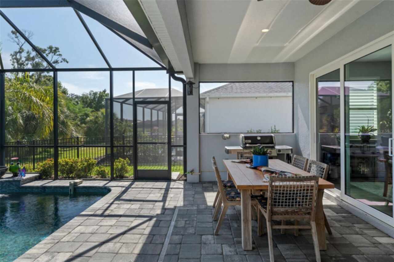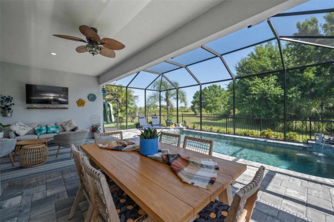 Luxury, style, and nature—welcome to 11713 Goldenrod Ave, where life feels like a permanent vacation. Built in 2020 by renowned builder Sam Rodgers, this sought-after Biscayne model blends craftsmanship with modern comfort inside the gates of Greyhawk Landing, one of our area's amenity filled communities. Step inside to 2, 268 square feet of thoughtfully designed space featuring 3 bedrooms, 2.5 bathrooms, a dedicated office, and a 3-car garage with top grade-new epoxy floors. Whether you're working from home, hosting friends, or sneaking in a poolside cocktail, this home’s layout adapts to your lifestyle with ease. At the heart of the home is a bright, open-concept kitchen, complete with white shaker cabinetry, an oversized island, and luxury finishes throughout. Bonus: This home also features HURRICANE IMPACT WINDOWS, meaning less worry when storms roll in and more time to relax. The primary suite? A total showstopper. The isolated suite is spacious and complete with dual walk-in closets, separate vanities to keep the peace and 2-access points. Out back, the private pool and screened-in lanai offer the ultimate Florida backdrop for everything from morning coffee to cannonballs. And when you're ready to explore, Greyhawk Landing delivers with two resort-style pools, a fitness center, tennis, pickleball and basketball courts, playgrounds, walking trails, and lush preserve views around every corner. And let’s not forget location—zoned for top-rated schools, just minutes to I-75, and a stone’s throw from the Marketplace at Heritage Harbour for shopping, dining, and everyday essentials. If you’ve been dreaming of luxury living without the wait, Goldenrod Ave is your golden ticket. Book a showing today and come see this amazing home!
