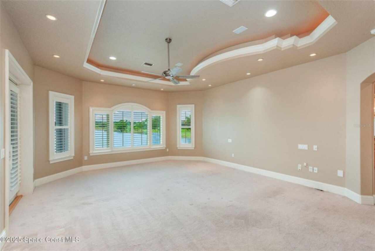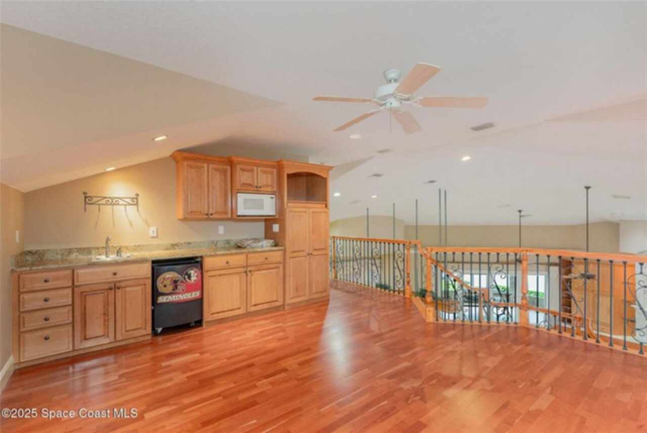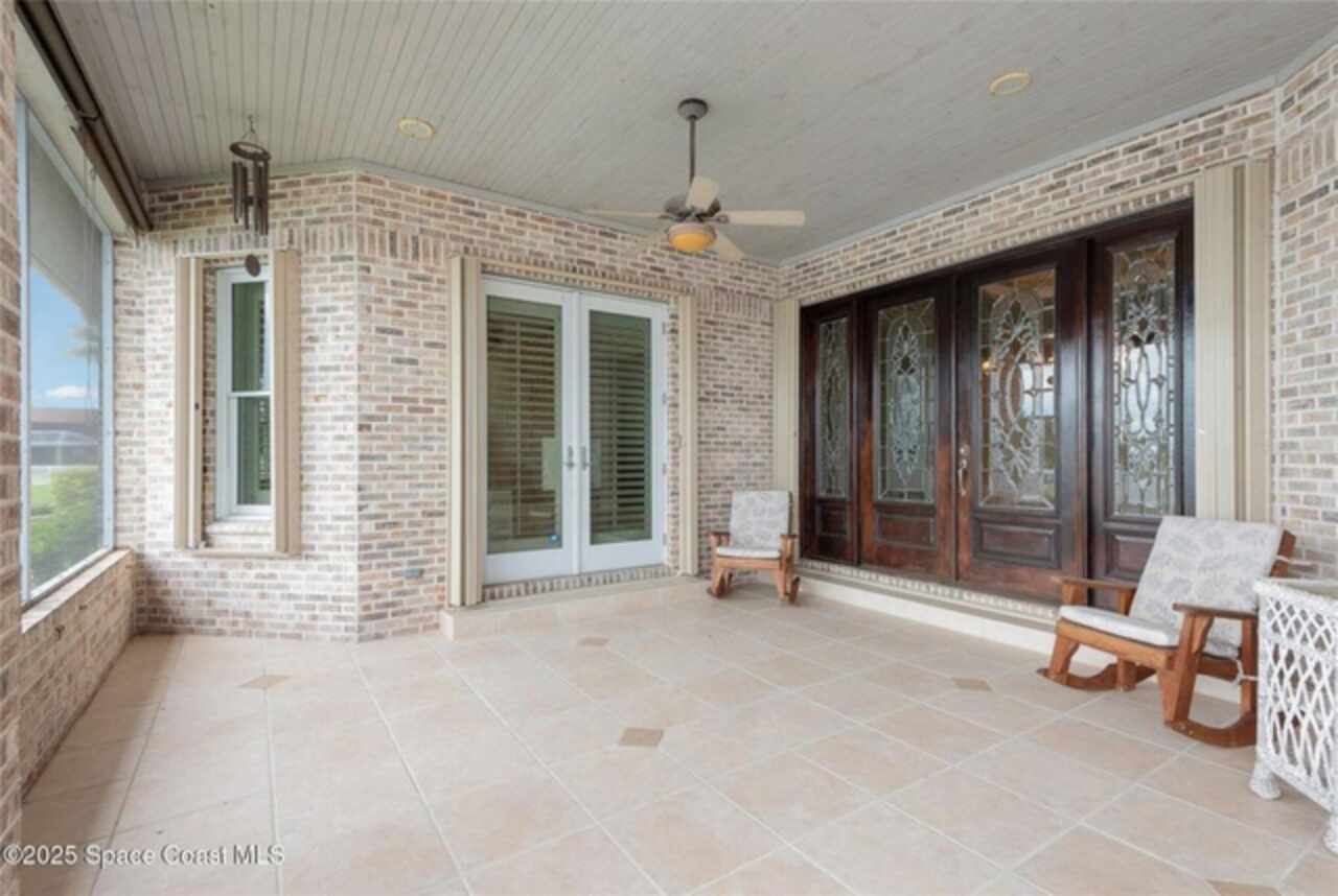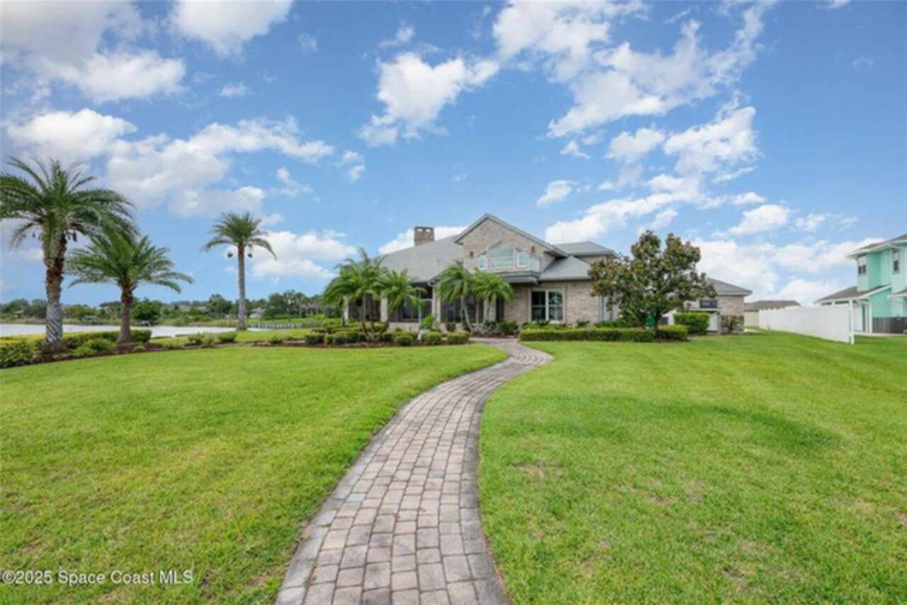 Experience the perfect blend of luxury & functionality in this beautifully crafted custom built home offering direct lake access & breathtaking views. Designed with comfort, versatility & family in mind, this 4 bedroom, 4.5 bath home on .82 acres includes so many features with multi-generational living option making it ideal for extended family or guest accommodations. Step inside to discover a bright open floor plan accented with pillars & high end finishes showing extensive cabinetry & a striking coral fireplace with built in entertainment center that adds warmth & character to the main living space. Enjoy indoor-outdoor living with a large screened porch over looking the beautiful 42 acre lake, perfect for entertaining year round. List of special features are a whole house gas generator, central vacuum system, plantation shutters on all windows, hurricane shutters, safe room with 9'' concrete walls, trey ceilings, black out sliding blinds, security system with 10 cameras, Gun safe, kitchenette upstairs & balcony overlooking the lake. Main floor has 2 primary bedrooms with private bath plus a 3rd bedroom. Primary bedroom has gorgeous view of lake, trey ceilings with lighting & french doors leading to screened porch. Beautiful primary bath has jetted tub as focal point with ambient lighting & lots of cabinetry. Large shower has lots of natural light. 2 walk in closets with built in cabinets, shelving & safe room. 2nd primary bedroom has private bath with tub/shower, walk in closets & exterior door. Spacious laundry room has washer dryer hook up with cabinets for storage & utility sink. Dining room boasts beautiful wood doors with hand crafted glass. Fully equipped kitchen featuring abundant cabinetry with large breakfast bar has suspended lighting, built in oven & microwave, lazy susans, pull out spice rack, pot & pan drawers, electric cook top, vegetable sink & large walk in butler's pantry with storage under stairs, is perfect for everyday living and entertaining. Stools convey with sale as well as the large kitchen table with boat latch storage in the bench seating. Upstairs has spacious loft with wood floors, kitchenette with cabinets, sink, refrigerator & granite counters. 4th bedroom has access to balcony with view of lake & closet with built in shelving. Attic located over garages is insulated & has flooring with lots off storage space. Back downstairs this home boasts a 3 car garage with storage cabinets. Exterior has storage shed with pull up door. Irrigation on timer using reclaimed water. Private covered boat dock with boat pulley & sink give seamless access for boating, fishing, or simply enjoying the lake lifestyle. Also has exterior shower & pretty walk ways through back yard over looking picturesque views of the lake. Don't miss out on this rare opportunity to own a thoughtfully designed home in an unbeatable waterfront location. Located just north of Viera. Conveniently located near a variety of shopping centers, medical facility, restaurants and I95 exchange.