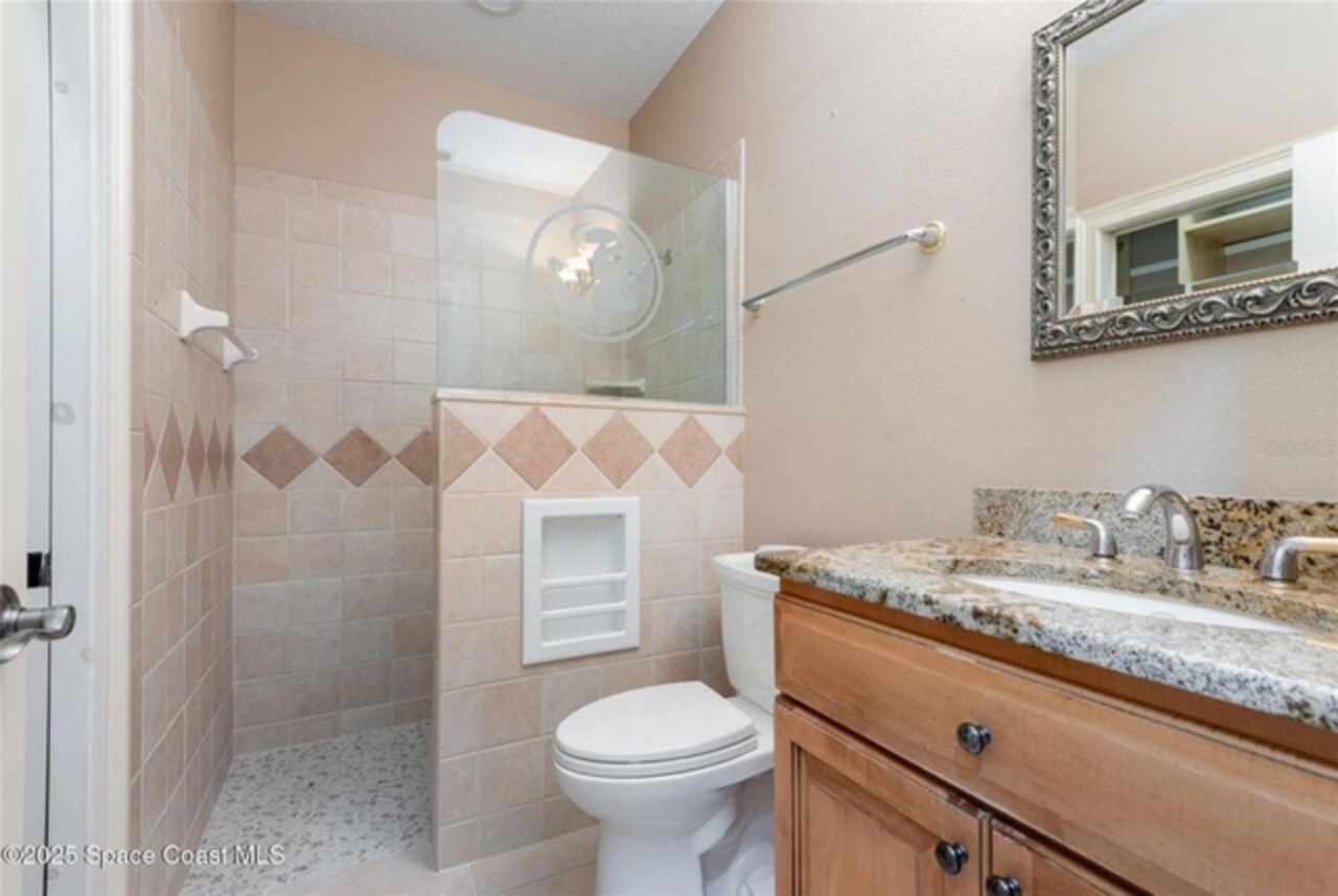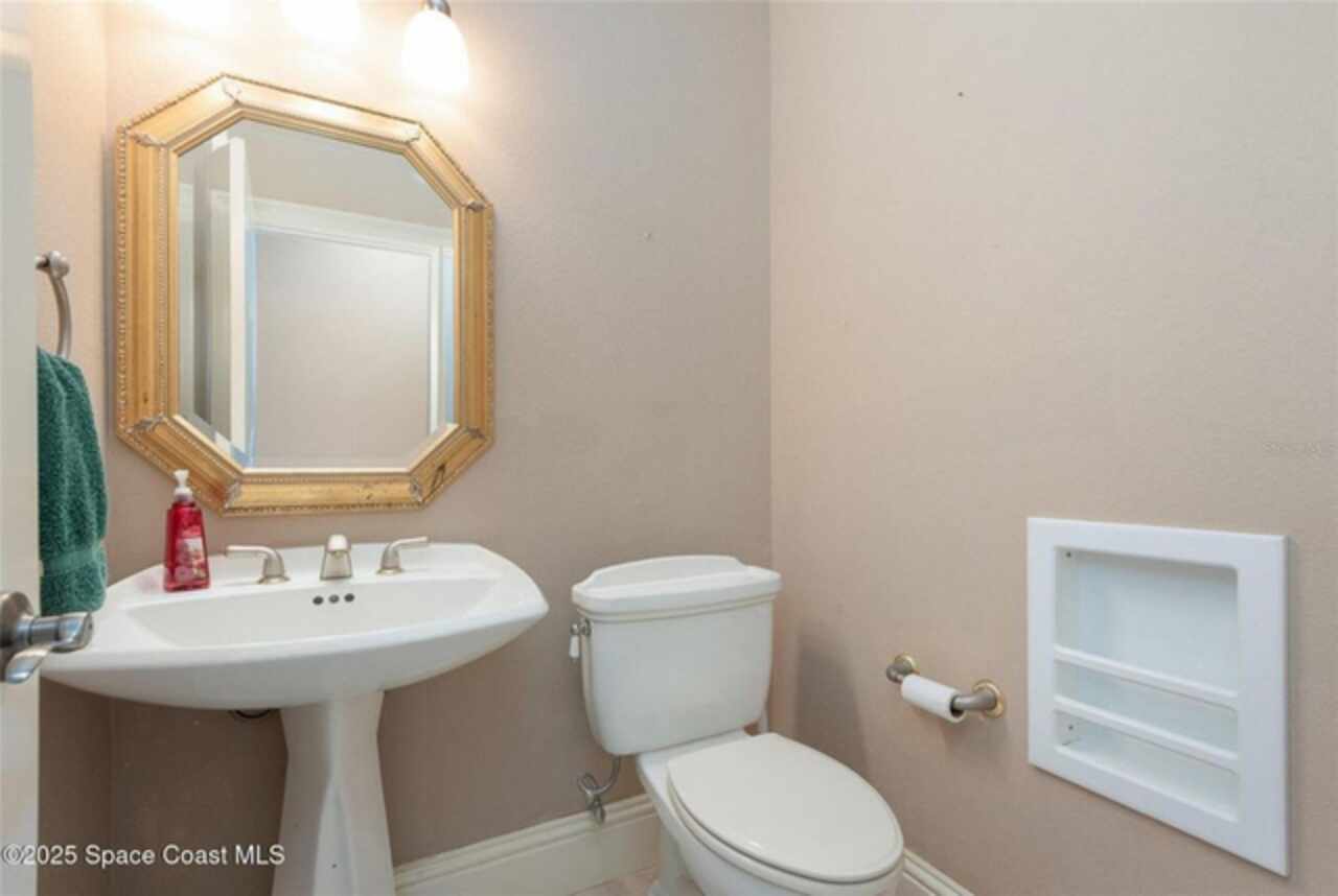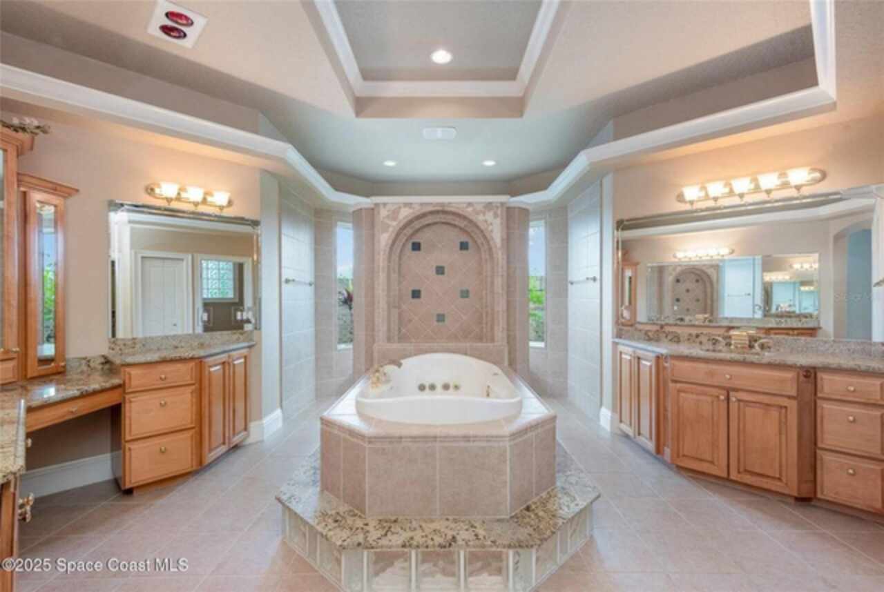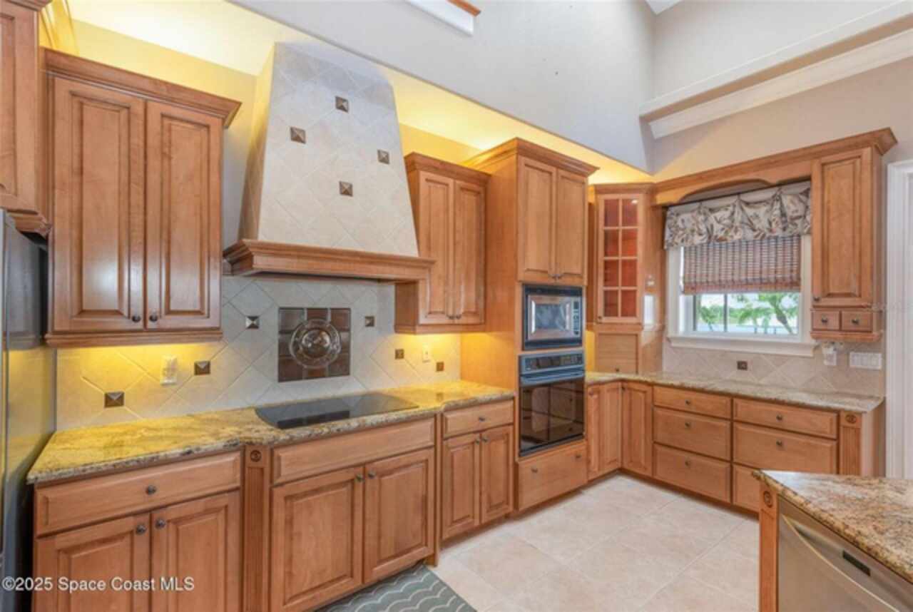 Experience the perfect blend of luxury & functionality in this beautifully crafted custom built home offering direct lake access & breathtaking views. Designed with comfort, versatility & family in mind, this 4 bedroom, 4.5 bath home on .82 acres includes so many features with multi-generational living option making it ideal for extended family or guest accommodations. Step inside to discover a bright open floor plan accented with pillars & high end finishes showing extensive cabinetry & a striking coral fireplace with built in entertainment center that adds warmth & character to the main living space. Enjoy indoor-outdoor living with a large screened porch over looking the beautiful 42 acre lake, perfect for entertaining year round. List of special features are a whole house gas generator, central vacuum system, plantation shutters on all windows, hurricane shutters, safe room with 9'' concrete walls, trey ceilings, black out sliding blinds, security system with 10 cameras, Gun safe, kitchenette upstairs & balcony overlooking the lake. Main floor has 2 primary bedrooms with private bath plus a 3rd bedroom. Primary bedroom has gorgeous view of lake, trey ceilings with lighting & french doors leading to screened porch. Beautiful primary bath has jetted tub as focal point with ambient lighting & lots of cabinetry. Large shower has lots of natural light. 2 walk in closets with built in cabinets, shelving & safe room. 2nd primary bedroom has private bath with tub/shower, walk in closets & exterior door. Spacious laundry room has washer dryer hook up with cabinets for storage & utility sink. Dining room boasts beautiful wood doors with hand crafted glass. Fully equipped kitchen featuring abundant cabinetry with large breakfast bar has suspended lighting, built in oven & microwave, lazy susans, pull out spice rack, pot & pan drawers, electric cook top, vegetable sink & large walk in butler's pantry with storage under stairs, is perfect for everyday living and entertaining. Stools convey with sale as well as the large kitchen table with boat latch storage in the bench seating. Upstairs has spacious loft with wood floors, kitchenette with cabinets, sink, refrigerator & granite counters. 4th bedroom has access to balcony with view of lake & closet with built in shelving. Attic located over garages is insulated & has flooring with lots off storage space. Back downstairs this home boasts a 3 car garage with storage cabinets. Exterior has storage shed with pull up door. Irrigation on timer using reclaimed water. Private covered boat dock with boat pulley & sink give seamless access for boating, fishing, or simply enjoying the lake lifestyle. Also has exterior shower & pretty walk ways through back yard over looking picturesque views of the lake. Don't miss out on this rare opportunity to own a thoughtfully designed home in an unbeatable waterfront location. Located just north of Viera. Conveniently located near a variety of shopping centers, medical facility, restaurants and I95 exchange.