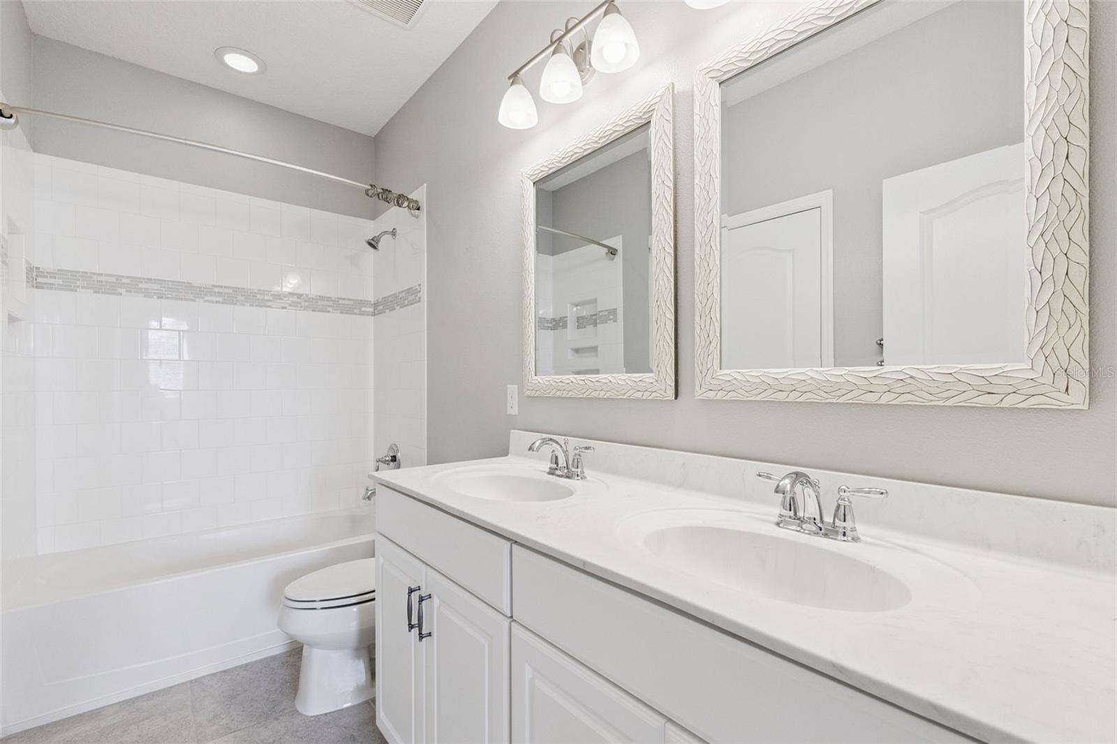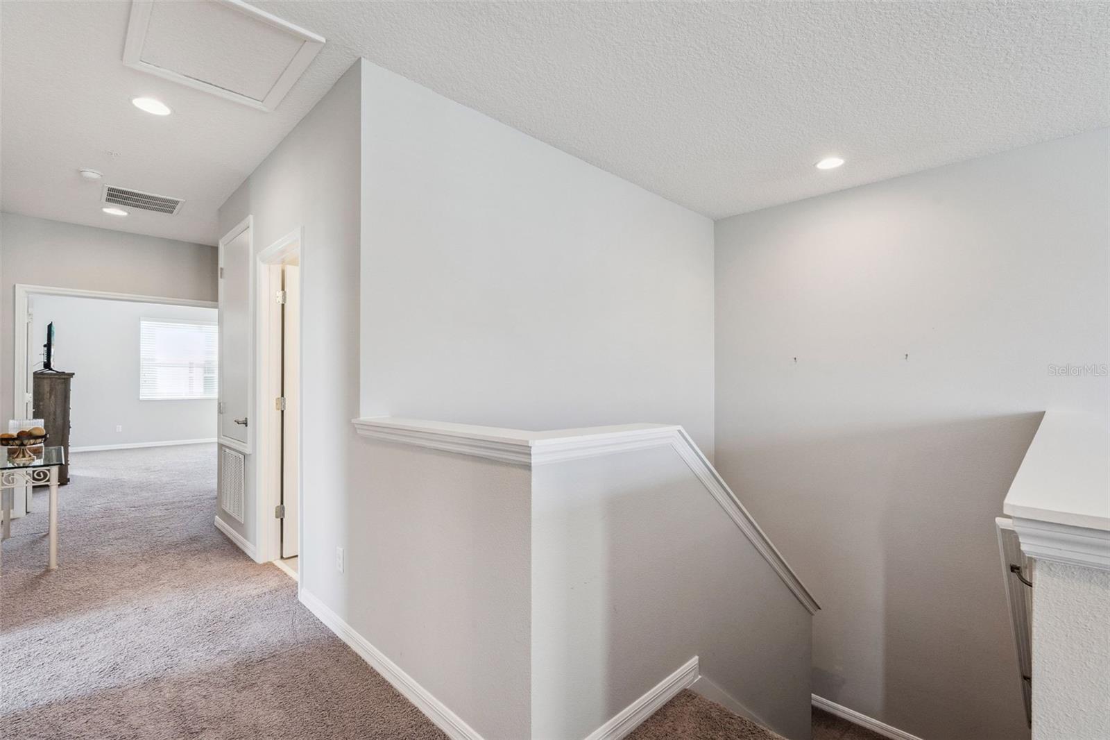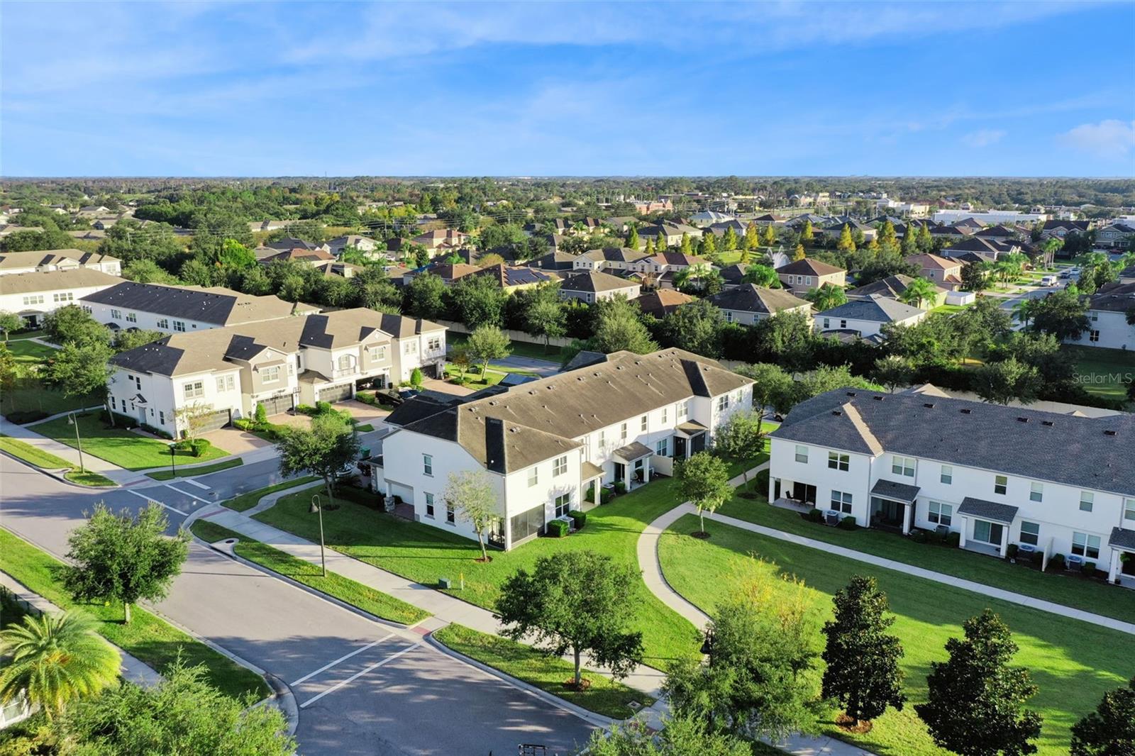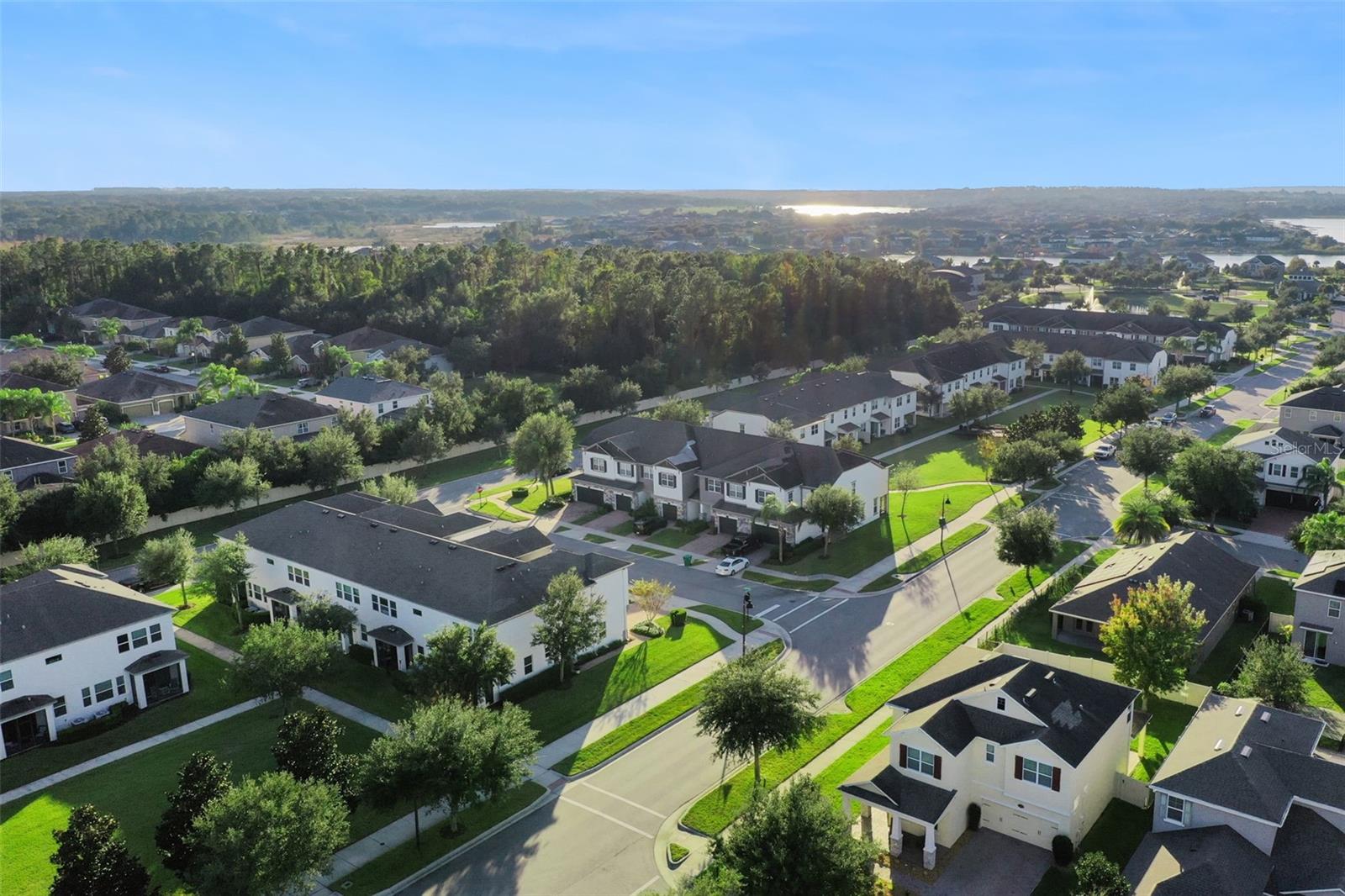 Under contract-accepting backup offers. Welcome to this stunning end-unit townhome located in the highly sought after gated community of Hickory Hammock in Winter Garden. This beautifully maintained 3-bedroom, 2.5 bath residence with a 2-car garage offers a spacious and functional layout with designer finishes throughout. Step inside to find wood plank tile flooring that flows through the entire first floor. The entry level features a private office, a half bath with pedestal sink, and a bright, open great room with a ceiling fan and sliding glass doors leading to the patio. The kitchen is a chef’s dream, complete with raised panel white shaker cabinets accented by brushed nickel hardware, GE stainless steel appliances, granite countertops, tile backsplash, a walk-in pantry, and an inviting eat-in dining area. Upstairs, a spacious loft offers flexible living space, perfect for a media area or playroom. Two guest bedrooms, each with ceiling fans and ample closet space, share a full bathroom featuring tile floors, double sinks with quartz counters, and a tiled shower/tub combination. The primary suite is a true retreat, highlighted by double entry doors, a ceiling fan, and a spa like ensuite bath featuring tile floors, dual quartz vanities, a glass-enclosed tile shower, garden tub, and a large walk-in closet. The laundry room, complete with GE washer and dryer, adds convenience. In addition to the 2-car garage, the townhome enjoys an ideal location bordered by extra parallel parking and a spacious green area with mature trees, perfect for playtime or walking your dog. Plus a NEW ROOF in 2025! Residents of Hickory Hammock enjoy resort-style amenities including a zero entry community pool, clubhouse, fitness center, tennis and volleyball courts, fishing pier, playgrounds, parks, walking trails, and a dog park. With top rated schools, close proximity to downtown Winter Garden, Winter Garden Village, and just 20 minutes to Disney and 30 minutes to the airport, this home combines luxury, comfort, and convenience offering the best of Central Florida living. Schedule your private showing today and experience all that this beautiful home and community have to offer!