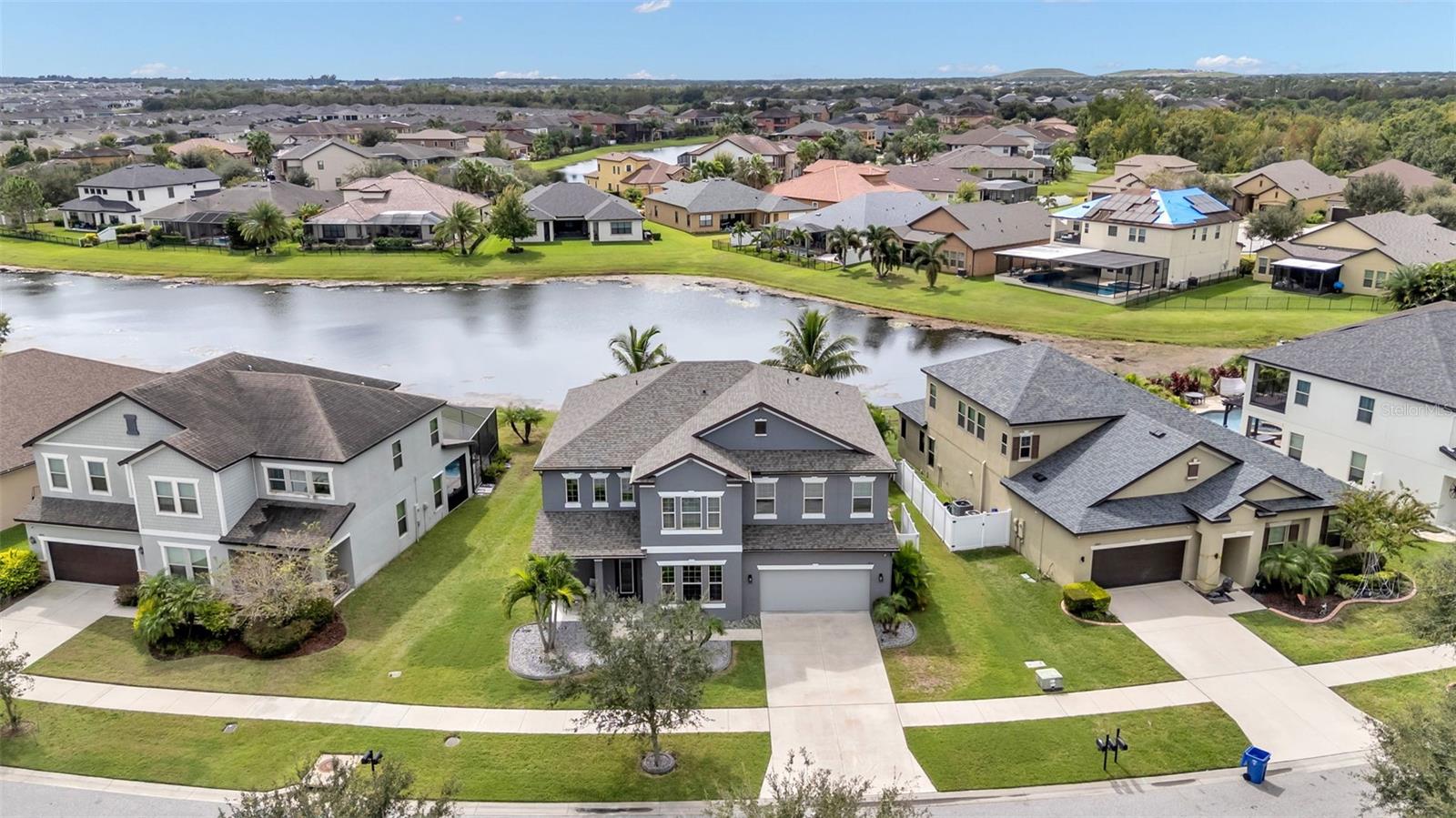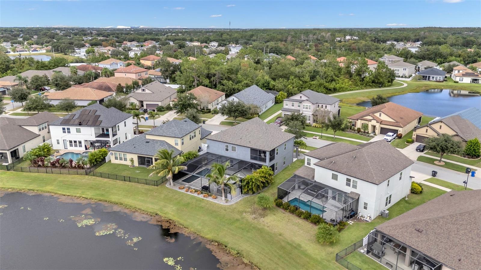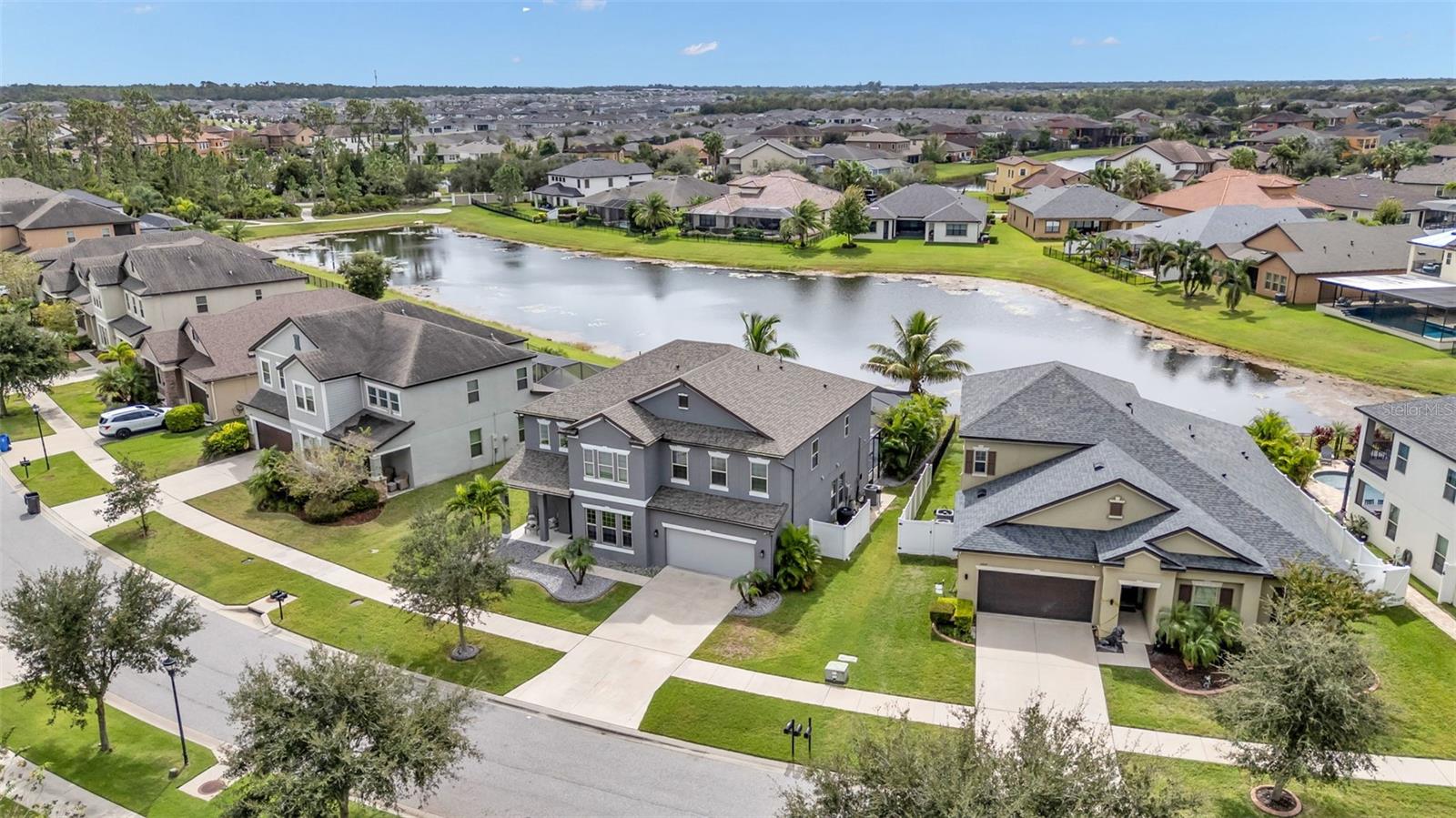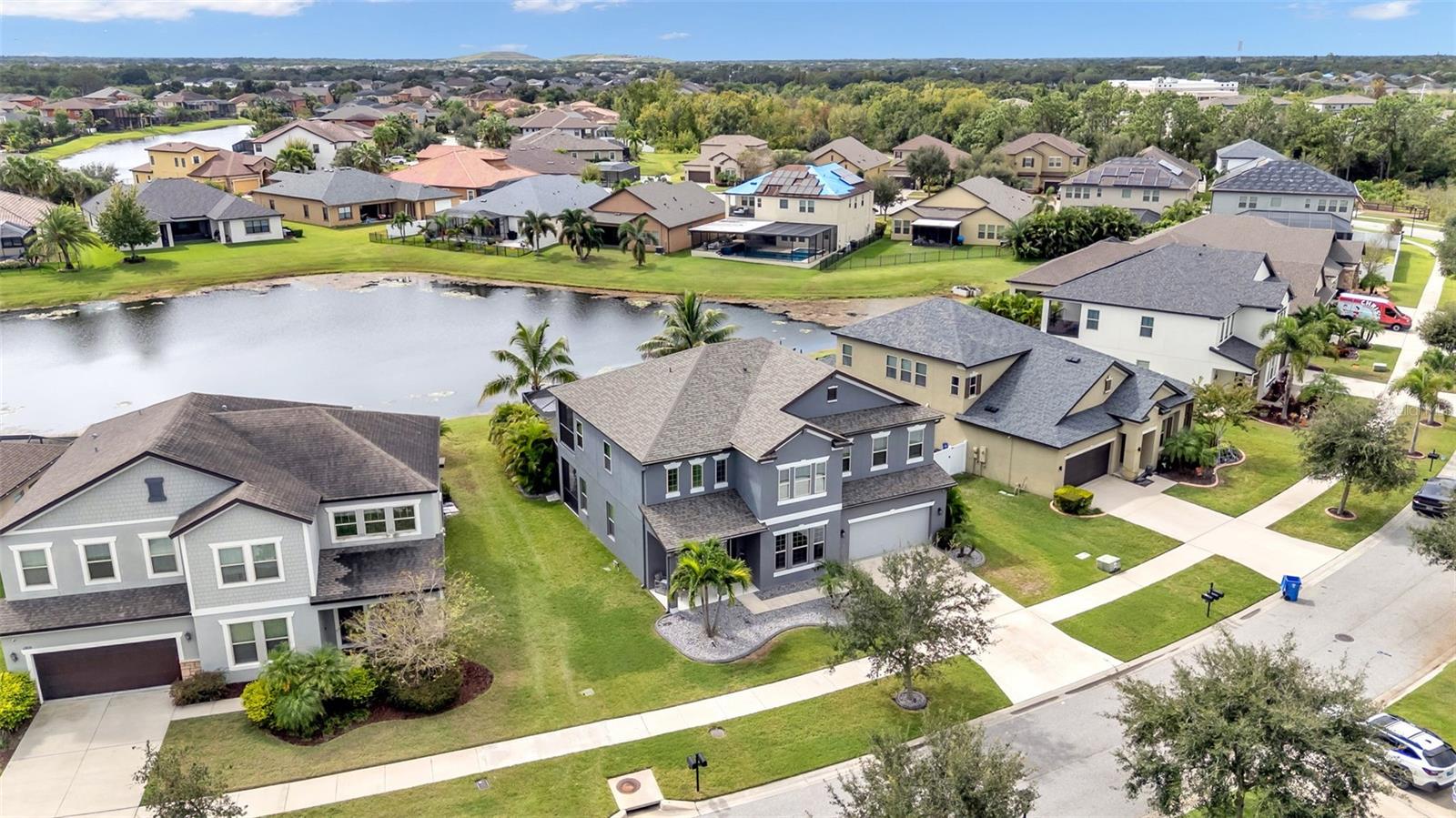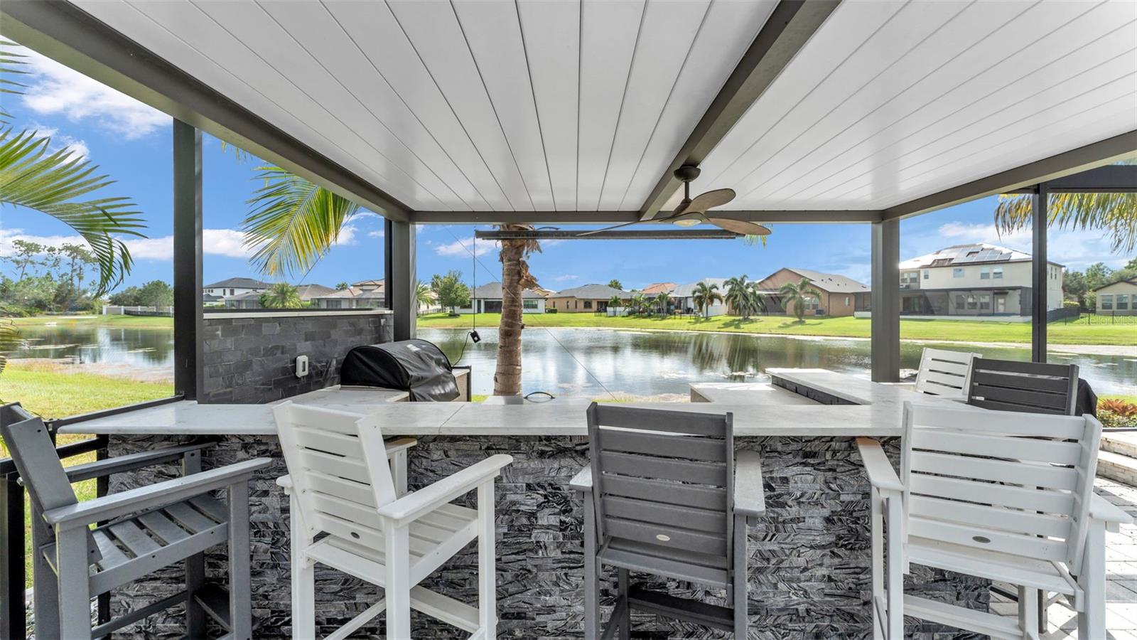 Welcome to this extraordinary residence in the highly sought-after, gated community of WATERLEAF, where luxury living meets resort-style comfort. From the moment you enter the grand two-story foyer with a drop-down chandelier, custom wainscoting, and an elegant wooden staircase, you’ll feel the sophistication that flows throughout the home. The open-concept design seamlessly connects the expansive great room, formal dining area, and gourmet kitchen, creating an ideal setting for both entertaining and everyday living. Designer accents include a custom mirrored feature wall in the dining room, built-in cabinetry and accent wall in the great room, a dry bar with wine refrigerator, upgraded lighting, and custom window treatments in every room, adding a refined, model-quality finish. French doors lead you to a breathtaking outdoor oasis unlike anything else in the community. The fully screened lanai showcases an oversized saltwater sport pool with shallow ends and a six-foot center, complete with waterfall, splash pad, fountain, and evening Lumineers for dramatic ambiance. A 14-person spa with dedicated heater flows into the pool, while a full outdoor kitchen—featuring a Blaze grill, refrigerator, ice maker, beverage cooler, and built-in storage—sets the stage for unforgettable gatherings. All of this is sheltered beneath an Azenco electric pergola with automated louvers, rain and wind sensors, smart-controlled lighting, ceiling fans, and multiple access points overlooking a tranquil pond. This outdoor space is larger than any other lot approved by the HOA, offering extended dimensions for unmatched entertaining potential. Inside, the luxury continues with a spacious primary suite that offers a private balcony with serene water views, a spa-like bathroom, and a generous walk-in closet. The home features five bedrooms, four full bathrooms, and a massive loft, offering flexible space Thoughtfully upgraded with a brand-new roof installed in April 2025 with a transferable warranty, 2022 A/C, spray foam insulation, insulated garage doors, two high-efficiency water heaters, Low-E3 windows, whole-home smart security and lighting, indoor-outdoor speakers, in-wall pest control, and garage ceiling storage racks, this home delivers both luxury and efficiency. Residents of Waterleaf enjoy ultra-fast WiFi and cable included, along with resort-style amenities such as a community pool, clubhouse, basketball courts, playgrounds, dog parks, and scenic walking trails. With close proximity to top-rated schools, dining, shopping, and easy access to I-75, this home offers the ultimate blend of elegance, convenience, and modern living. More than move-in ready, this property is truly unforgettable—an exceptional opportunity to own one of Waterleaf’s finest homes.