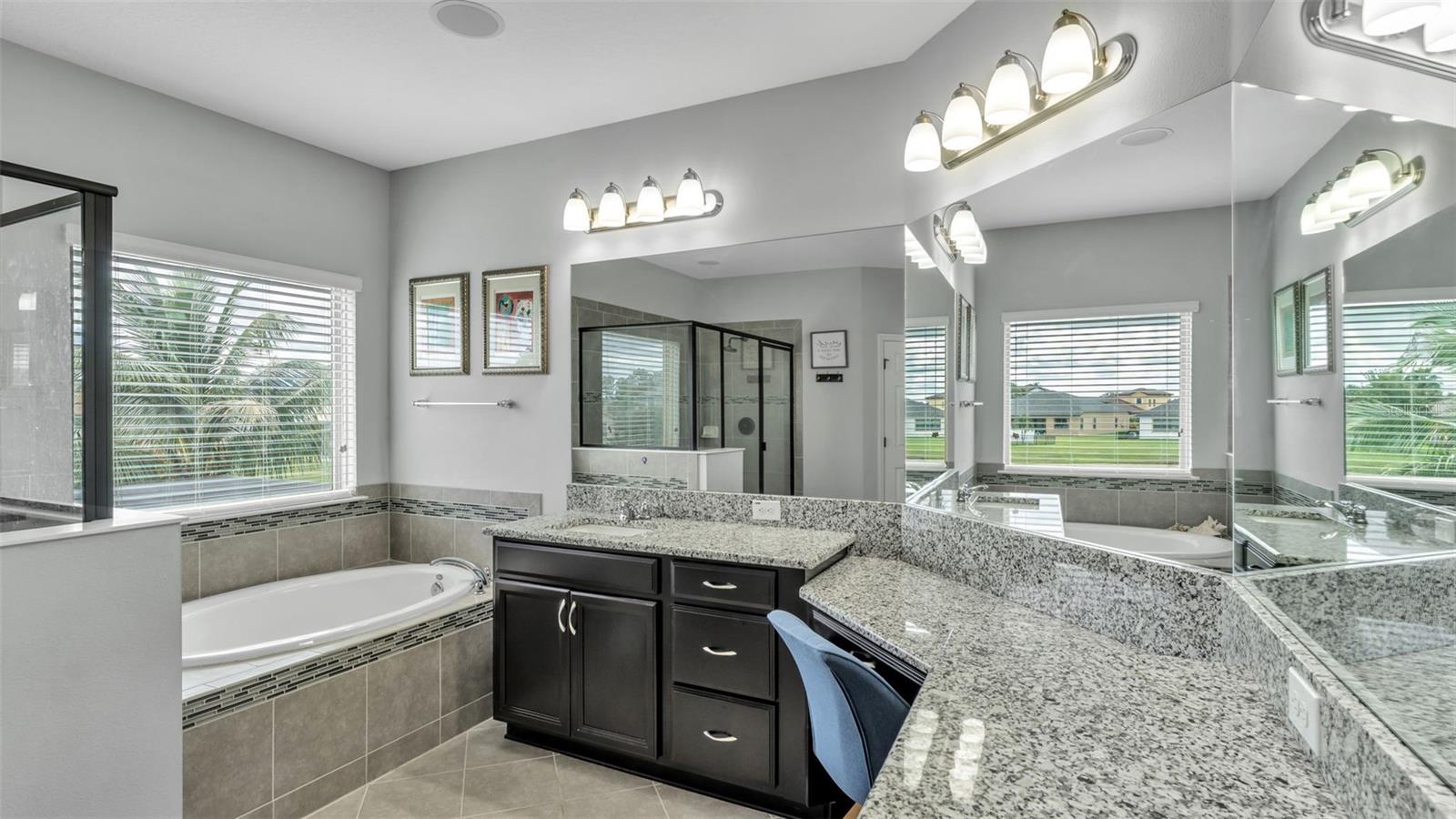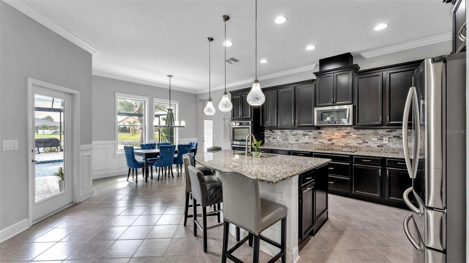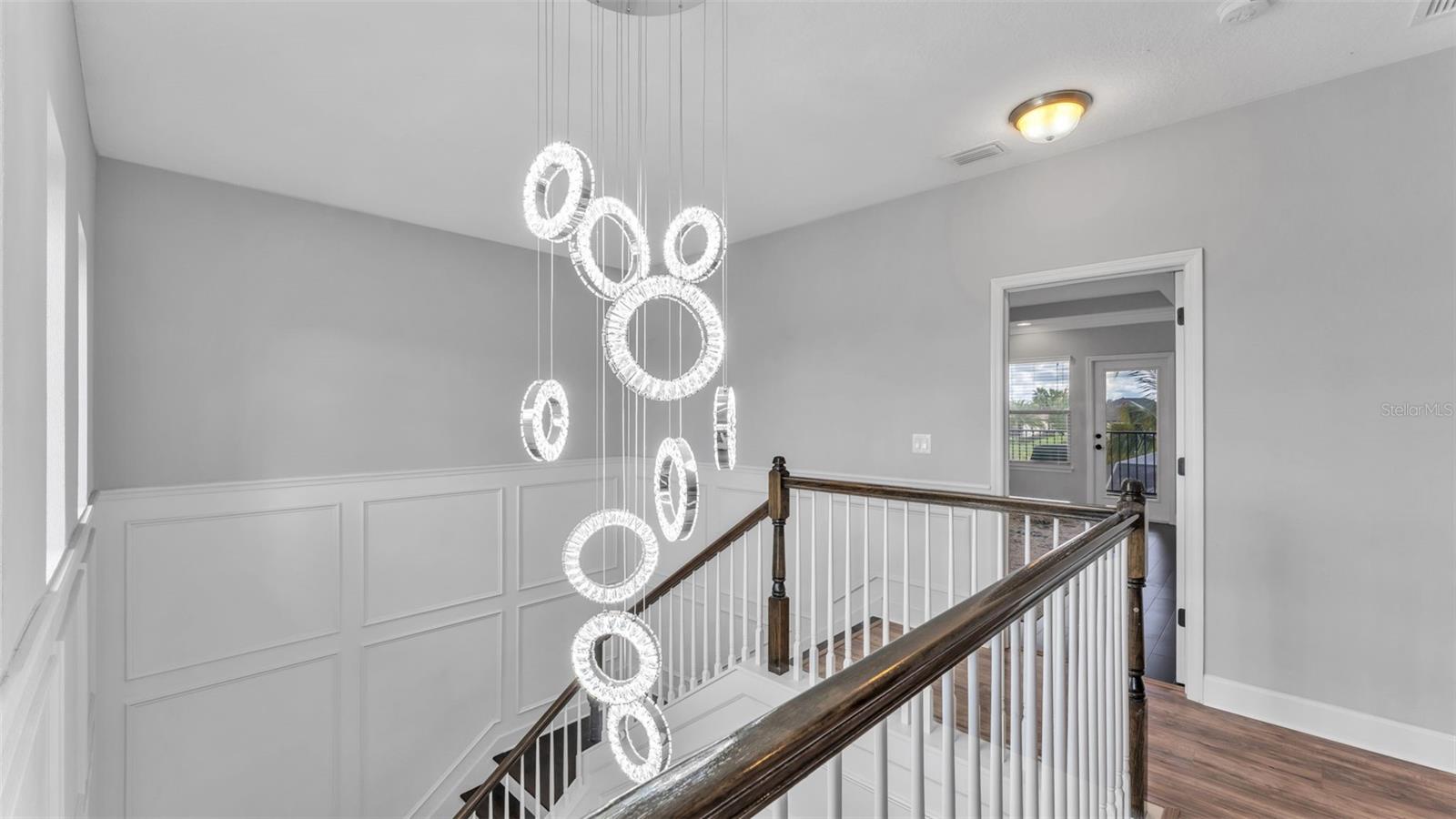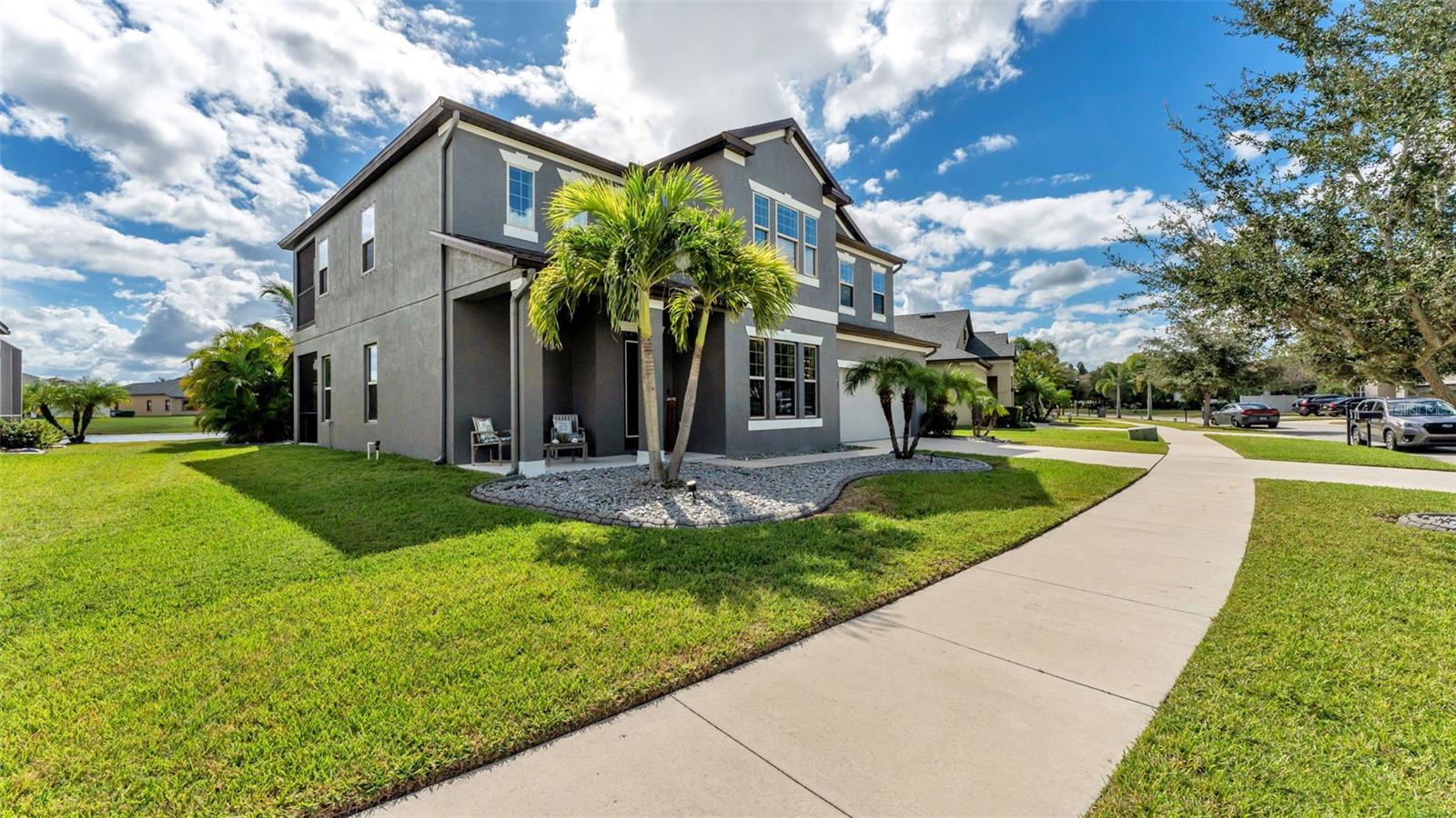 Welcome to this extraordinary residence in the highly sought-after, gated community of WATERLEAF, where luxury living meets resort-style comfort. From the moment you enter the grand two-story foyer with a drop-down chandelier, custom wainscoting, and an elegant wooden staircase, you’ll feel the sophistication that flows throughout the home. The open-concept design seamlessly connects the expansive great room, formal dining area, and gourmet kitchen, creating an ideal setting for both entertaining and everyday living. Designer accents include a custom mirrored feature wall in the dining room, built-in cabinetry and accent wall in the great room, a dry bar with wine refrigerator, upgraded lighting, and custom window treatments in every room, adding a refined, model-quality finish. French doors lead you to a breathtaking outdoor oasis unlike anything else in the community. The fully screened lanai showcases an oversized saltwater sport pool with shallow ends and a six-foot center, complete with waterfall, splash pad, fountain, and evening Lumineers for dramatic ambiance. A 14-person spa with dedicated heater flows into the pool, while a full outdoor kitchen—featuring a Blaze grill, refrigerator, ice maker, beverage cooler, and built-in storage—sets the stage for unforgettable gatherings. All of this is sheltered beneath an Azenco electric pergola with automated louvers, rain and wind sensors, smart-controlled lighting, ceiling fans, and multiple access points overlooking a tranquil pond. This outdoor space is larger than any other lot approved by the HOA, offering extended dimensions for unmatched entertaining potential. Inside, the luxury continues with a spacious primary suite that offers a private balcony with serene water views, a spa-like bathroom, and a generous walk-in closet. The home features five bedrooms, four full bathrooms, and a massive loft, offering flexible space Thoughtfully upgraded with a brand-new roof installed in April 2025 with a transferable warranty, 2022 A/C, spray foam insulation, insulated garage doors, two high-efficiency water heaters, Low-E3 windows, whole-home smart security and lighting, indoor-outdoor speakers, in-wall pest control, and garage ceiling storage racks, this home delivers both luxury and efficiency. Residents of Waterleaf enjoy ultra-fast WiFi and cable included, along with resort-style amenities such as a community pool, clubhouse, basketball courts, playgrounds, dog parks, and scenic walking trails. With close proximity to top-rated schools, dining, shopping, and easy access to I-75, this home offers the ultimate blend of elegance, convenience, and modern living. More than move-in ready, this property is truly unforgettable—an exceptional opportunity to own one of Waterleaf’s finest homes.
