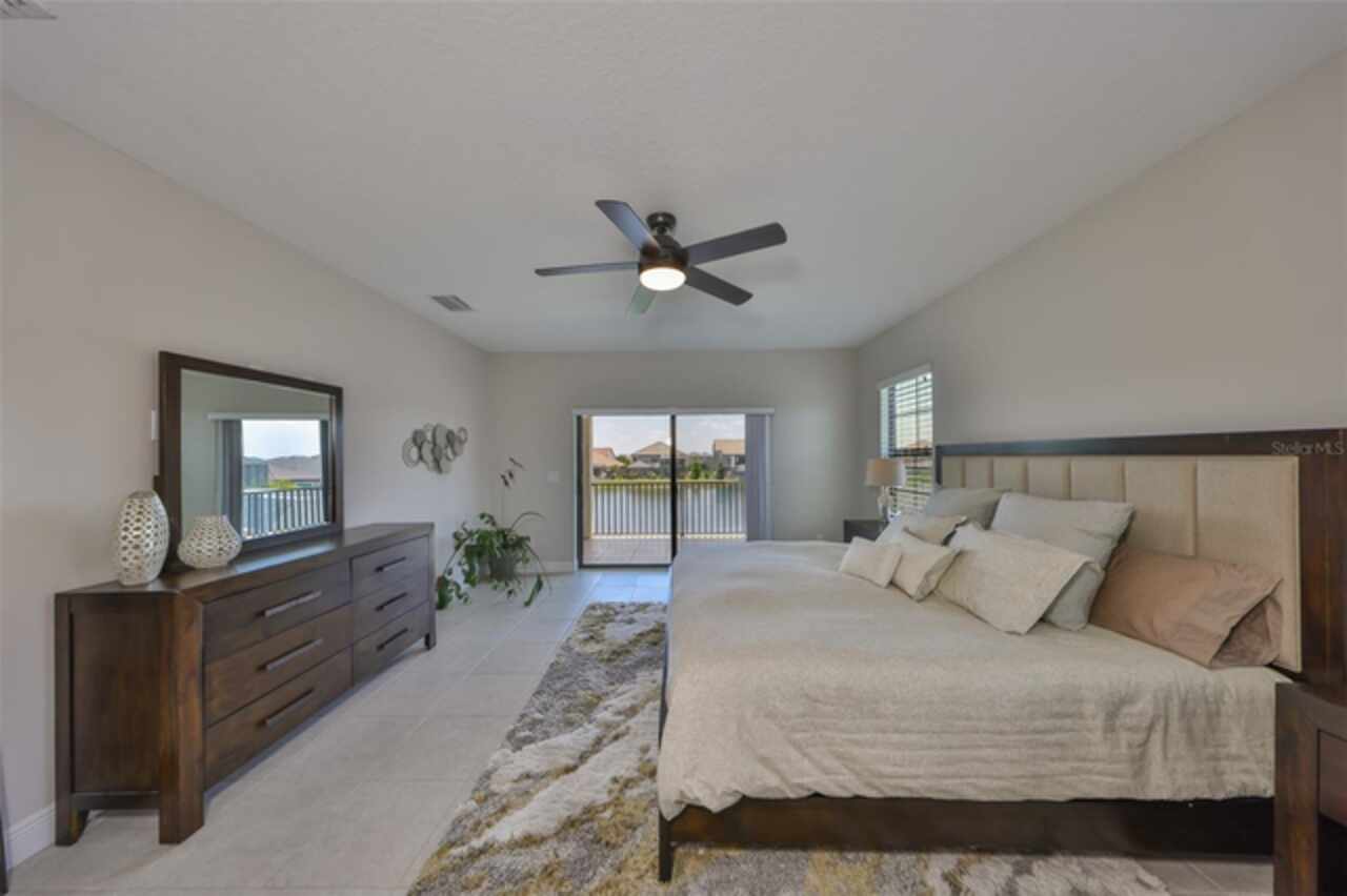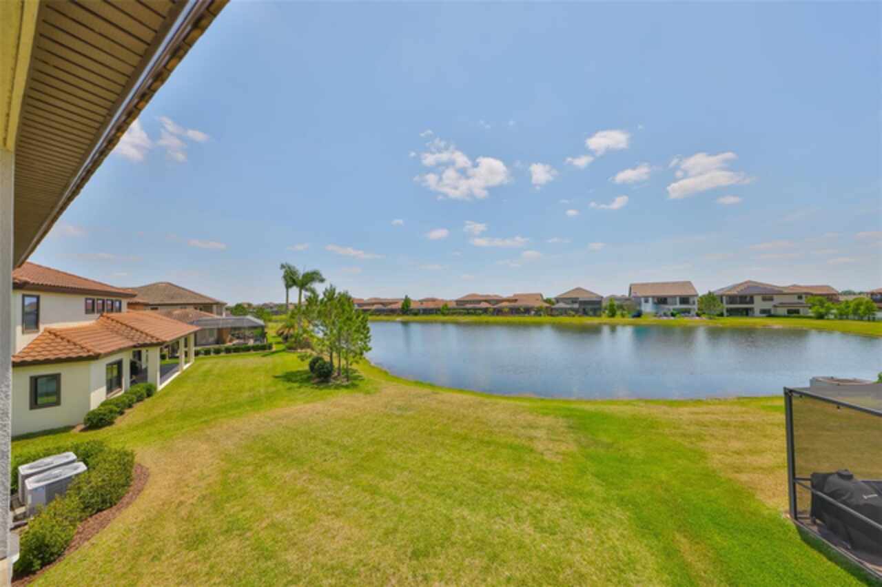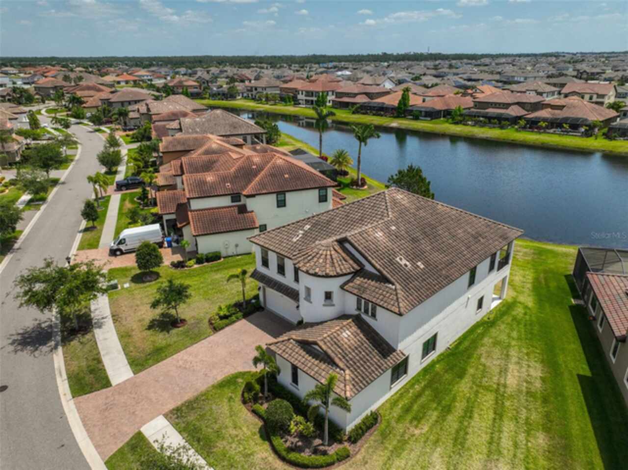Look no further!! Your executive dream home awaits and nestled on a premium lot in the exquisite gated community of Waterleaf. This 4200 sqft plus home features 5 bedrooms, 4.5 bathrooms, 3 car garage. This Madeira model presented by Homes by West Bay offers luxury and elegance with many upgrades to enhance any lifestyle. As you enter the home and step into the soaring foyer you will notice a private home office, formal dining room, and expansive gathering area where comprised of the great room, gourmet kitchen and casual dining. The kitchen is a chef's dream with ample storage, and a center island perfect for meal preparation and hosting. This amazing entertainment hub provides views of the pond and expansive backyard from many vantage points. Tucked in the back on the main floor is a private bedroom to use as a guest room, in-law suite or home gym; the possibilities are endless. The backyard has a beautiful view of the pond and offers a peaceful ambiance, perfect for relaxing and taking in all that nature has to offer; watching the sunrise and sunsets. The second floor features a large bonus room splitting the primary bedroom from the the additional bedrooms which are generously sized and provide plenty of space for family members or guests. Also found upstairs for convenience, is the oversized laundry room and extended balcony to enjoy the beautiful water views. Upon entering the owners' retreat, you will enjoy a luxurious ensuite, with dual split vanities, separate shower and tub as well as expansive walk in closets. Additionally, take in the great views from your private balcony overlooking the pond. This home has it all; luxury, energy efficiency, style and space. The homeowner association fee covers Spectrum UltraFi WiFi (500 mb) as well as extended basic cable, including Showtime. This residence is conveniently located only 30 minutes from Downtown Tampa, MacDill, Sarasota, award winning beaches, top rated schools, shopping, dining, medical facilities, and major highways. The Waterleaf community offers a resort-style pool, a clubhouse, bike and walking trails, dog park and a sports court, enhancing the overall living experience. Don't delay on scheduling your private tour today and say yes to the address!