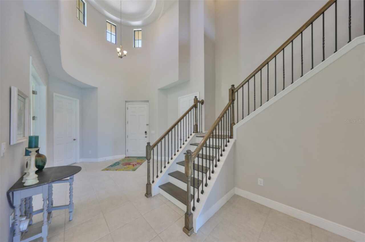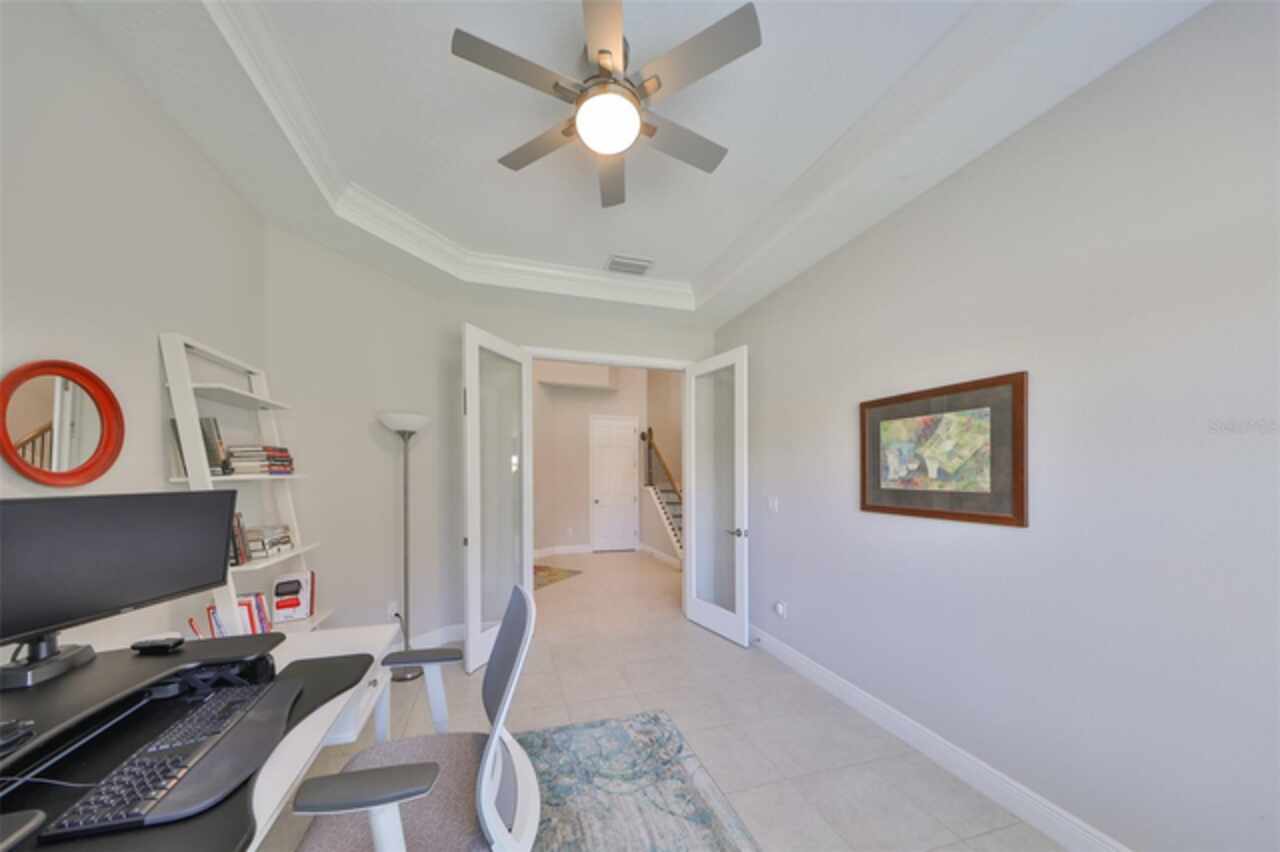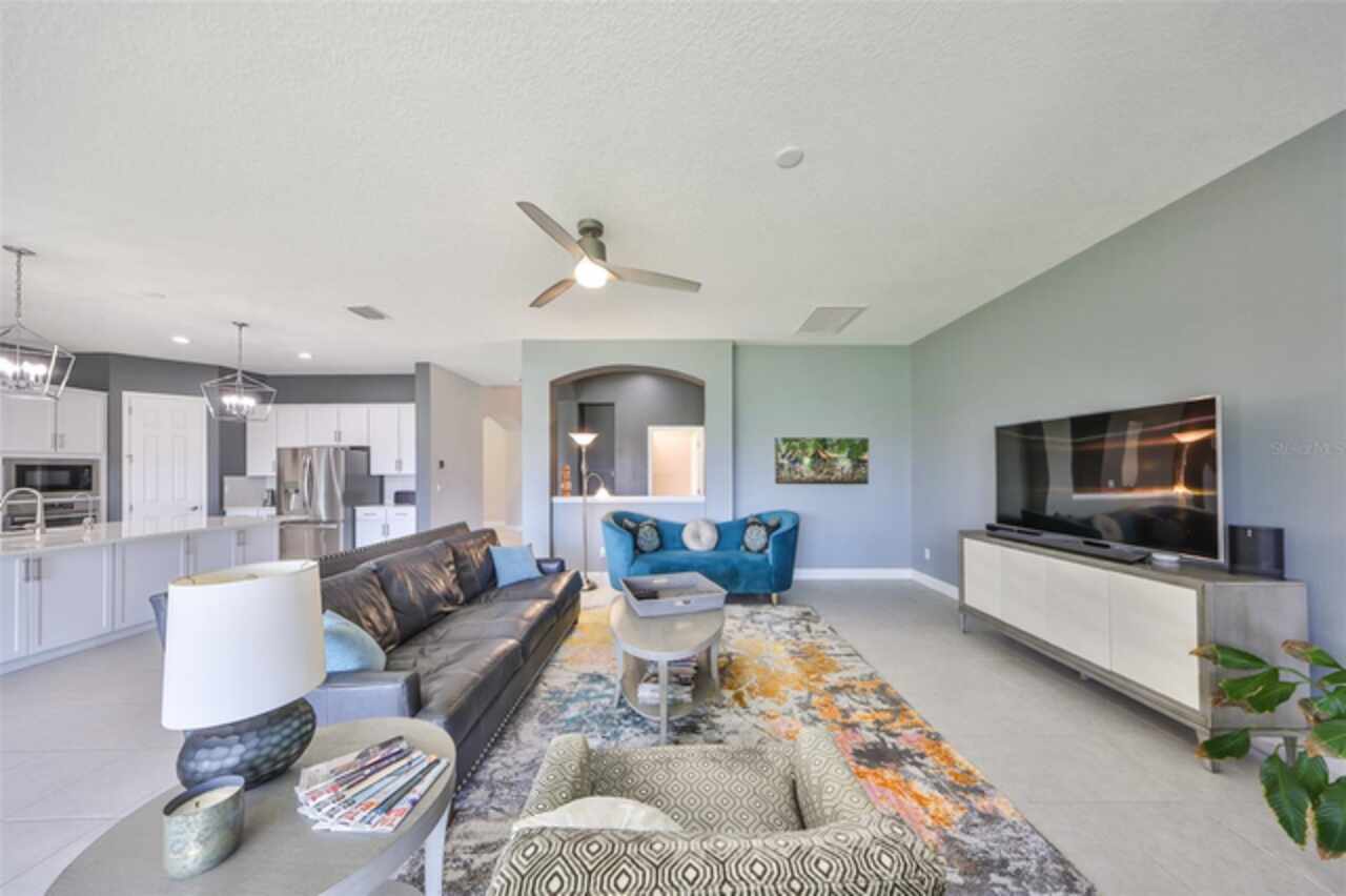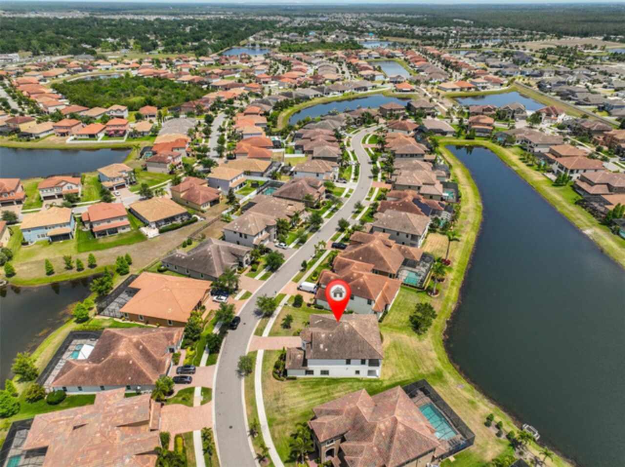 Look no further!! Your executive dream home awaits and nestled on a premium lot in the exquisite gated community of Waterleaf. This 4200 sqft plus home features 5 bedrooms, 4.5 bathrooms, 3 car garage. This Madeira model presented by Homes by West Bay offers luxury and elegance with many upgrades to enhance any lifestyle. As you enter the home and step into the soaring foyer you will notice a private home office, formal dining room, and expansive gathering area where comprised of the great room, gourmet kitchen and casual dining. The kitchen is a chef's dream with ample storage, and a center island perfect for meal preparation and hosting. This amazing entertainment hub provides views of the pond and expansive backyard from many vantage points. Tucked in the back on the main floor is a private bedroom to use as a guest room, in-law suite or home gym; the possibilities are endless. The backyard has a beautiful view of the pond and offers a peaceful ambiance, perfect for relaxing and taking in all that nature has to offer; watching the sunrise and sunsets. The second floor features a large bonus room splitting the primary bedroom from the the additional bedrooms which are generously sized and provide plenty of space for family members or guests. Also found upstairs for convenience, is the oversized laundry room and extended balcony to enjoy the beautiful water views. Upon entering the owners' retreat, you will enjoy a luxurious ensuite, with dual split vanities, separate shower and tub as well as expansive walk in closets. Additionally, take in the great views from your private balcony overlooking the pond. This home has it all; luxury, energy efficiency, style and space. The homeowner association fee covers Spectrum UltraFi WiFi (500 mb) as well as extended basic cable, including Showtime. This residence is conveniently located only 30 minutes from Downtown Tampa, MacDill, Sarasota, award winning beaches, top rated schools, shopping, dining, medical facilities, and major highways. The Waterleaf community offers a resort-style pool, a clubhouse, bike and walking trails, dog park and a sports court, enhancing the overall living experience. Don't delay on scheduling your private tour today and say yes to the address!